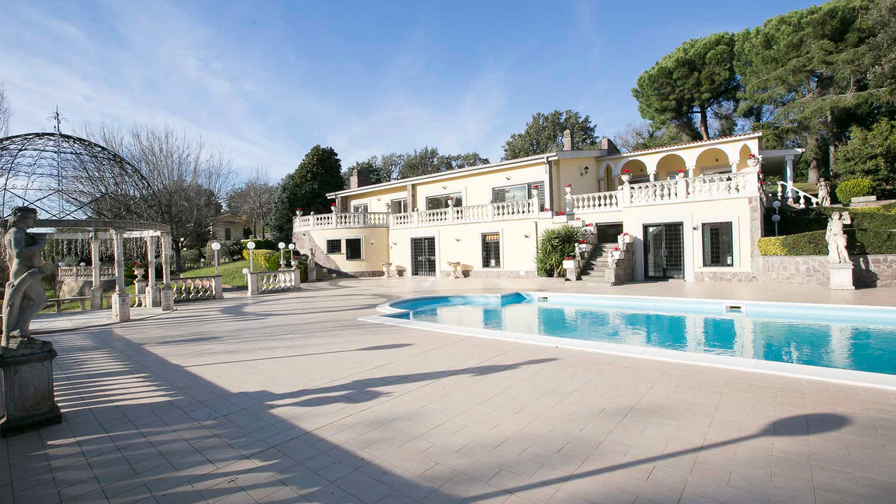 In the sunlit heart of Roma, this exquisite estate offers a blend of elegance and serenity, where every morning begins with the gentle rustle of leaves and the soft glow of the Italian sun filtering through the trees. The property's serene ambiance paints a picture of luxury and peaceful living, inviting you to experience a slice of paradise. Spanning an impressive 549 square meters, this magnificent residence boasts nine spacious rooms and seven luxurious bathrooms. The grand building, adorned with balconies and expansive windows, overlooks a private swimming pool and meticulously landscaped gardens. The lush greenery, dotted with sculptures and a charming gazebo, creates a picturesque outdoor retreat. Located in the Città metropolitana di Roma Capitale, this property epitomizes the tranquil yet sophisticated lifestyle of the Roman countryside. Imagine waking up to the sound of birds singing and spending leisurely afternoons by the pool, surrounded by vibrant flowers and the comforting shade of trees. Evenings are for savoring the beauty of the landscaped grounds from your elegant terrace, where the warm summer breeze carries the sweet scent of blossoms. This is a home where every day feels like a luxurious escape. This villa embodies a unique blend of refined elegance and modern luxury, making it a distinguished sanctuary in the prestigious Roma real estate market. A truly rare find, it offers an unparalleled lifestyle of comfort and distinction.