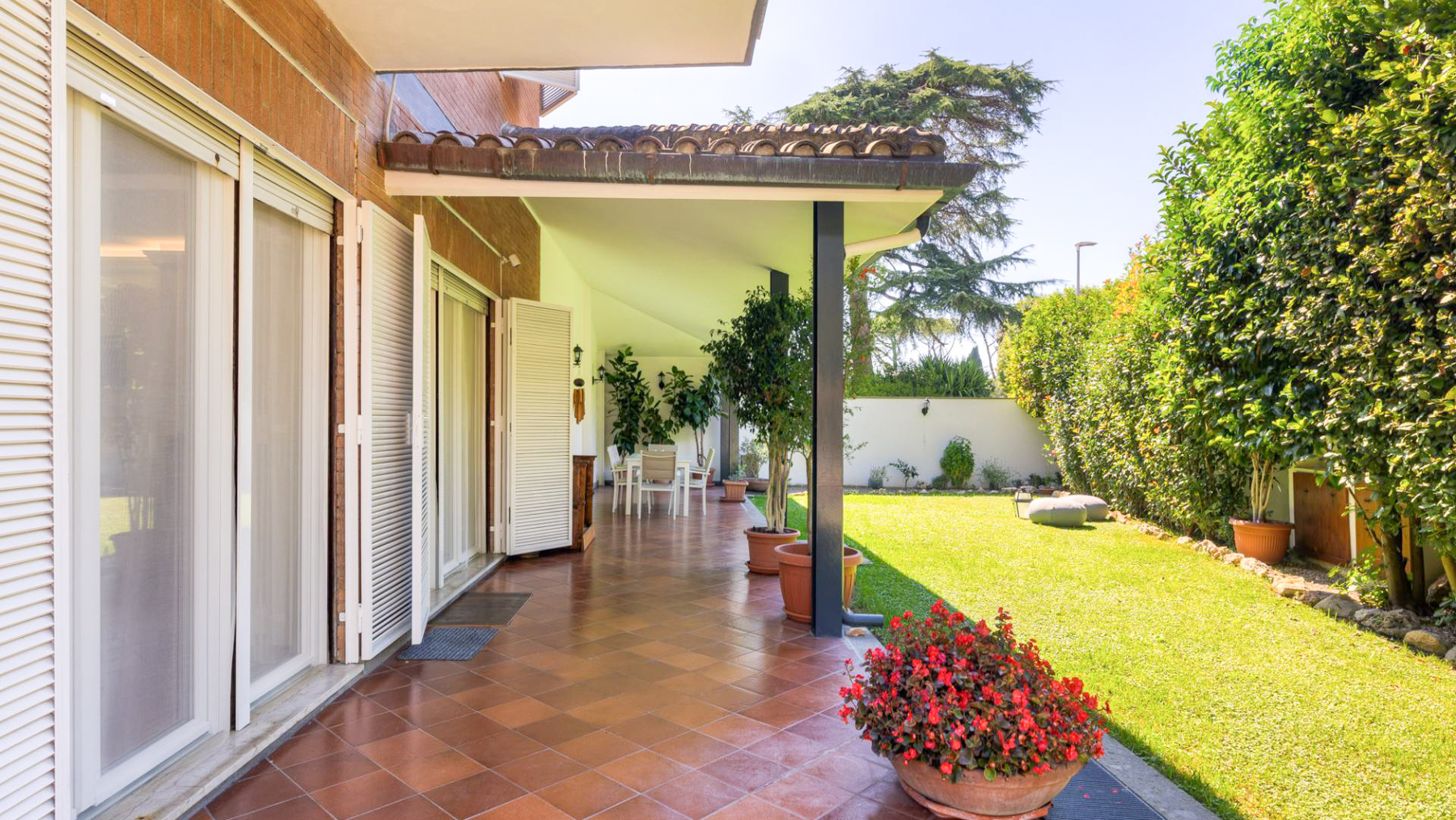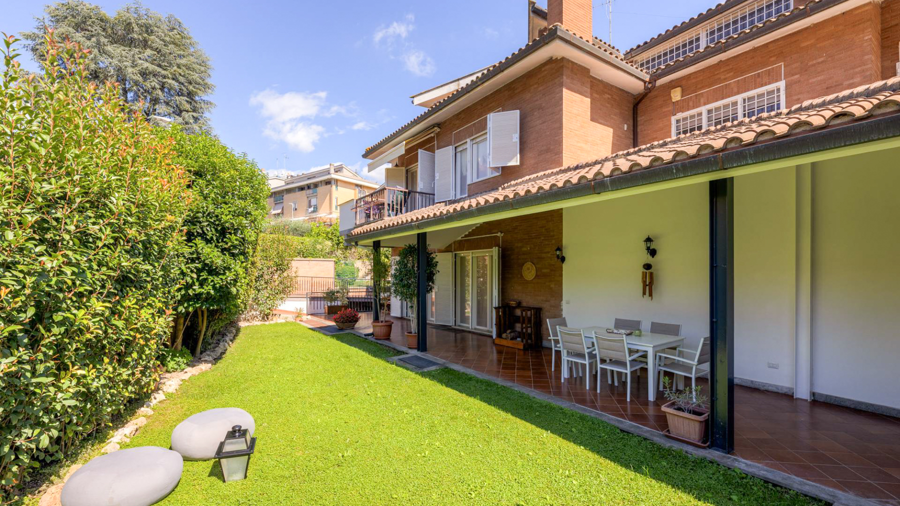 In the heart of Rome, where history and modernity intertwine, lies a sanctuary of elegance and charm. This exquisite two-story residence, with its red-brick facade and expansive windows, is a canvas of serenity, where sunlight dances across the lush green lawn and the gentle breeze whispers through manicured bushes and blooming flowers. Spanning 427 square meters, this remarkable property offers a harmonious blend of luxury and comfort. With 15 spacious rooms and 5 elegant bathrooms, it caters to a sophisticated lifestyle. The inviting outdoor area, complete with a private garden and a charming terrace, provides the perfect backdrop for gatherings or tranquil moments of reflection. Inside, the dining area, adorned with orange tile flooring and a grand wooden table, exudes warmth and hospitality, while artistic touches throughout the home create an atmosphere of refined taste. Living here means embracing the vibrant city life of Rome, yet retreating to your own peaceful haven. Imagine mornings spent in the garden, savoring coffee as the city awakens, or evenings on the terrace, where the stars illuminate the night sky and the city's energy pulses around you. This home is a place where memories are made, laughter is shared, and dreams are nurtured. This residence is a masterpiece of timeless beauty and modern sophistication, an unparalleled opportunity in the luxury real estate market of Rome. A rare offering that promises an extraordinary lifestyle for those who seek the best.