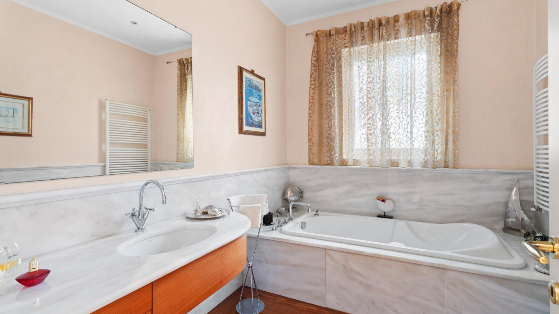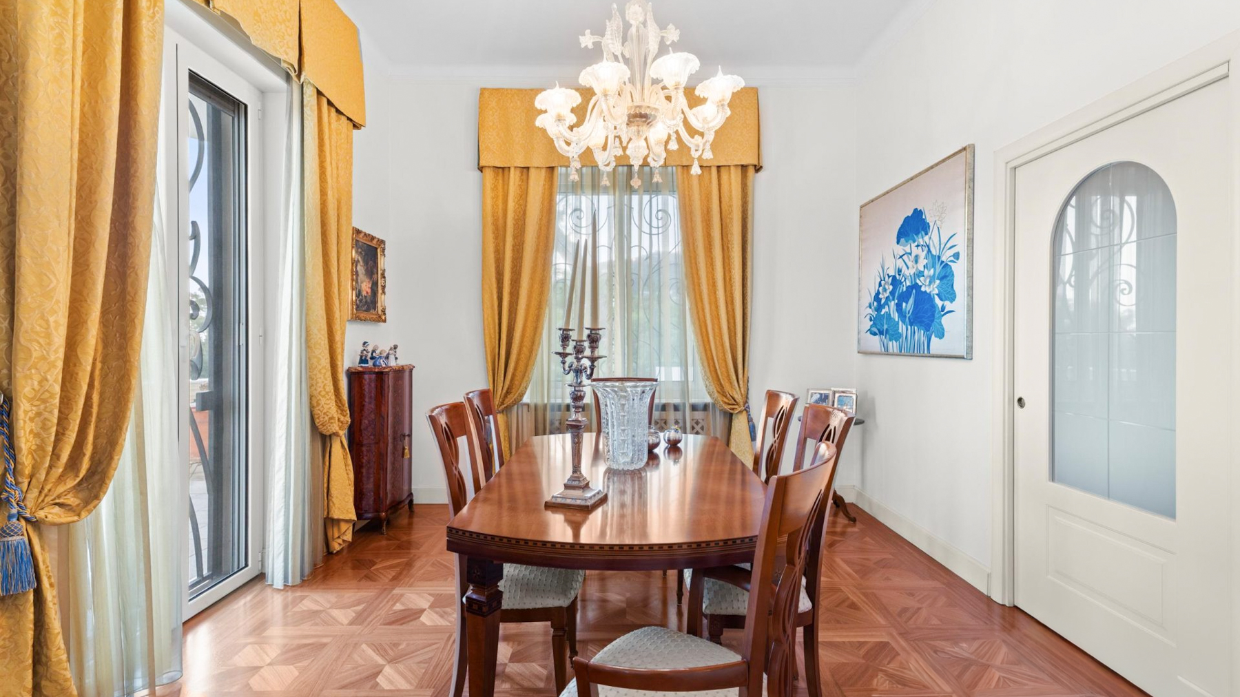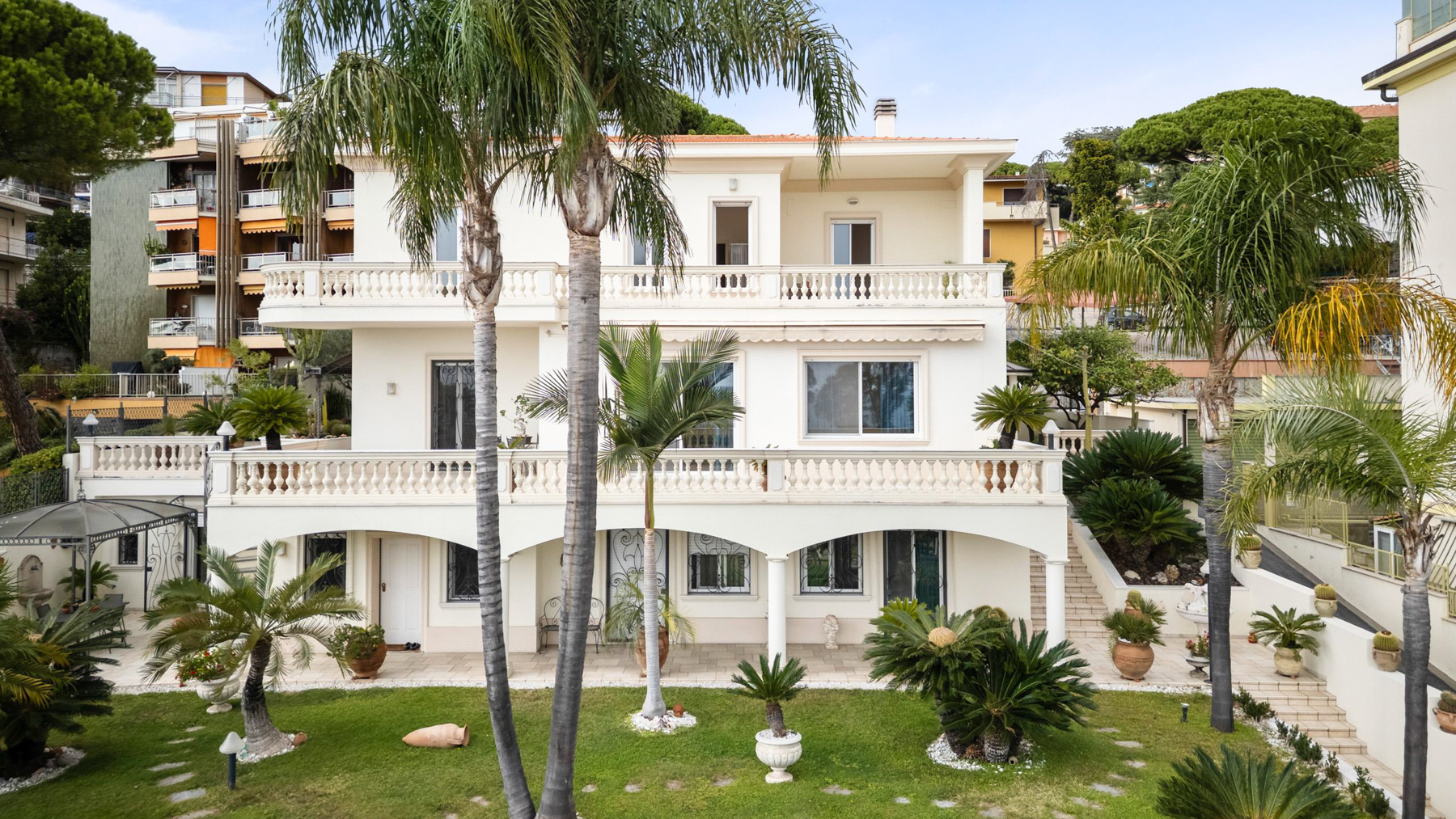 Set amidst a serene expanse of lush greenery, this magnificent villa in Sanremo, Imperia, offers a harmonious blend of luxury and tranquility. As you step onto the property, you're greeted by the gentle rustling of palm trees and the warmth of the sun, painting a picture of elegance against a backdrop of clear blue skies. Spanning an impressive 585 square meters, this villa boasts 12 spacious rooms and 5 opulent bathrooms, offering ample space for both relaxation and entertainment. The white exterior and inviting balcony complement the meticulously maintained private garden, while the terrace provides a perfect spot to bask in the breathtaking views. This residence is an embodiment of refined living in a picturesque residential area, seamlessly merging comfort with sophistication. Living in this villa is an experience of pure delight. Picture yourself descending the elegant wooden staircase, surrounded by exquisite artworks and decorative elements, each morning. Imagine evenings in the garden, with the scent of flowers mingling with the sea breeze, or hosting gatherings on the expansive terrace as the sun sets over the horizon, casting a golden glow on the landscape. This villa stands as a testament to the pinnacle of luxury living, a rare find in the heart of Sanremo. It represents an unparalleled fusion of timeless elegance and contemporary comfort, inviting you to experience a lifestyle of extraordinary prestige.
