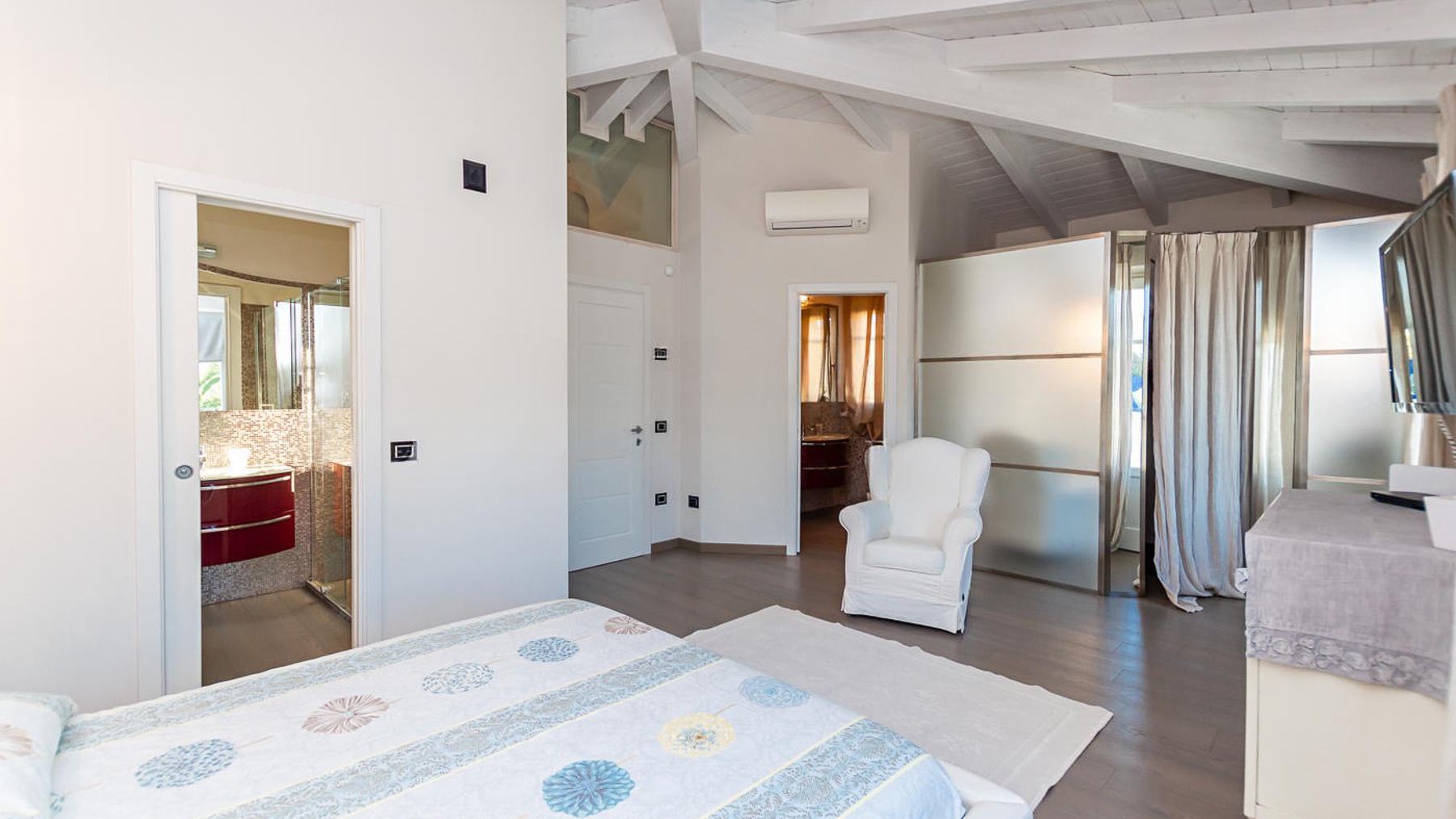 Amidst the tranquil beauty of Vittoria Apuana, an elegant oasis awaits just 1300 meters from the shimmering sea. This luxury villa captures the essence of refined living, where natural light dances through expansive windows and the scent of the ocean mingles with the lush greenery surrounding your private haven. Spanning 240 square meters, this exquisite property offers an array of luxurious features across two floors and a basement. With eight meticulously designed rooms and six bathrooms, the villa is a masterpiece of modern architecture. The open-plan ground floor seamlessly integrates a living and dining area with a state-of-the-art kitchen, while upstairs, the sleeping quarters boast parquet floors and stunning views from a private terrace. The basement unveils a serene retreat with a spa area, chromotherapy shower, sauna, and Jacuzzi, enhancing the villa’s allure. Outside, the 600-square-meter garden and pristine pool create a sanctuary of relaxation and leisure. Living here means embracing an unparalleled lifestyle where each day unfolds with the promise of indulgence and tranquility. Imagine sunlit mornings by the pool, serene afternoons in the spa, and evenings under the stars on your private terrace, all set against the backdrop of the Apuan Alps. This villa epitomizes the harmonious blend of luxury and comfort, setting a new standard in elite real estate. It is a rare treasure, destined for those who seek the extraordinary.