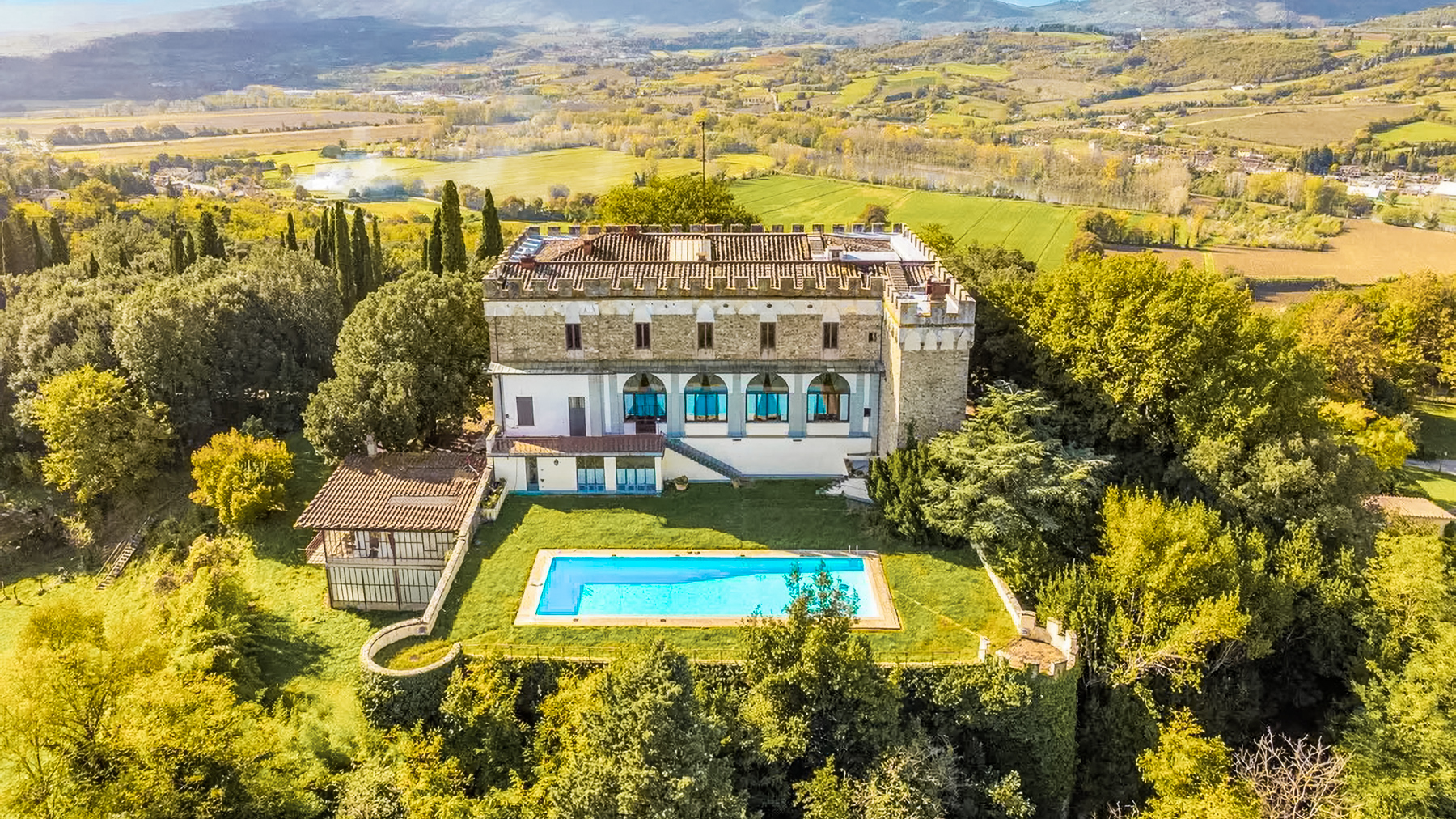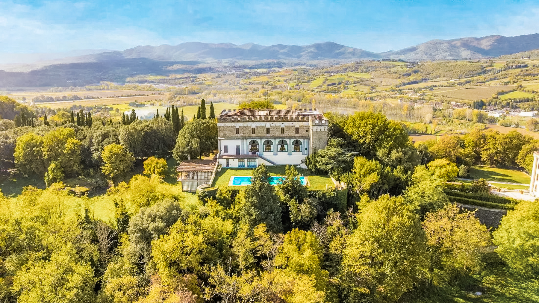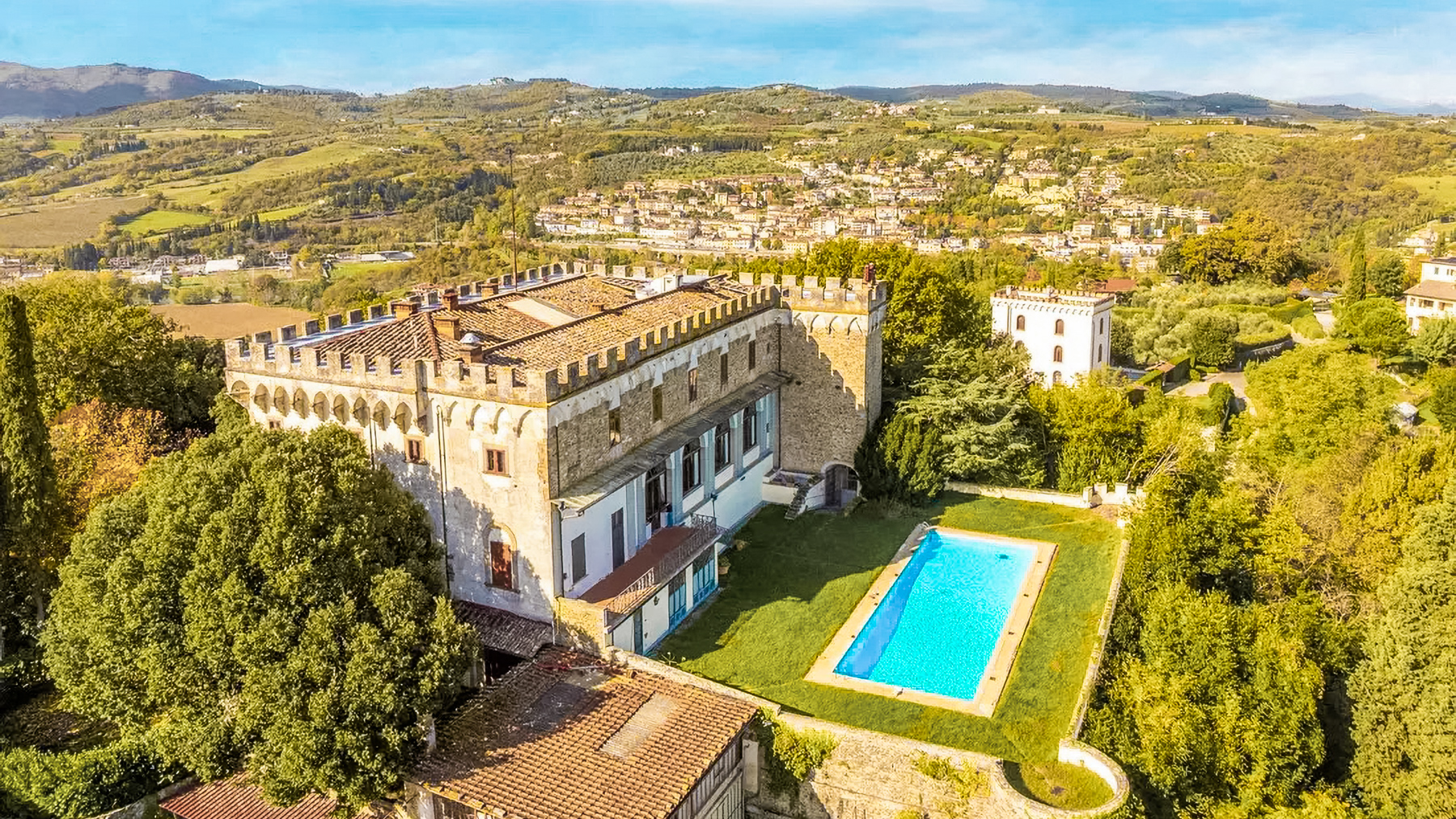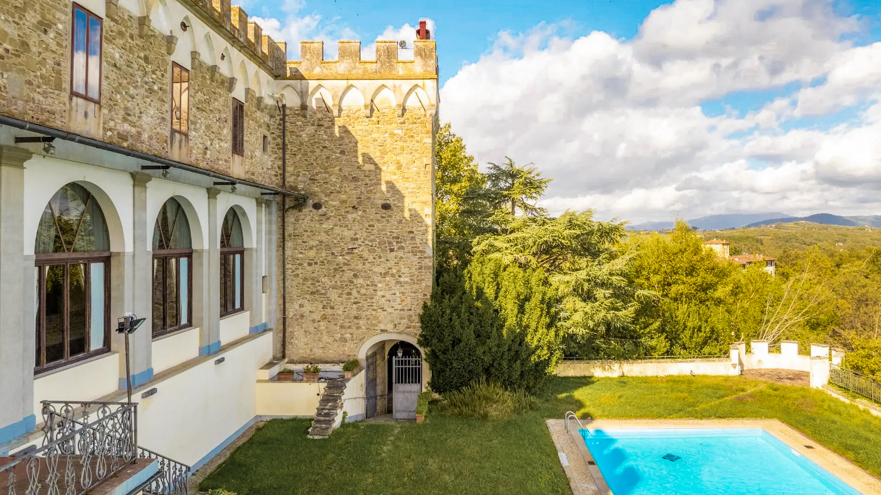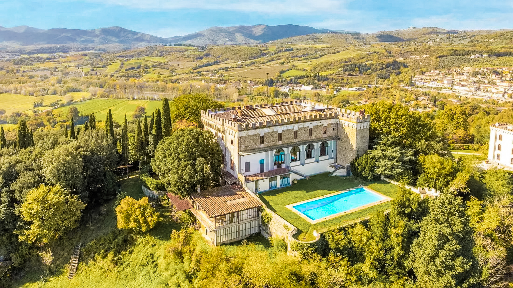 In the heart of a breathtaking countryside landscape, this magnificent villa stands as a beacon of elegance and serenity. The gentle rustle of leaves and the soft murmur of the countryside create an inviting atmosphere, while the bright sunshine illuminates the stunning stone facade and lush surroundings, painting a picture of idyllic luxury. Spanning an impressive 2450 square meters, this grand residence in Reggello, Città Metropolitana di Firenze, offers a spacious retreat with 53 rooms and 15 bathrooms. Its exquisite architectural details include a tower and arched windows, perfectly complementing the tranquil setting. The villa's distinctive features, such as a private pool and inviting terrace, blend seamlessly with the rolling hills and trees of the Tuscan landscape, offering a harmonious fusion of nature and opulence. Living here means embracing a lifestyle of unparalleled tranquility and sophistication. Picture yourself hosting elegant gatherings by the pool, surrounded by the lush greenery that whispers stories of timeless beauty. Every moment spent here is an opportunity to revel in the exquisite charm and serenity that only a property of this caliber can offer. This villa is a sanctuary where luxury meets nature, offering a rare opportunity to own a piece of timeless elegance in the heart of Tuscany's enchanting countryside. A true masterpiece in the world of luxury real estate.