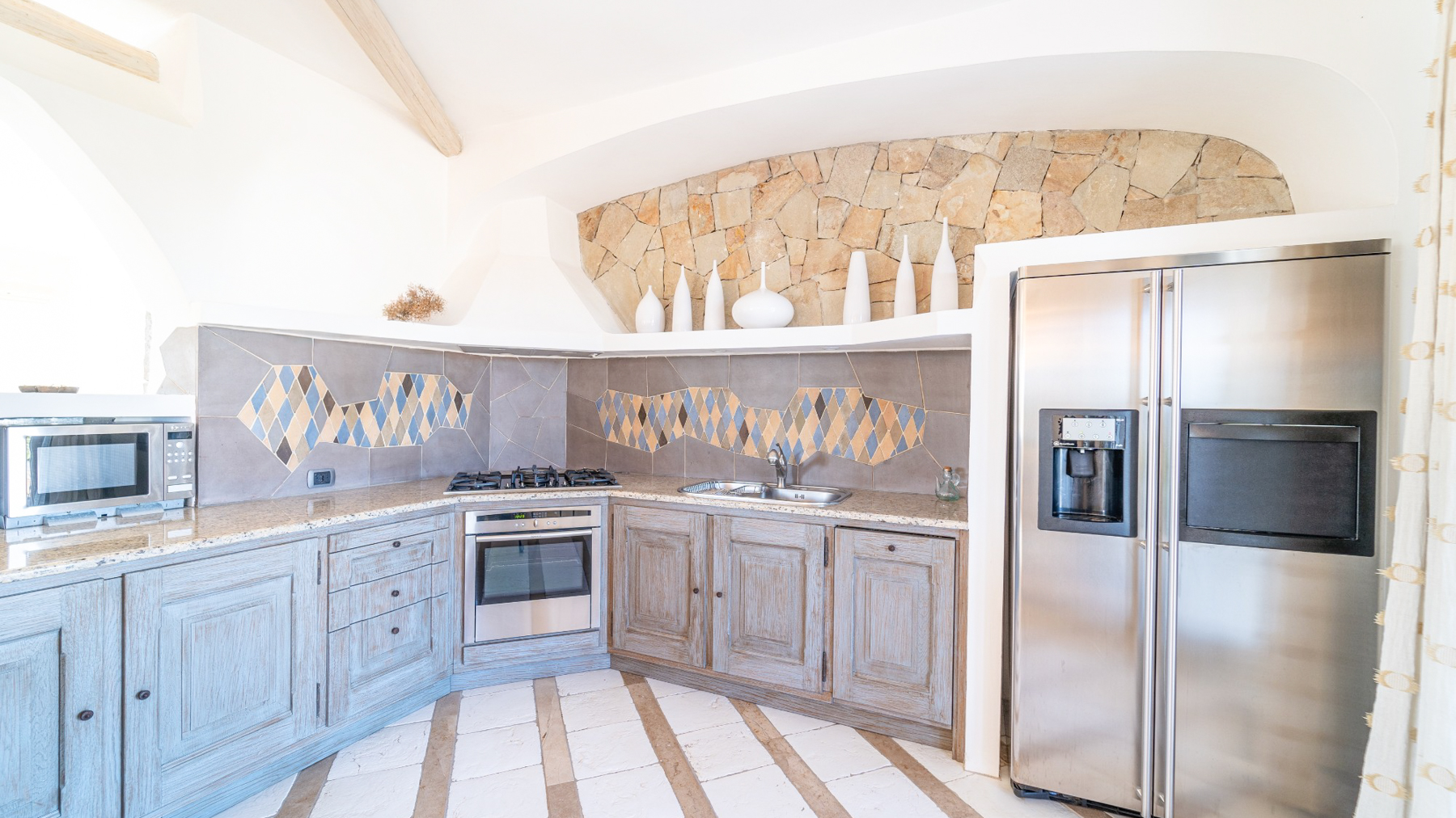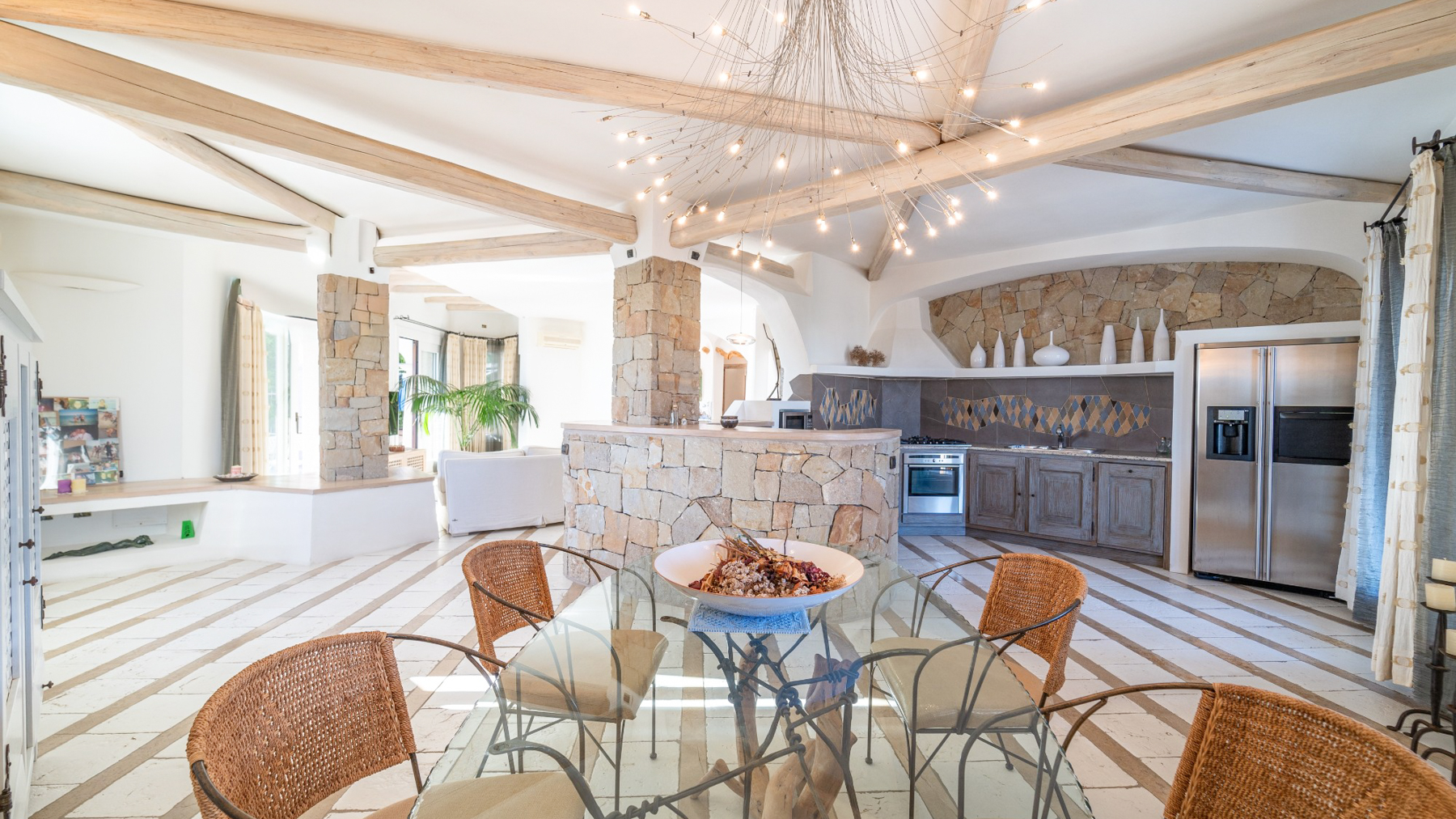 Tucked away in the vibrant town of Olbia, this exquisite property offers a serene escape where luxury meets comfort. Imagine waking up to the soft glow of the morning sun, with views of lush greenery and a clear blue sky painting the backdrop of your day. Here, tranquility and elegance intertwine seamlessly. Spanning a generous 266 square meters, this magnificent home boasts ten spacious rooms and four elegantly appointed bathrooms. The property’s distinctive features include a private garden and pool, providing a sanctuary for relaxation and entertainment. A stunning rooftop terrace, complete with a shaded wooden structure and built-in barbecue, offers the perfect setting for hosting gatherings or enjoying peaceful solitude. The modern kitchen, with its light blue cabinetry and speckled stone countertops, exudes a contemporary charm that complements the serene surroundings. Located in the picturesque region of Sassari, this home embodies the quintessential coastal lifestyle. Living in this property is an invitation to experience the enchanting Italian coastal lifestyle. Picture yourself lounging by the private pool as the scent of the sea breeze mingles with the aroma of a freshly grilled meal. Evenings can be spent on the terrace, sharing laughter and stories under a canopy of stars, with the sounds of nature as your symphony. This residence is a testament to the harmonious blend of luxurious living and timeless sophistication. It stands as a unique jewel in the luxury real estate market, offering an unparalleled opportunity to own a slice of paradise in Olbia.