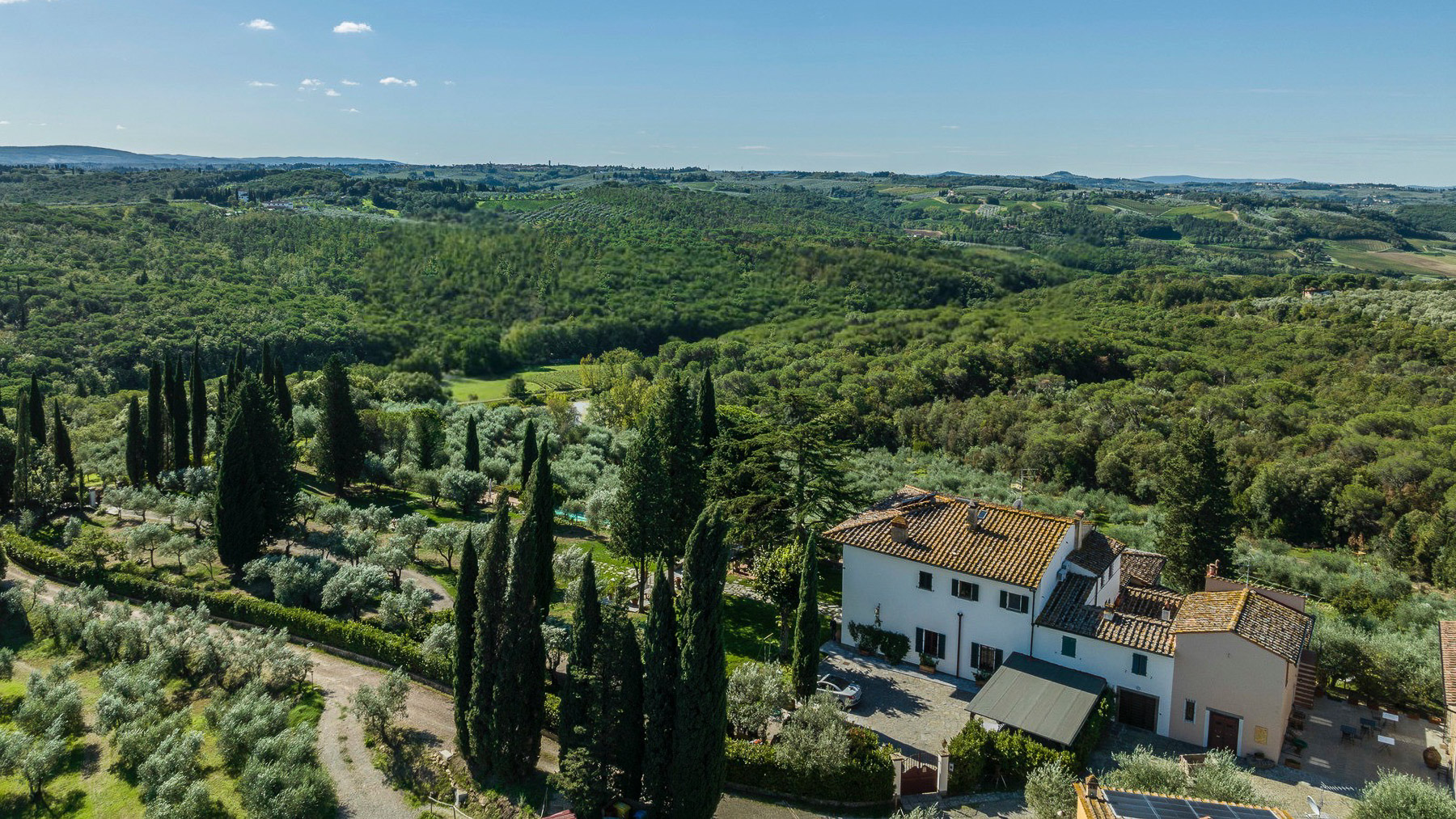 A hidden gem awaits you, embraced by the verdant embrace of the countryside, where nature sings and the breeze whispers secrets of serenity. The soft glow of morning light dances across the landscape, inviting you to explore a world where elegance meets tranquility. This exquisite property spans 618 square meters, offering an opulent setting with five luxurious rooms and five elegant bathrooms. The two-story house, with its pristine white exterior and grand windows, opens up to reveal a world of sophistication. A private garden, meticulously curated with olive and cypress trees, surrounds you, while a shimmering private pool and a spacious terrace provide perfect spots for relaxation. Located in the picturesque San Casciano in Val di Pesa, this sanctuary offers a quintessential countryside lifestyle, nestled within the heart of Tuscany's rolling hills. Here, life unfolds in a tapestry of unforgettable moments. Picture yourself savoring the aroma of freshly bloomed flowers as you stroll through your garden oasis. The terrace becomes your personal retreat, where candlelit dinners under the stars create memories that linger long after the sun has set. Whether it's a quiet morning by the pool or an evening filled with laughter and joy, this home is a canvas for your dreams. This property stands as a testament to the exquisite blend of timeless beauty and modern luxury—a rare masterpiece that captures the essence of refined living in one of Italy's most cherished regions.
