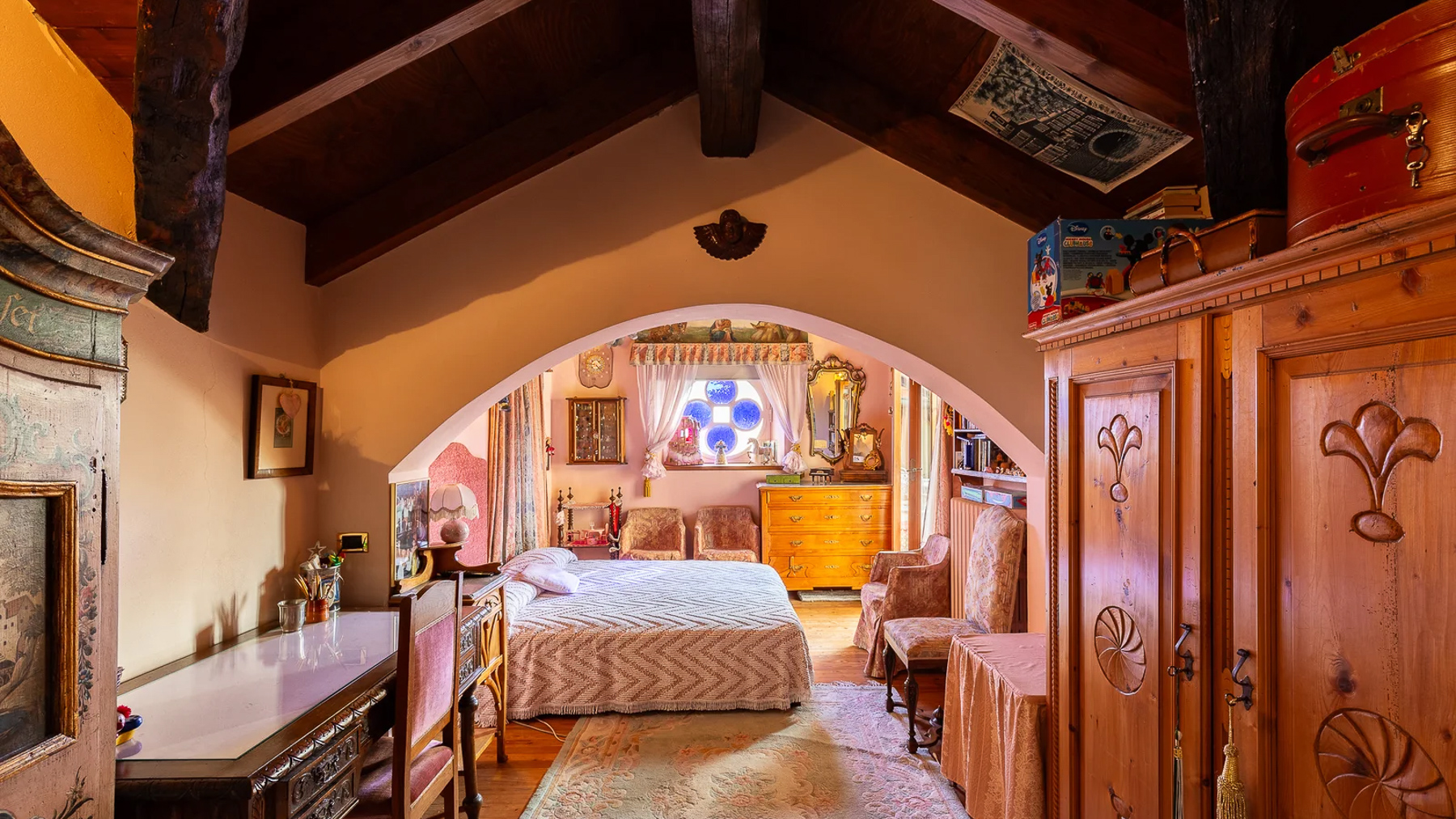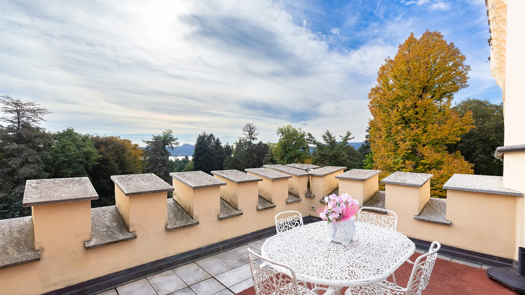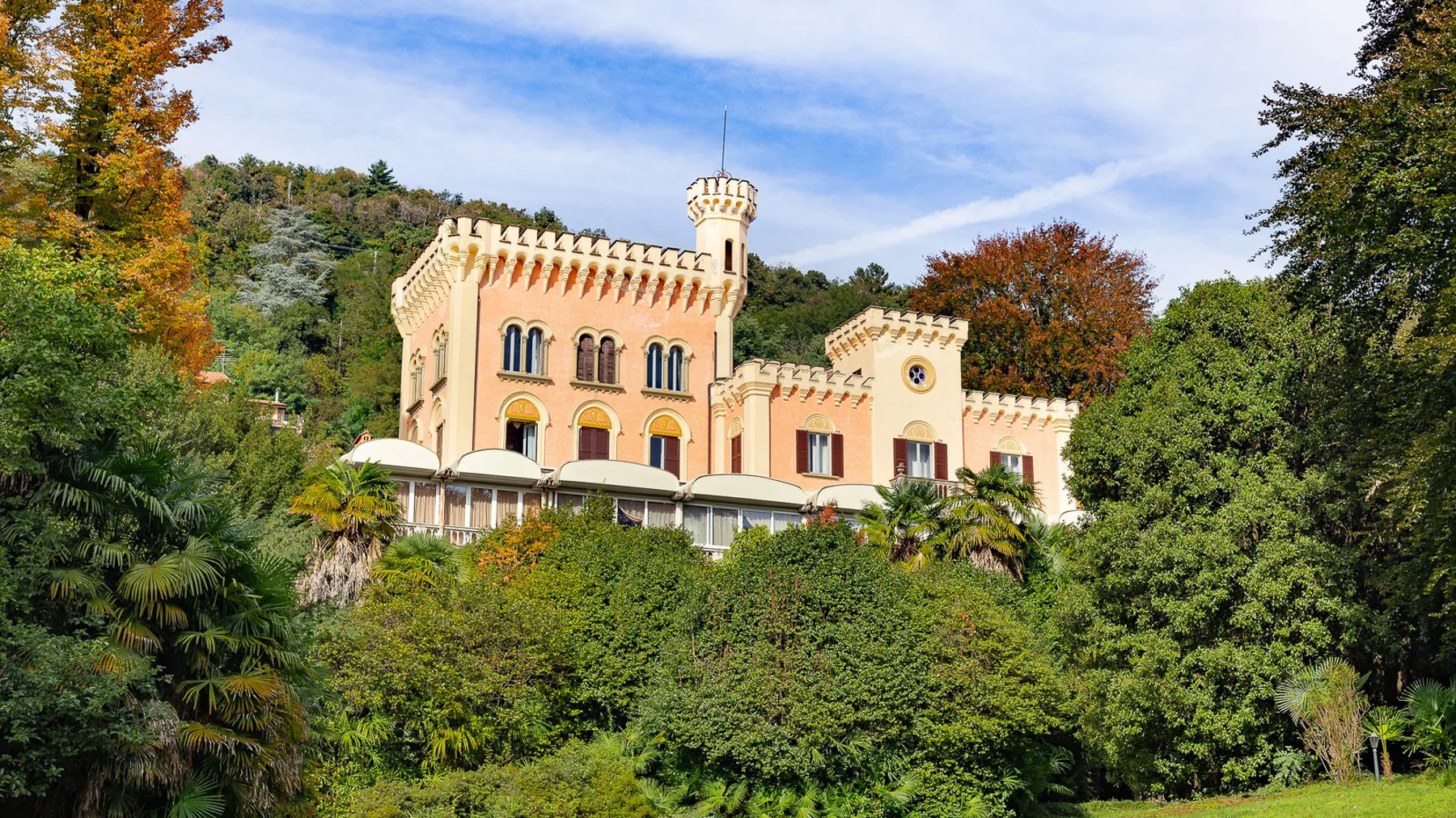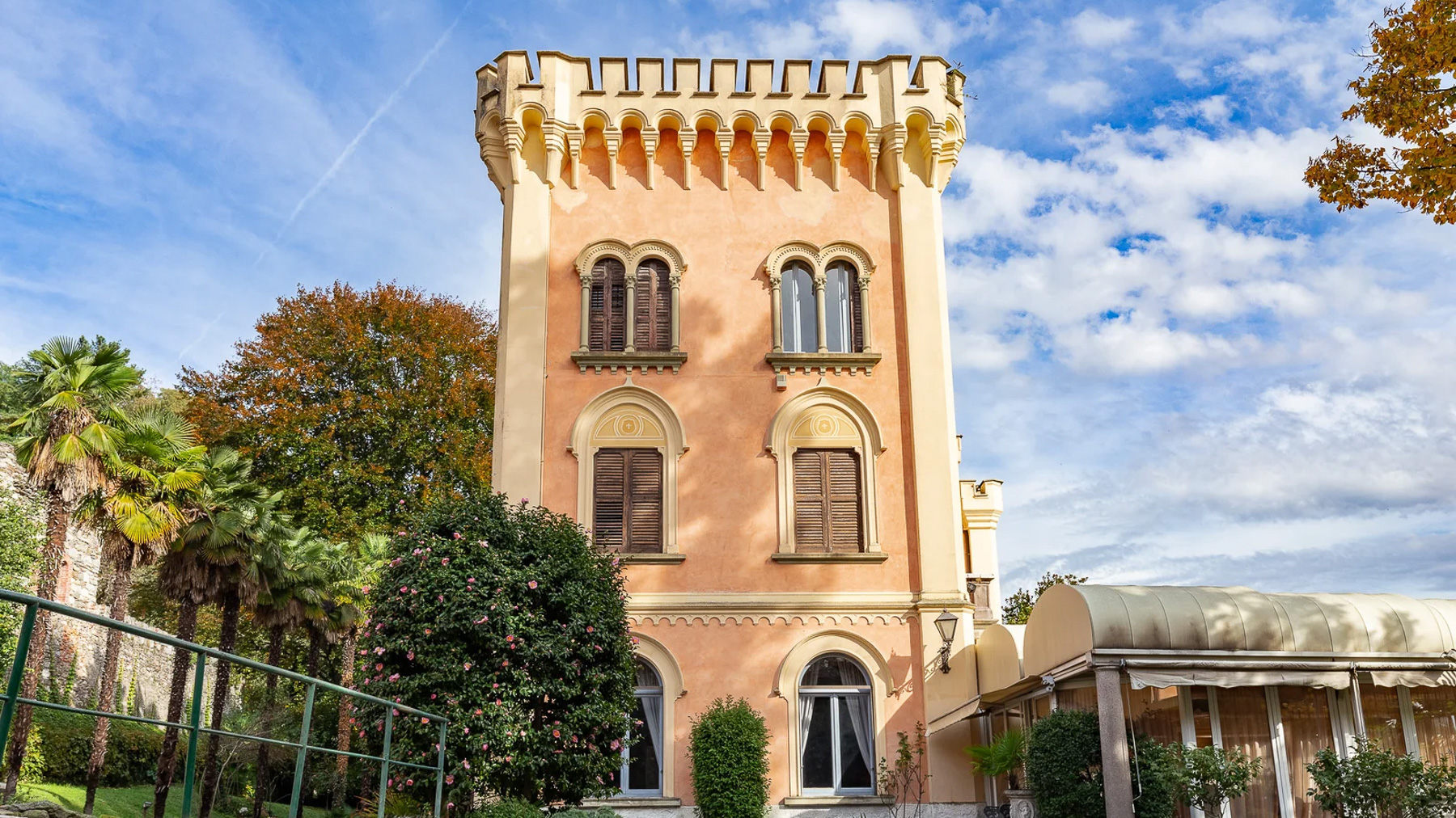 Perched on a serene hillside, this exceptional estate beckons with its whimsical charm and breathtaking vistas. The vibrant hues of the architecture contrast beautifully with the lush greenery that surrounds it, creating an enchanting atmosphere where the gentle rustle of leaves and the whisper of the wind invite you to unwind and savor the tranquility. Spanning an impressive 1300 square meters, this magnificent property boasts 22 elegantly appointed rooms and eight luxurious bathrooms. Its castle-like design, complete with towers and ornate details, offers a sense of grandeur and history. The symmetrical facade, adorned with multiple windows and charming shutters, adds to its allure. Surrounded by a private garden featuring palm trees and vibrant shrubs, the estate offers a picturesque retreat within the prestigious Lesa, Provincia di Novara. This haven is perfectly situated for those who appreciate the refined lifestyle of the Laghi region. Living here is an experience like no other. Picture yourself strolling through the meticulously landscaped gardens, where every corner reveals a new delight. The glass-enclosed spaces invite natural light to dance across the interiors, creating a warm and inviting ambiance
