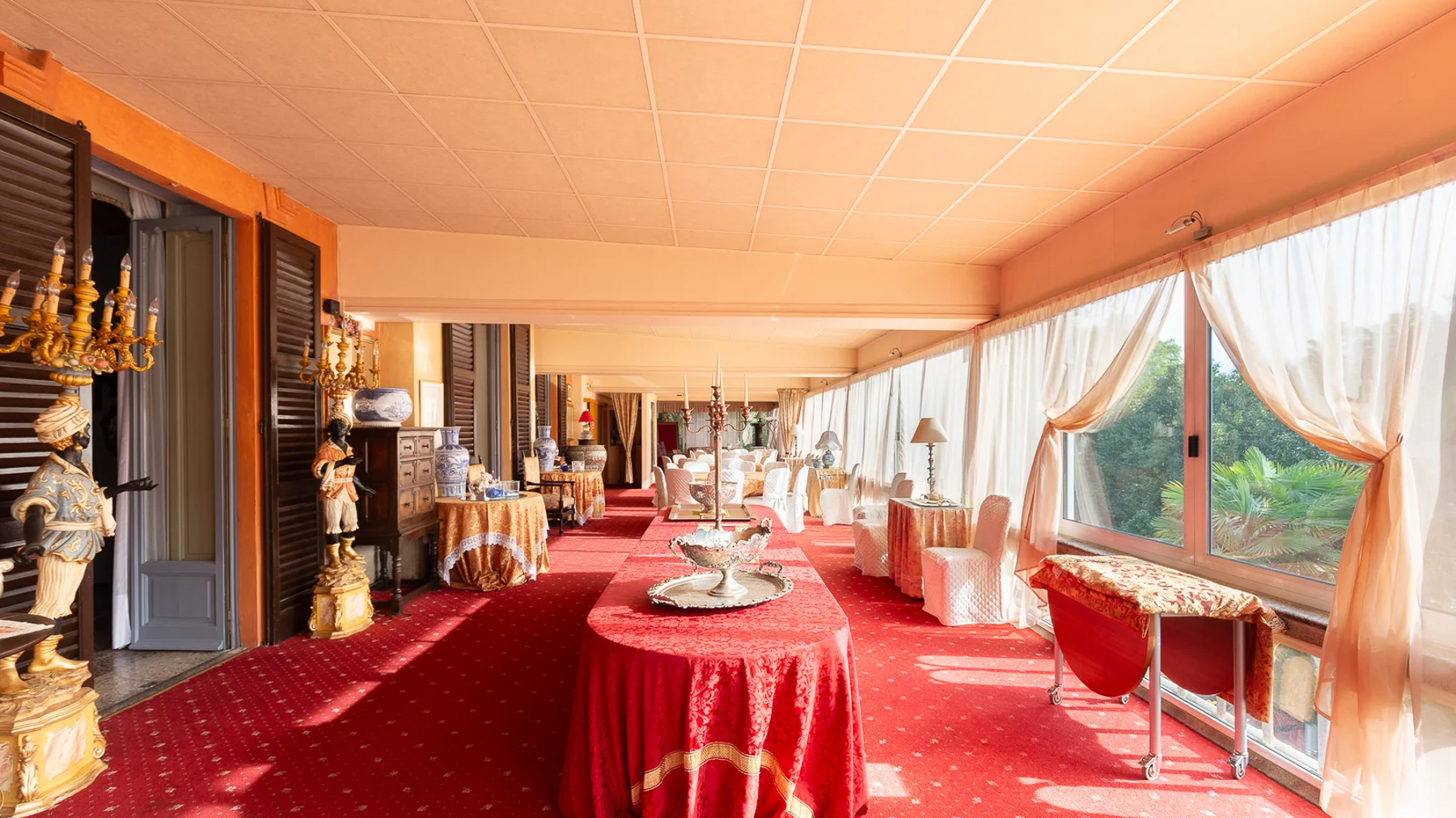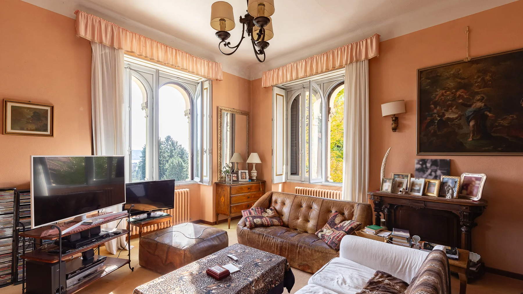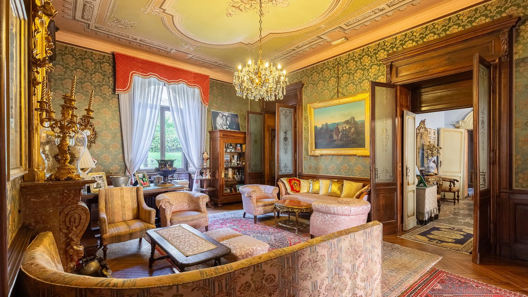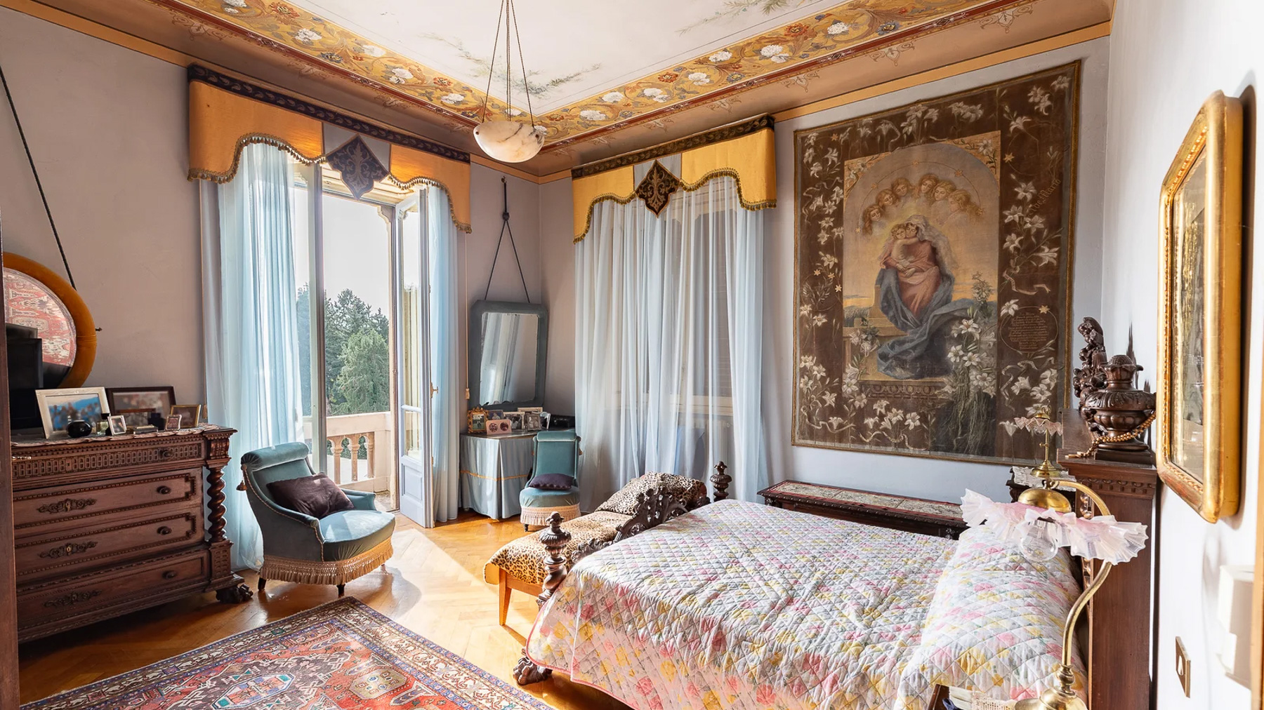 Perched on a serene hillside, this exceptional estate beckons with its whimsical charm and breathtaking vistas. The vibrant hues of the architecture contrast beautifully with the lush greenery that surrounds it, creating an enchanting atmosphere where the gentle rustle of leaves and the whisper of the wind invite you to unwind and savor the tranquility. Spanning an impressive 1300 square meters, this magnificent property boasts 22 elegantly appointed rooms and eight luxurious bathrooms. Its castle-like design, complete with towers and ornate details, offers a sense of grandeur and history. The symmetrical facade, adorned with multiple windows and charming shutters, adds to its allure. Surrounded by a private garden featuring palm trees and vibrant shrubs, the estate offers a picturesque retreat within the prestigious Lesa, Provincia di Novara. This haven is perfectly situated for those who appreciate the refined lifestyle of the Laghi region. Living here is an experience like no other. Picture yourself strolling through the meticulously landscaped gardens, where every corner reveals a new delight. The glass-enclosed spaces invite natural light to dance across the interiors, creating a warm and inviting ambiance