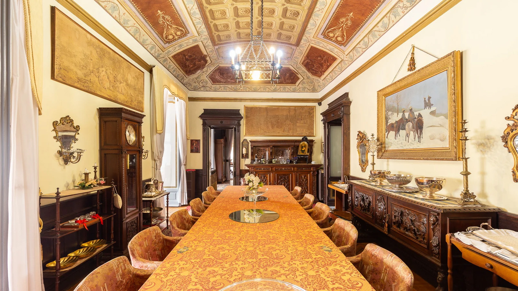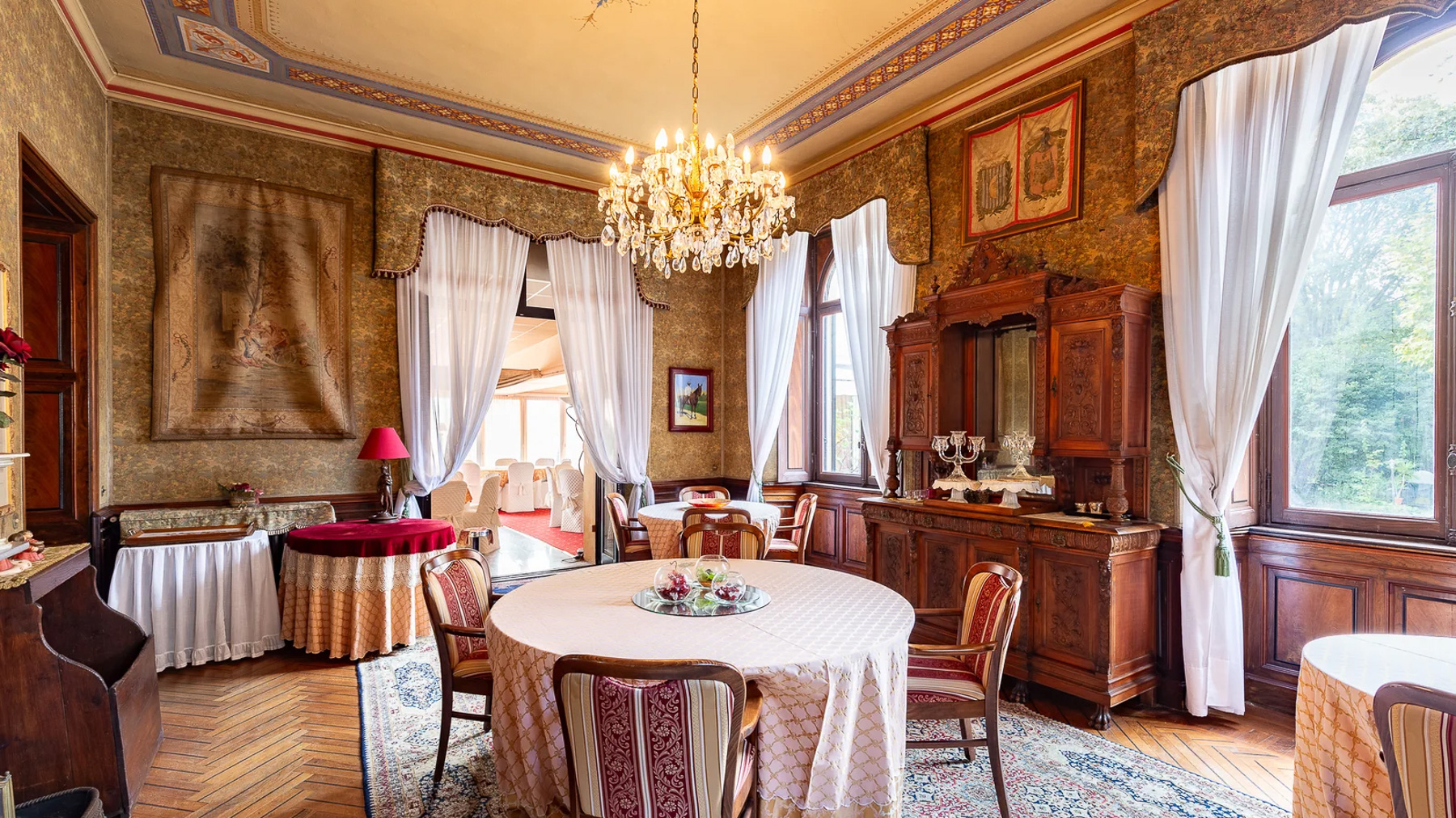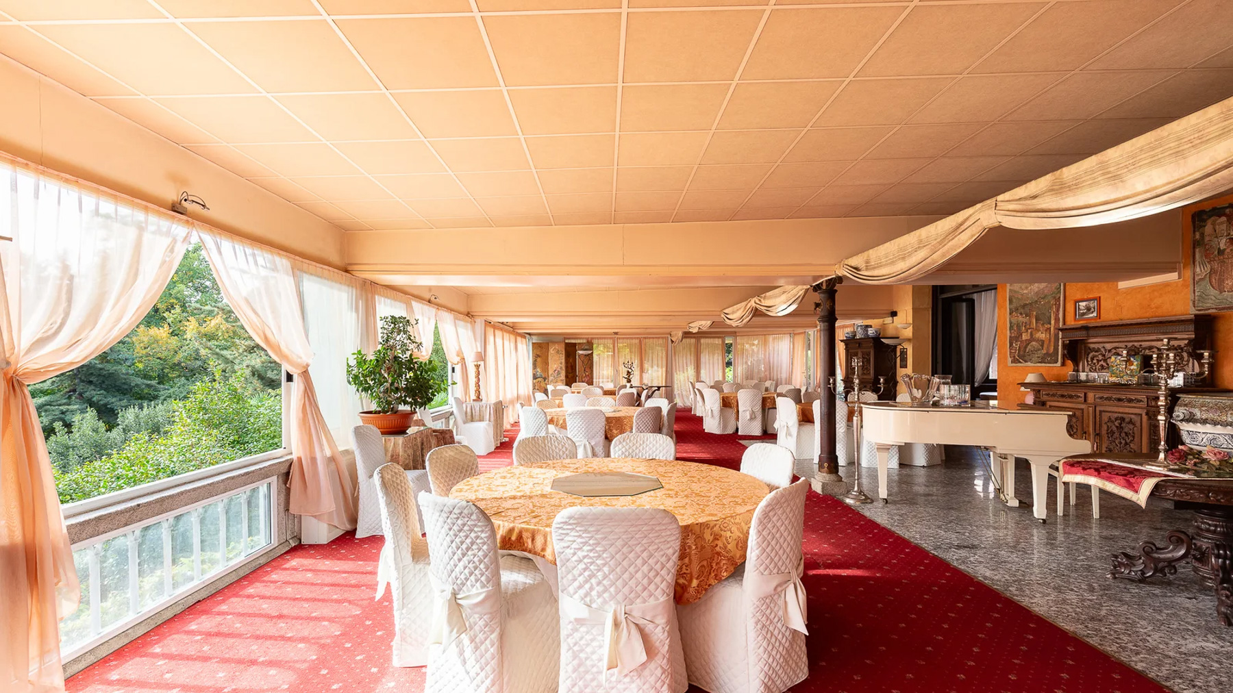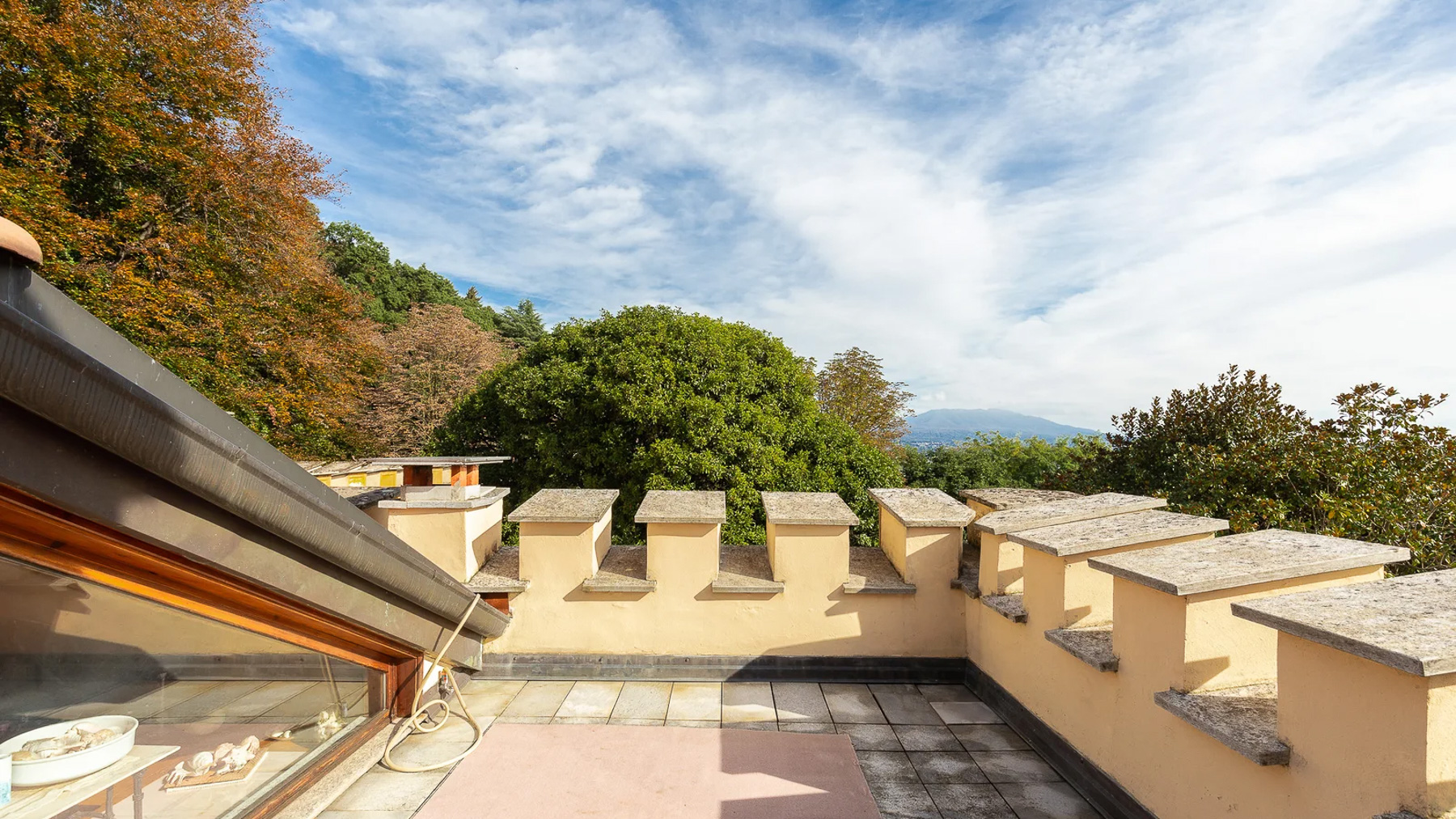 Perched on a serene hillside, this exceptional estate beckons with its whimsical charm and breathtaking vistas. The vibrant hues of the architecture contrast beautifully with the lush greenery that surrounds it, creating an enchanting atmosphere where the gentle rustle of leaves and the whisper of the wind invite you to unwind and savor the tranquility. Spanning an impressive 1300 square meters, this magnificent property boasts 22 elegantly appointed rooms and eight luxurious bathrooms. Its castle-like design, complete with towers and ornate details, offers a sense of grandeur and history. The symmetrical facade, adorned with multiple windows and charming shutters, adds to its allure. Surrounded by a private garden featuring palm trees and vibrant shrubs, the estate offers a picturesque retreat within the prestigious Lesa, Provincia di Novara. This haven is perfectly situated for those who appreciate the refined lifestyle of the Laghi region. Living here is an experience like no other. Picture yourself strolling through the meticulously landscaped gardens, where every corner reveals a new delight. The glass-enclosed spaces invite natural light to dance across the interiors, creating a warm and inviting ambiance