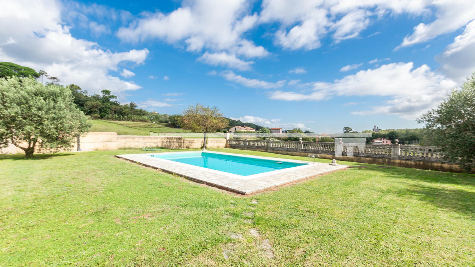 Amidst the gently rolling hills of Tuscany, this historic estate in the countryside of Lucca stands as a sanctuary of elegance and luxury. The golden facade of the manor, adorned with classic green shutters, captures the sunlight, while the tranquil garden and serene landscape evoke a sense of timeless beauty and escape. Spanning an impressive 1350 square meters, the estate includes a grand villa with 20 rooms and 9 bathrooms, an annex, and additional farm and garage buildings. The interior exudes authentic Tuscan charm with its frescoed ceilings and refined grit flooring. The lush grounds feature a private saltwater pool, terraced gardens, and pergolas, offering idyllic spots for relaxation. The property is embraced by seven hectares of vineyards and olive groves, with a historic hunting lodge perched on the wooded hill. Life at this estate offers an unparalleled experience of Italian countryside living. Envision leisurely afternoons by the pool, dining alfresco under the pergola, or savoring a glass of wine from your private cellar, steeped in the rich history of being Italy’s first mechanized winery. The estate is a haven where tradition meets tranquility, perfect for intimate gatherings or peaceful solitude. This property is more than just a home; it is a rare opportunity to own a piece of Tuscan heritage, where classic allure and modern luxury converge in harmony.