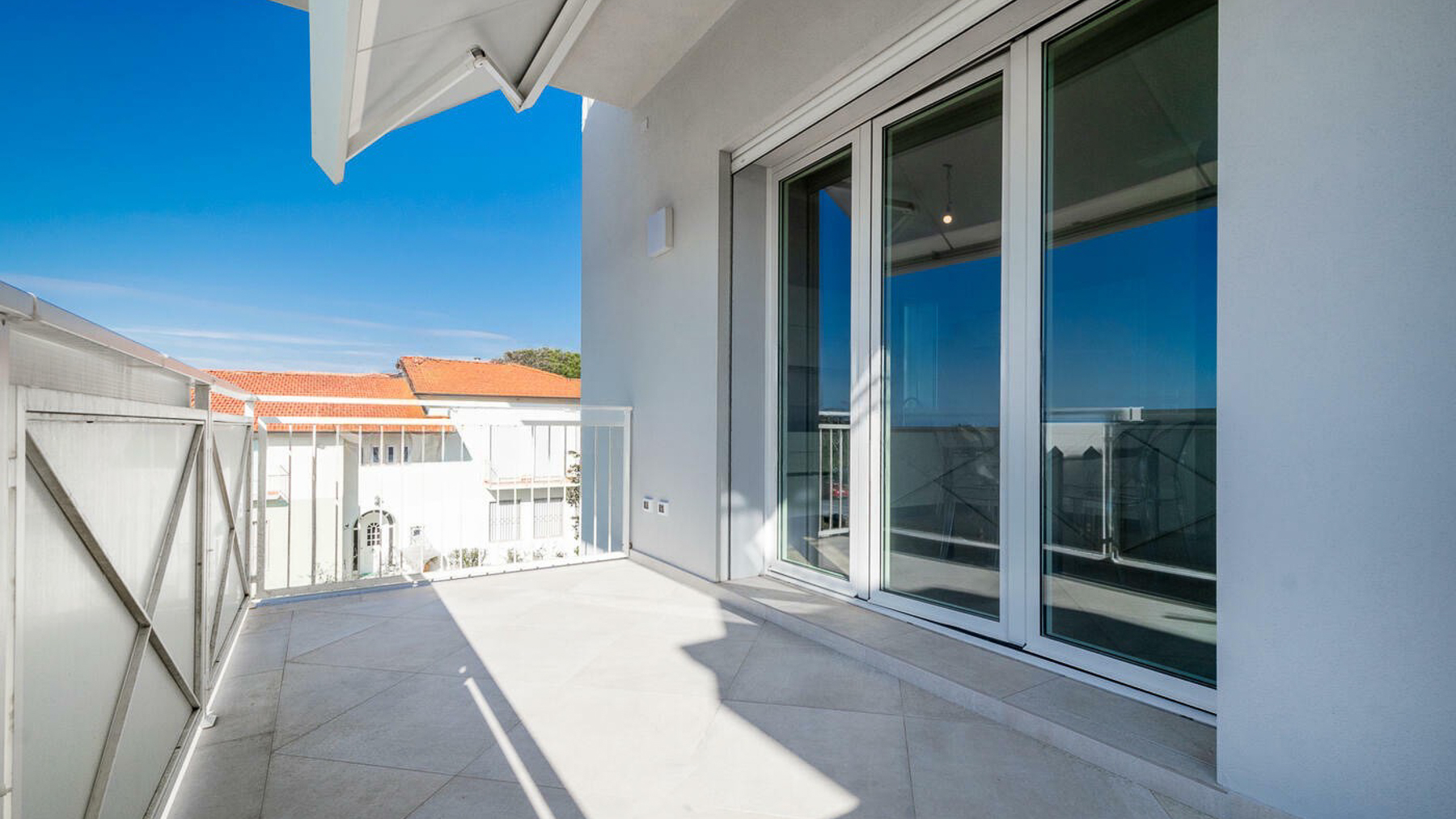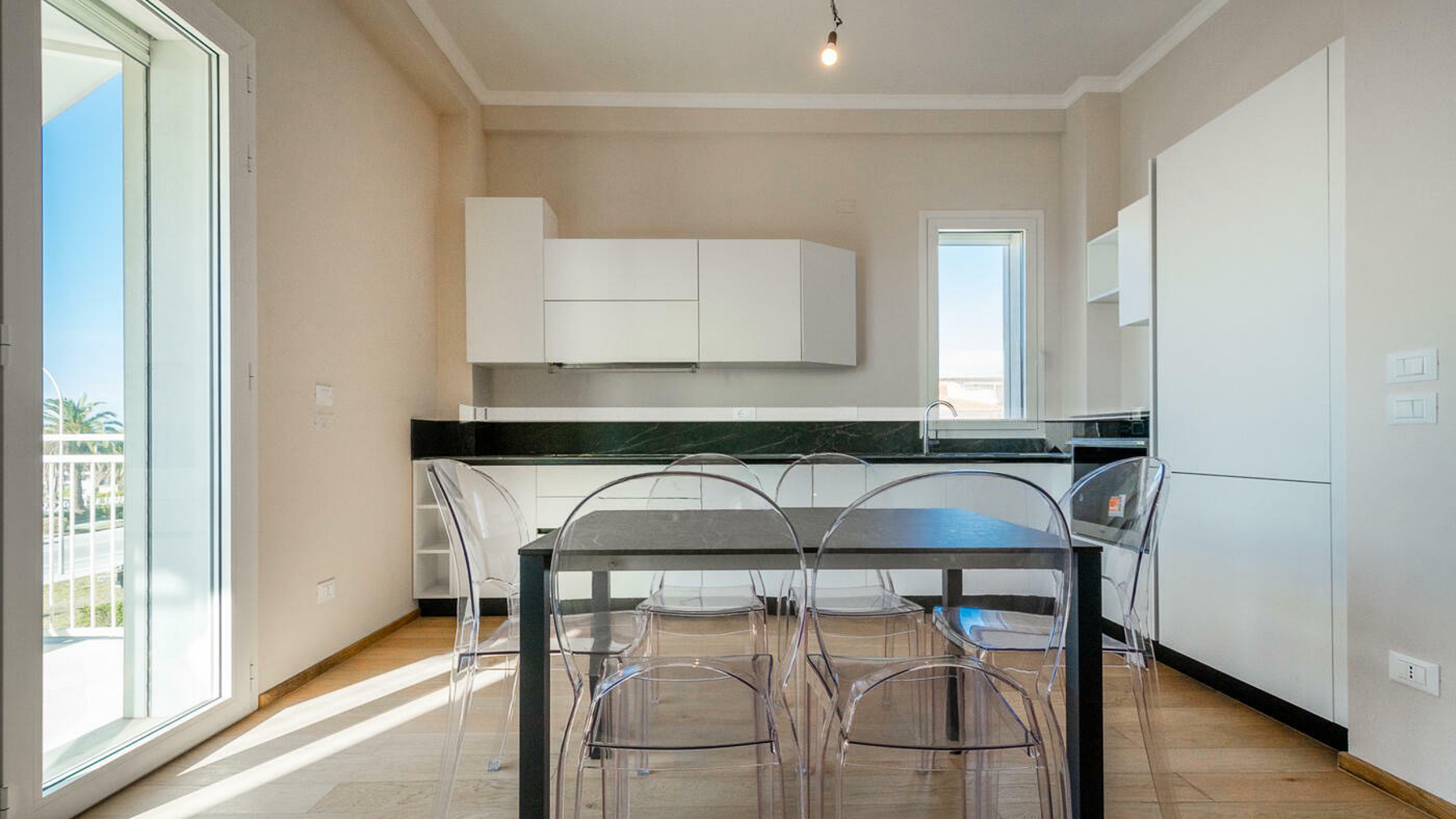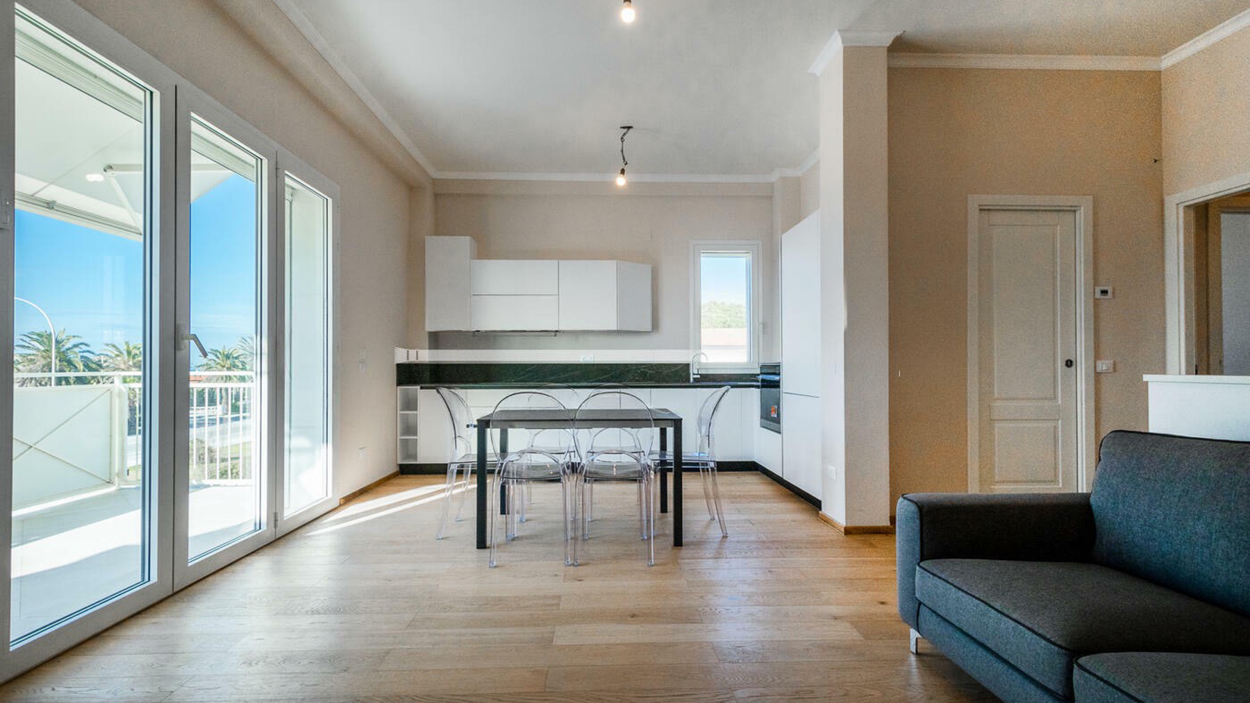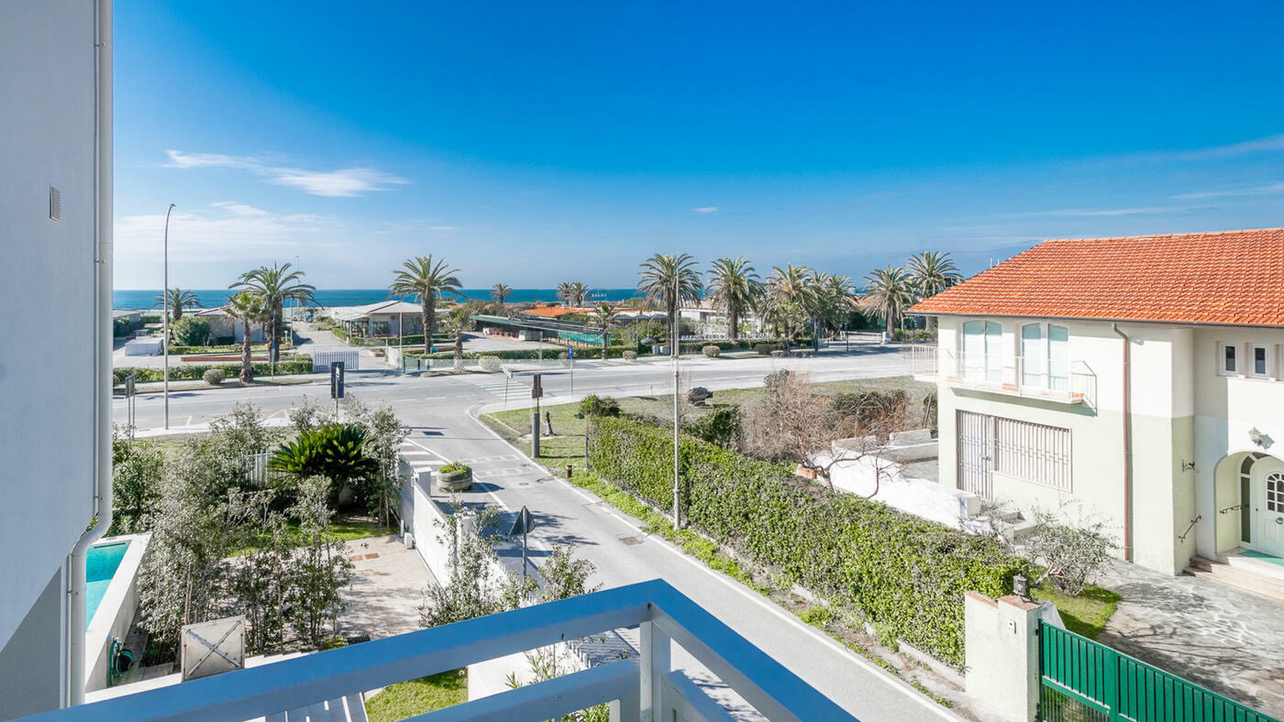 Perched in the heart of Marina di Pietrasanta, this newly built flat offers a sanctuary of sophistication just 20 meters from the enchanting Versilia coastline. Bathed in natural light, the interior seamlessly blends with the expansive terrace, inviting you to savor breathtaking sea views and the gentle murmur of ocean waves. Spanning a generous 120 square meters, this luxurious residence features an open living space with a modern kitchen, perfect for entertaining. The property boasts four elegantly appointed rooms, including two double bedrooms with en suite baths, a third bedroom, and an additional bathroom. Each room opens onto a balcony, enhancing the connection with the serene surroundings. Two private parking spaces complement the property, which is crafted with state-of-the-art green building principles, energy-efficient systems, and exquisite finishes. Imagine waking up to the soft sound of waves, enjoying breakfast on the terrace bathed in sunlight, and spending your days exploring the vibrant life that Marina di Pietrasanta has to offer. As the day fades, retreat to your sanctuary and unwind with a glass of wine as the sun sets over the azure sea. This exclusive flat is a harmonious blend of cutting-edge design and timeless elegance, a rare opportunity to own a piece of luxury in one of Italy's most coveted coastal destinations.