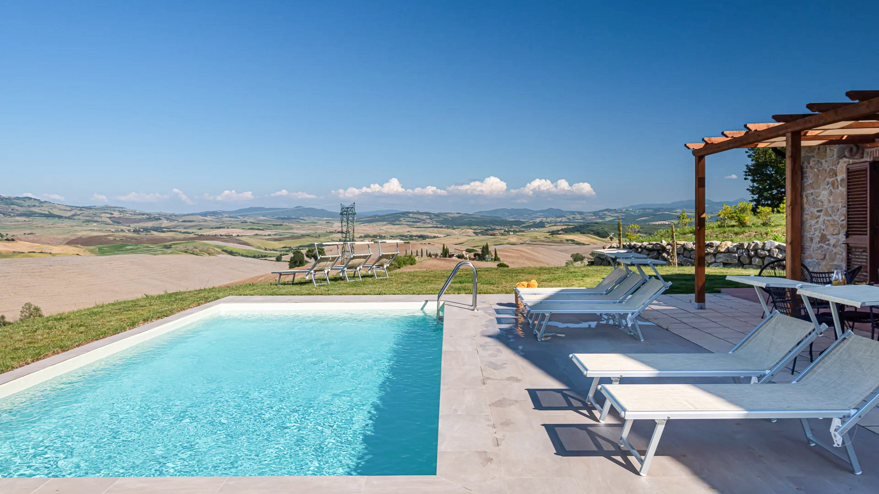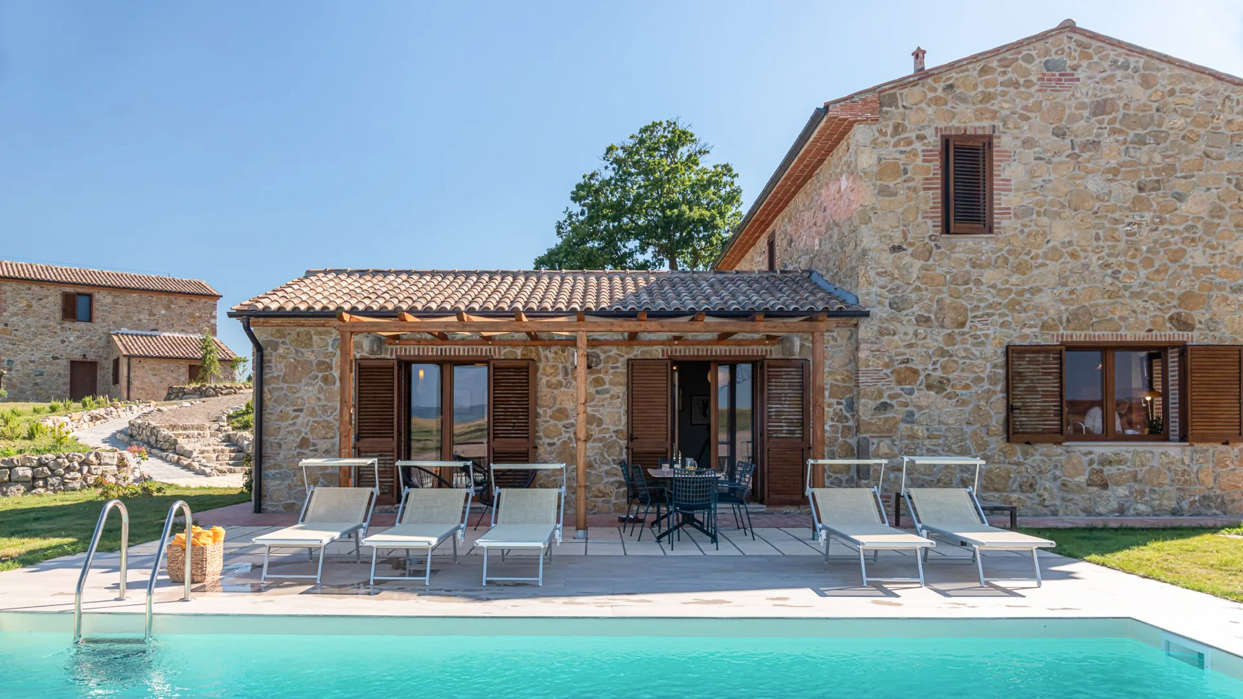 Amidst the gentle embrace of the Tuscan hills, this exquisite villa stands as a sanctuary of peace and sophistication, offering breathtaking views of the verdant landscape. The air is filled with the scent of cypress trees and the distant murmur of the countryside, creating a serene atmosphere that enchants the senses. Spanning 215 square meters, this luxurious abode harmonizes traditional Tuscan architecture with modern comforts. It boasts four spacious rooms and four elegantly designed bathrooms, providing ample space for relaxation and rejuvenation. The property includes a private pool, inviting you to indulge in leisurely swims under the Tuscan sun. Located in the charming Montecatini Val di Cecina, Pisa, this villa embodies the quintessential countryside lifestyle. Imagine waking up to panoramic views of rolling hills, the sun casting a golden glow over the landscape. Days can be spent exploring the nearby medieval villages, or simply lounging by the pool, surrounded by nature's beauty. Evenings unfold with alfresco dinners, as the sky transforms into a tapestry of stars. This villa is a testament to refined living, offering a unique blend of historical charm and contemporary elegance—a true masterpiece in the realm of luxury real estate.