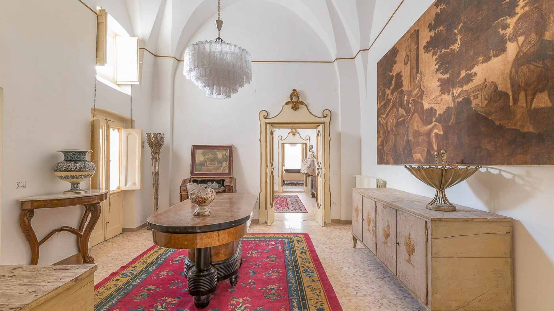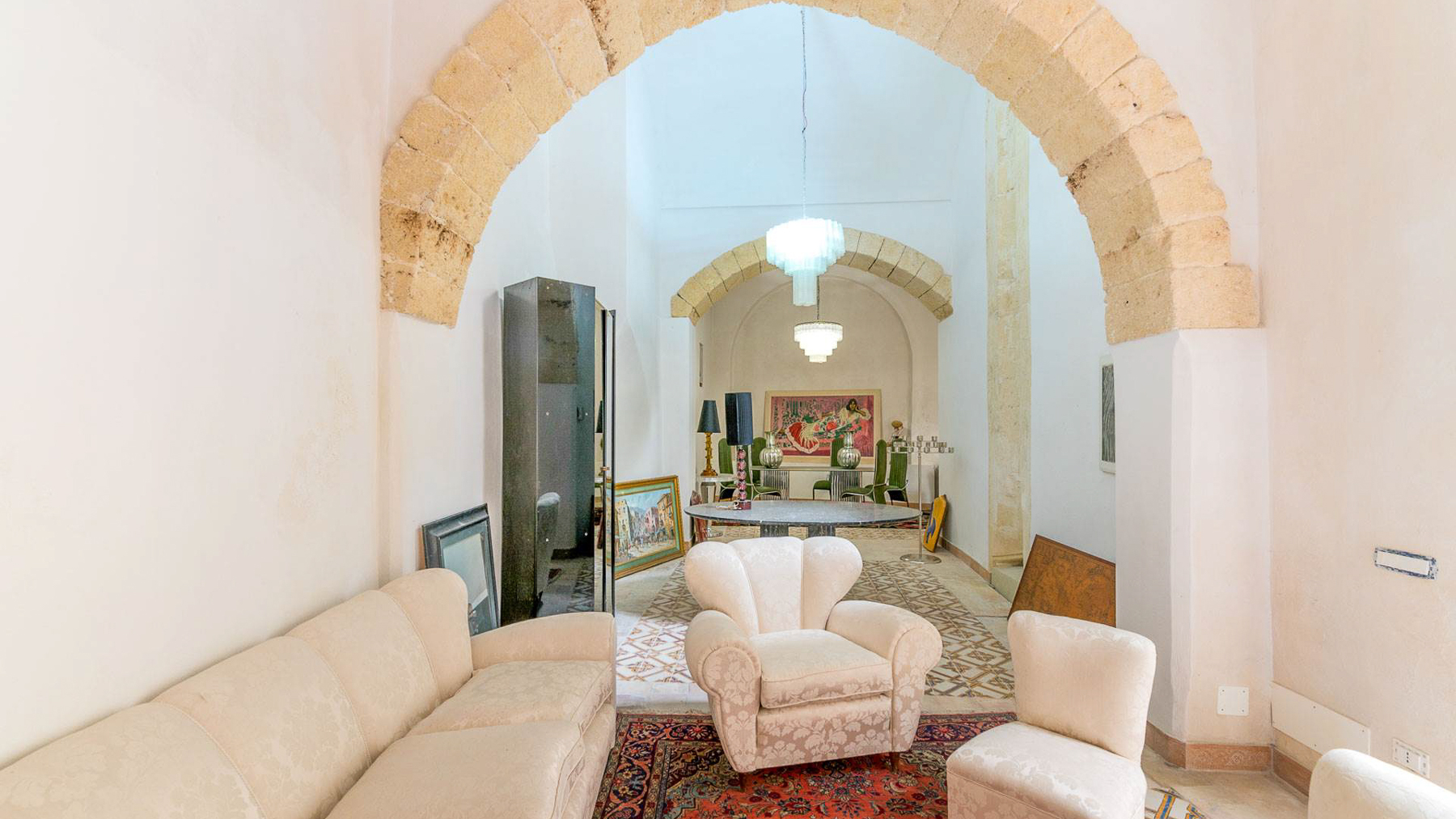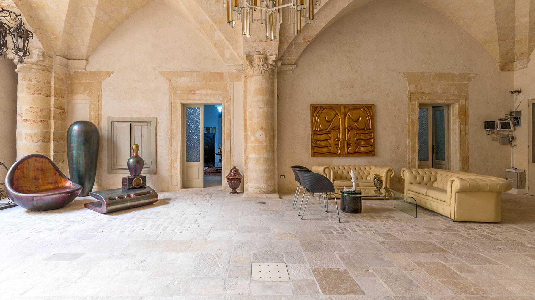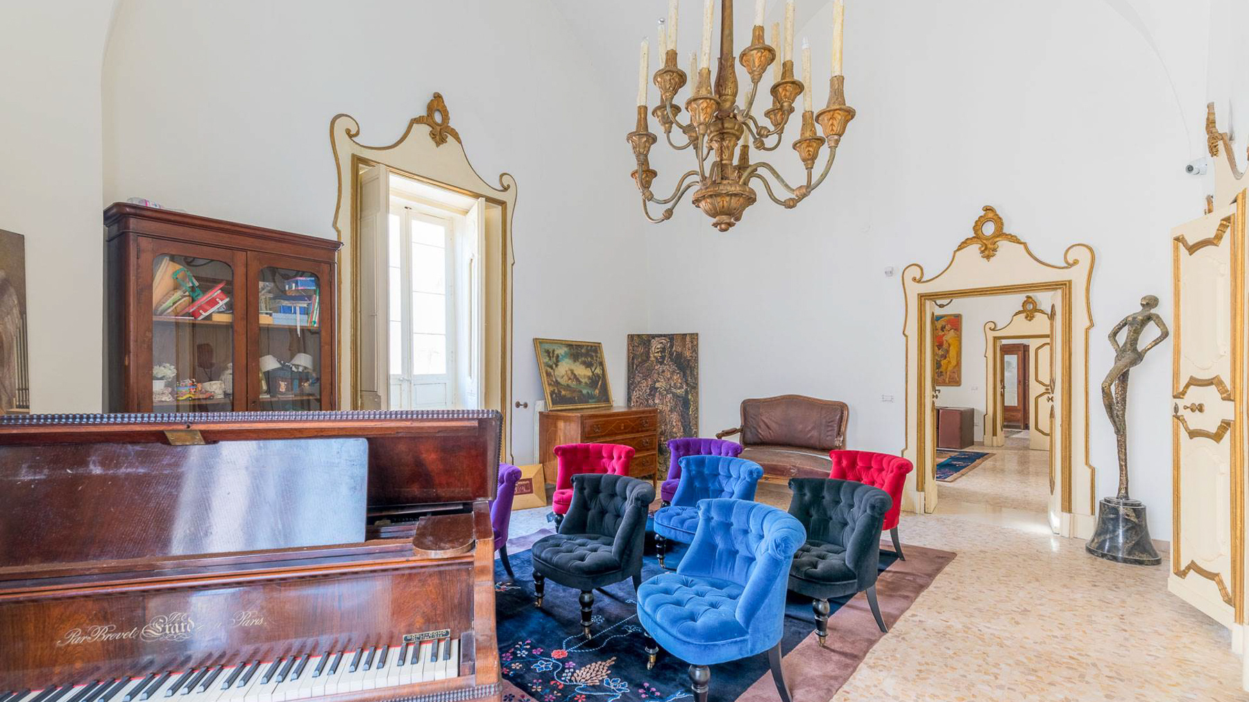 Enveloped in an aura of timeless elegance, this exquisite property unveils a sanctuary of sophisticated design and artistic charm. Bathed in natural light, the grand room invites you to a world where history and luxury blend seamlessly, as French doors open to reveal the vibrant heart of Grottaglie, Taranto. Spanning an impressive 685 square meters, this majestic residence boasts 17 meticulously designed rooms and 5 opulent bathrooms, offering a palatial living experience. The classic interior features colorful armchairs arranged in a welcoming circle, a grand piano as a centerpiece, and a wooden cabinet displaying treasured collections. Ornate moldings, a chandelier, and strategically placed mirrors enhance the ambiance, while large windows frame the picturesque surroundings. The artistic decor, with paintings and sculptures, speaks to the home's unique character and refined taste. Living here is an immersion into a lifestyle of cultural richness and serene luxury. Picture yourself basking in the glow of the chandelier's light as you explore the room's vintage treasures. The spacious layout promises endless opportunities for hosting gatherings or enjoying quiet moments of reflection. This property is a masterpiece of residential architecture, a rare find that epitomizes the ultimate blend of classic sophistication and artistic allure. It stands as a beacon of luxury in the real estate market, offering an unparalleled living experience.