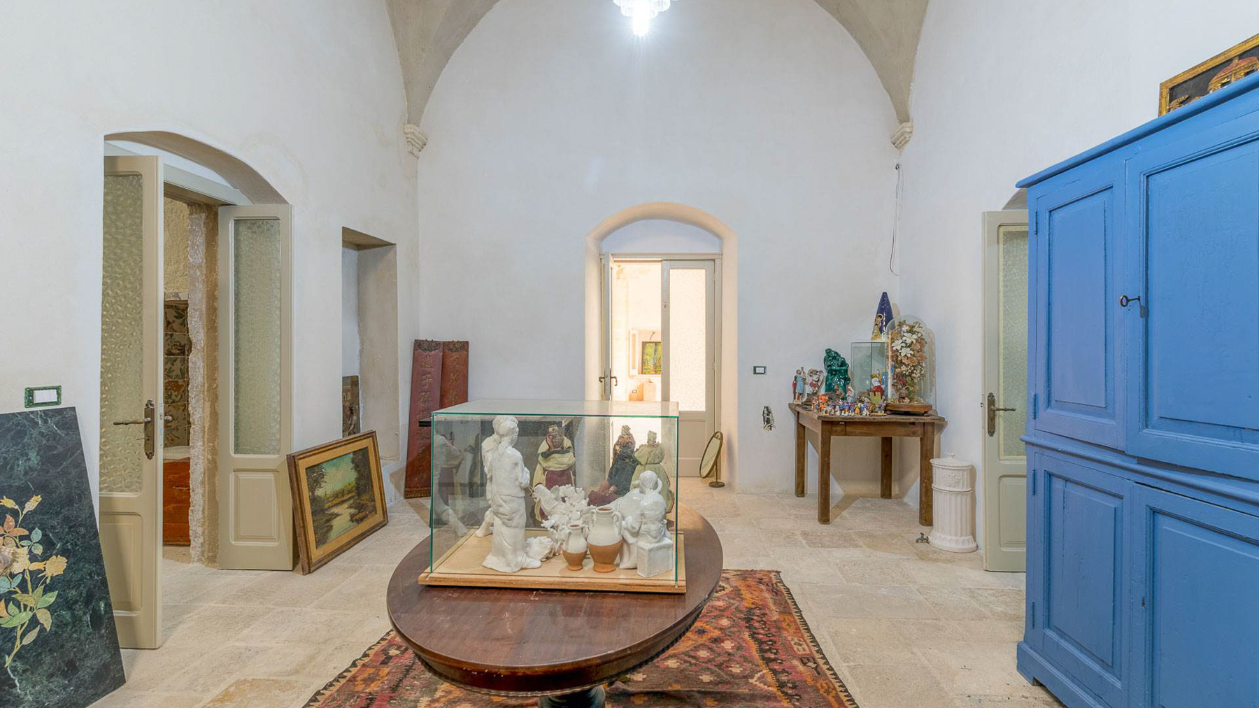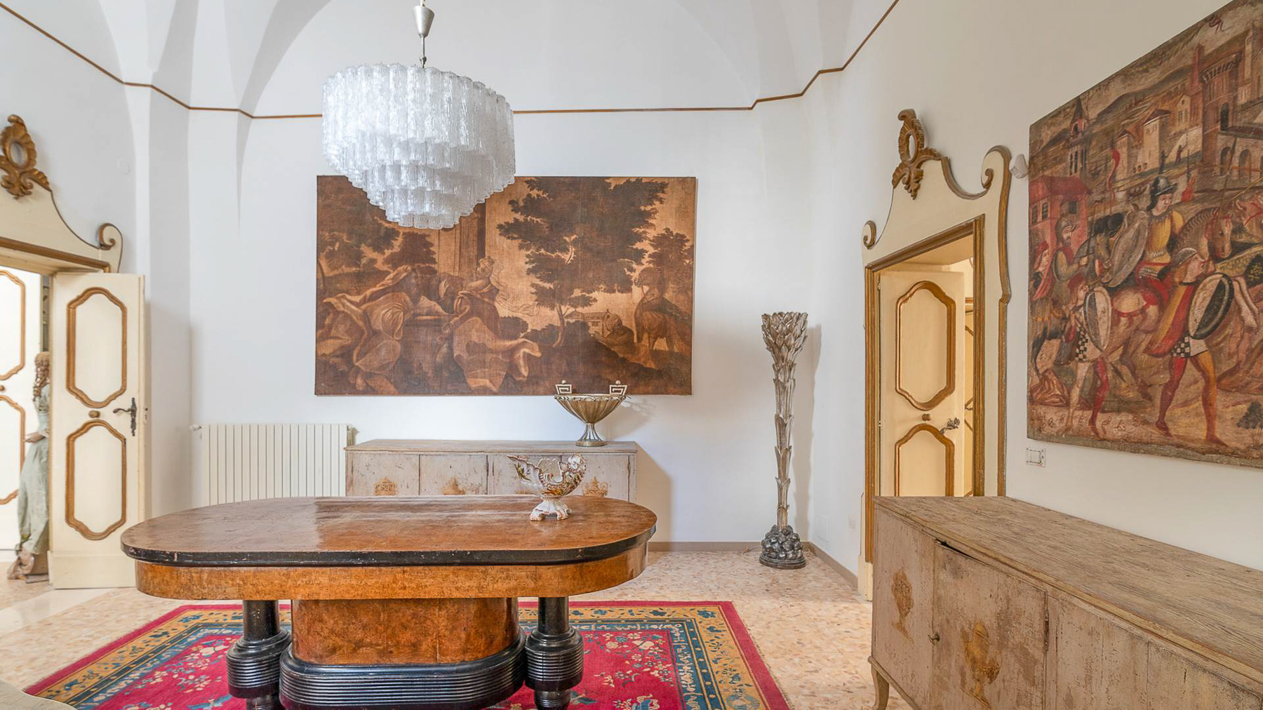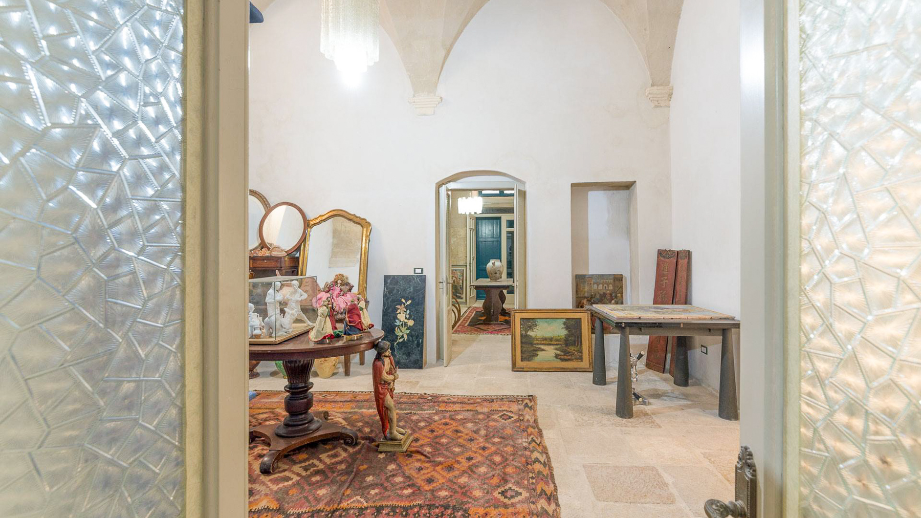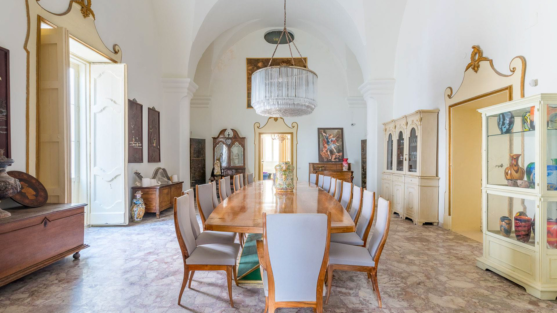 Enveloped in an aura of timeless elegance, this exquisite property unveils a sanctuary of sophisticated design and artistic charm. Bathed in natural light, the grand room invites you to a world where history and luxury blend seamlessly, as French doors open to reveal the vibrant heart of Grottaglie, Taranto. Spanning an impressive 685 square meters, this majestic residence boasts 17 meticulously designed rooms and 5 opulent bathrooms, offering a palatial living experience. The classic interior features colorful armchairs arranged in a welcoming circle, a grand piano as a centerpiece, and a wooden cabinet displaying treasured collections. Ornate moldings, a chandelier, and strategically placed mirrors enhance the ambiance, while large windows frame the picturesque surroundings. The artistic decor, with paintings and sculptures, speaks to the home's unique character and refined taste. Living here is an immersion into a lifestyle of cultural richness and serene luxury. Picture yourself basking in the glow of the chandelier's light as you explore the room's vintage treasures. The spacious layout promises endless opportunities for hosting gatherings or enjoying quiet moments of reflection. This property is a masterpiece of residential architecture, a rare find that epitomizes the ultimate blend of classic sophistication and artistic allure. It stands as a beacon of luxury in the real estate market, offering an unparalleled living experience.