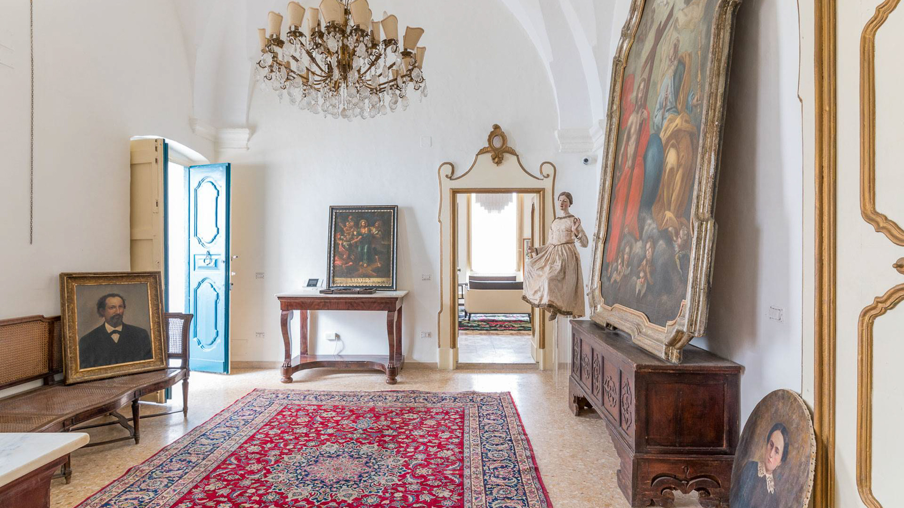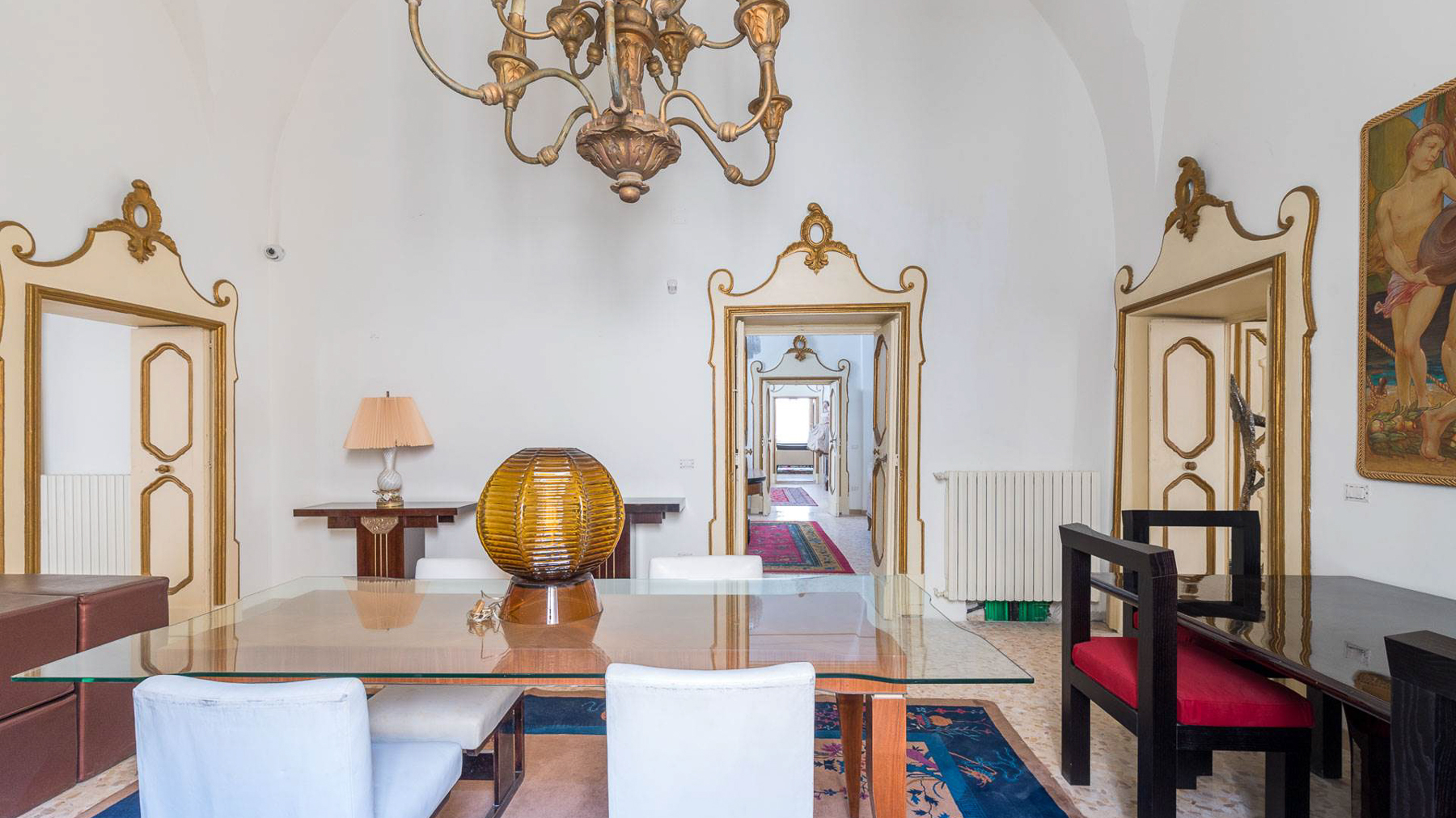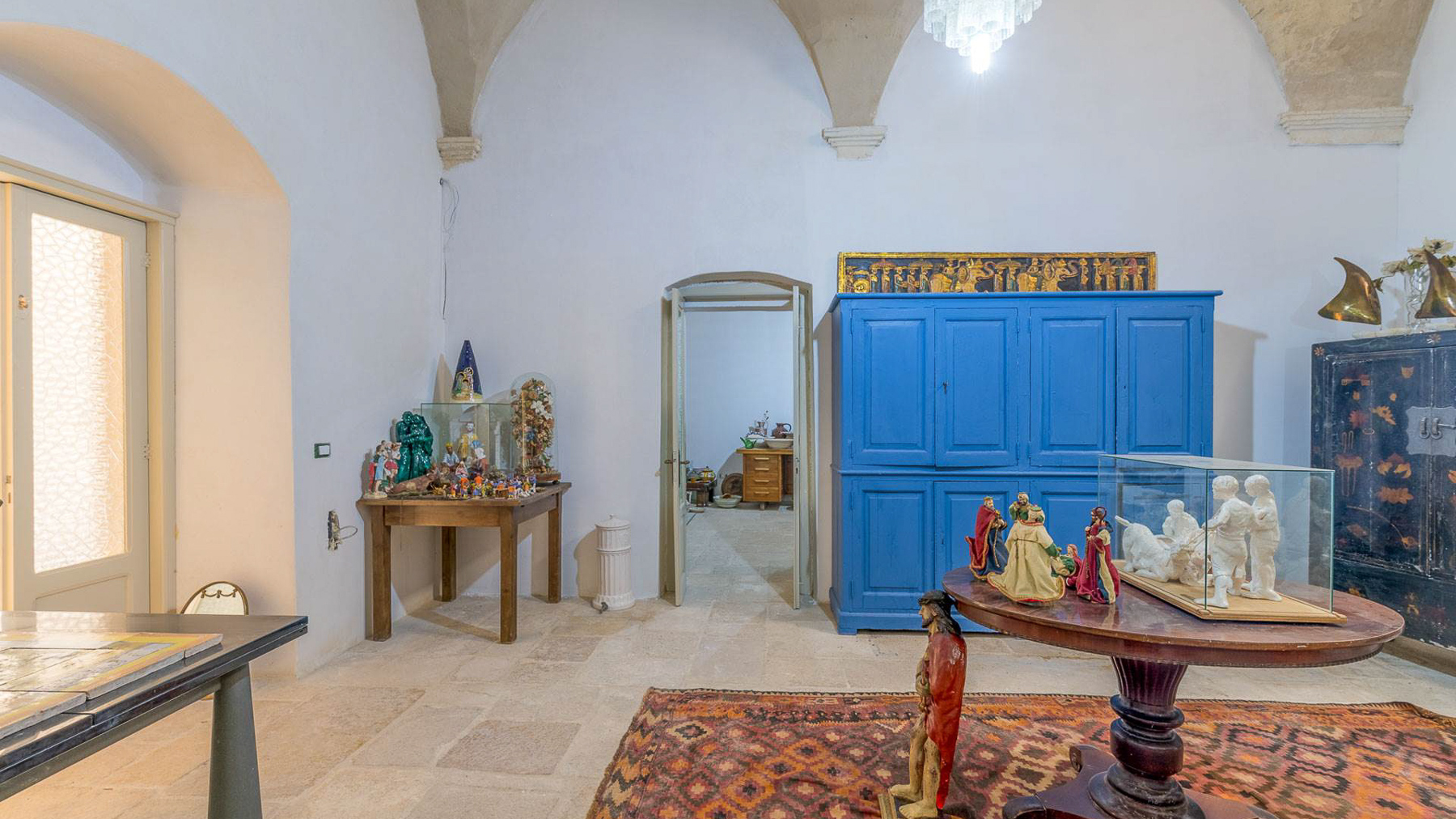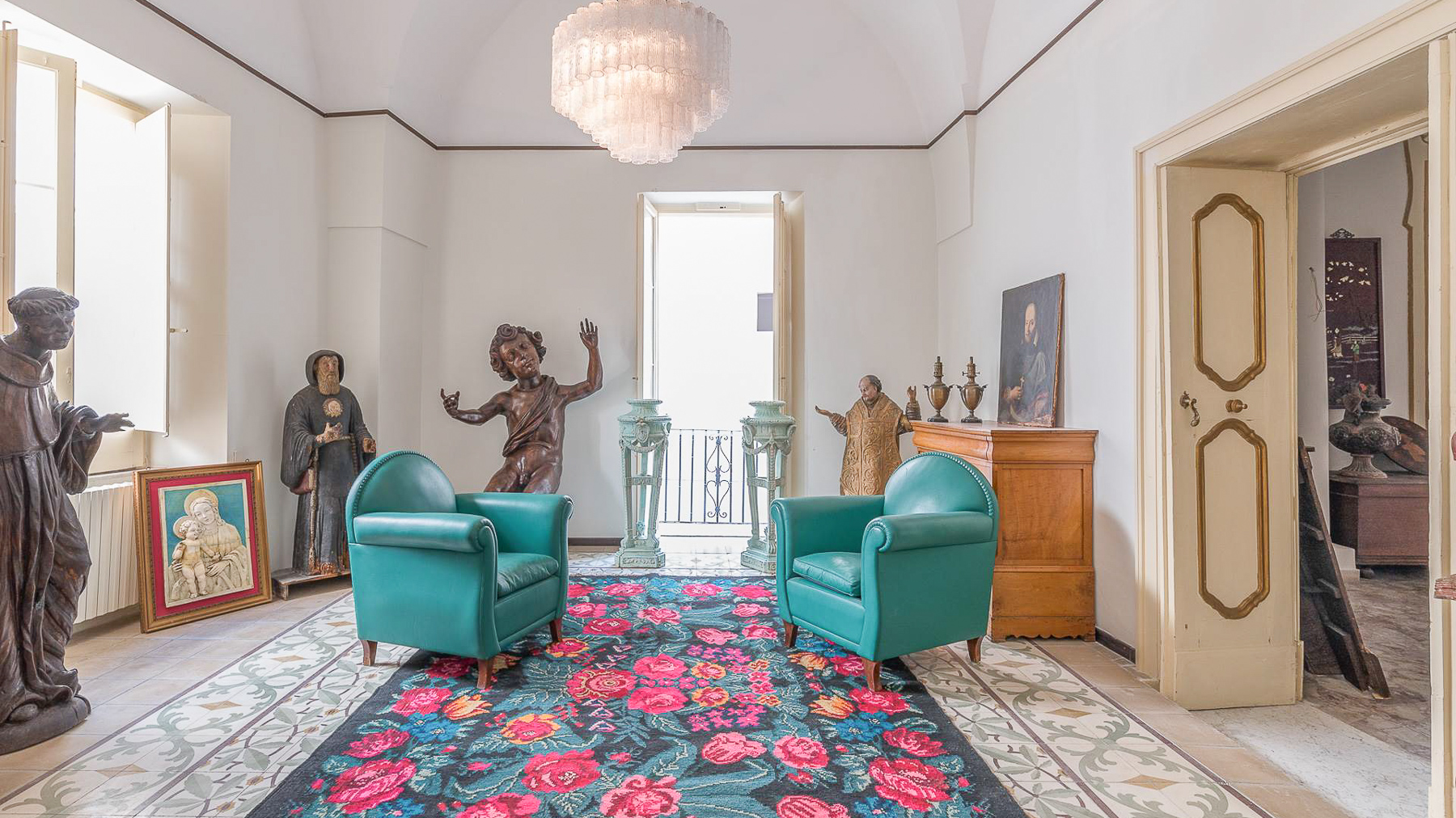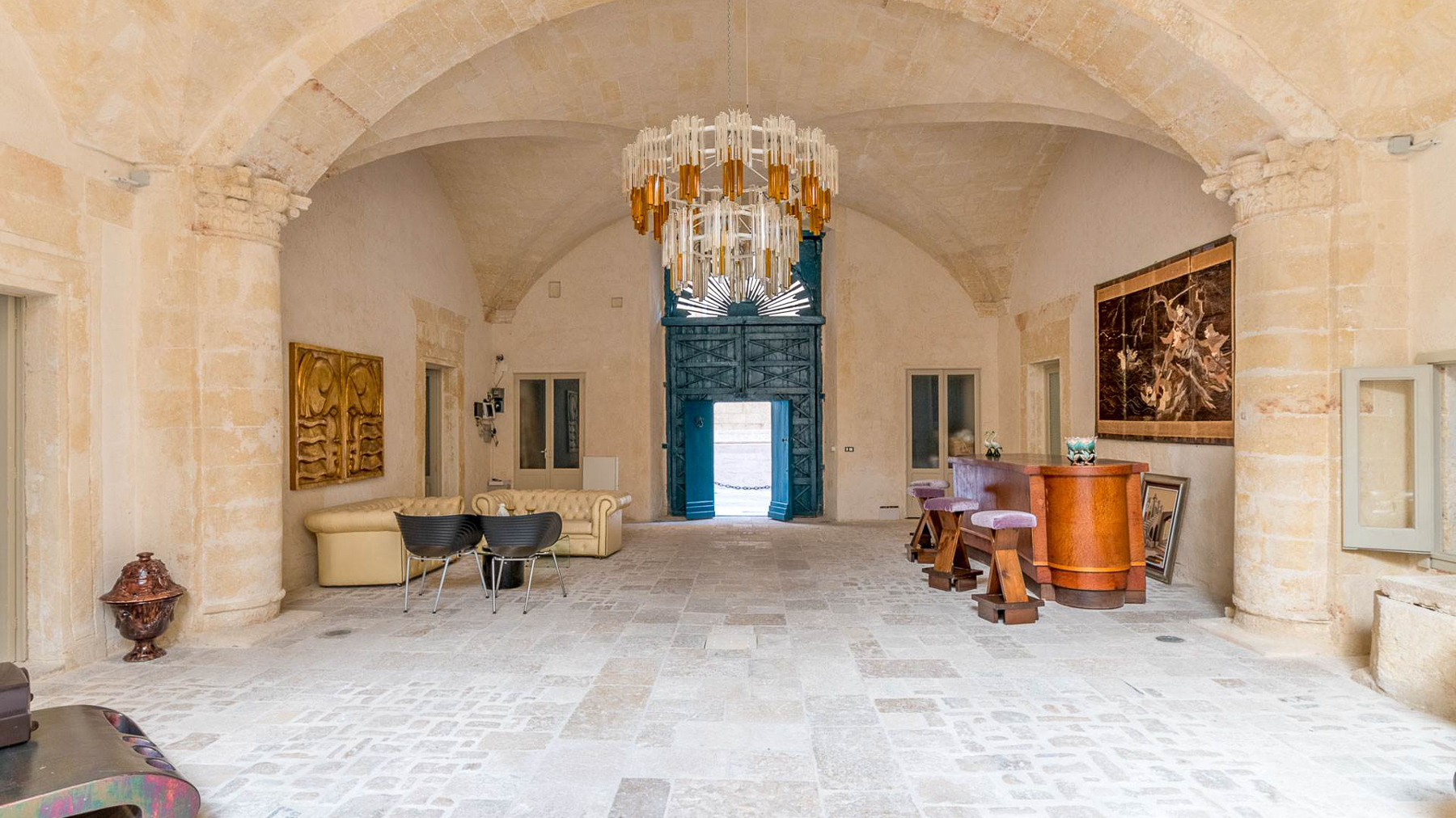 Enveloped in an aura of timeless elegance, this exquisite property unveils a sanctuary of sophisticated design and artistic charm. Bathed in natural light, the grand room invites you to a world where history and luxury blend seamlessly, as French doors open to reveal the vibrant heart of Grottaglie, Taranto. Spanning an impressive 685 square meters, this majestic residence boasts 17 meticulously designed rooms and 5 opulent bathrooms, offering a palatial living experience. The classic interior features colorful armchairs arranged in a welcoming circle, a grand piano as a centerpiece, and a wooden cabinet displaying treasured collections. Ornate moldings, a chandelier, and strategically placed mirrors enhance the ambiance, while large windows frame the picturesque surroundings. The artistic decor, with paintings and sculptures, speaks to the home's unique character and refined taste. Living here is an immersion into a lifestyle of cultural richness and serene luxury. Picture yourself basking in the glow of the chandelier's light as you explore the room's vintage treasures. The spacious layout promises endless opportunities for hosting gatherings or enjoying quiet moments of reflection. This property is a masterpiece of residential architecture, a rare find that epitomizes the ultimate blend of classic sophistication and artistic allure. It stands as a beacon of luxury in the real estate market, offering an unparalleled living experience.