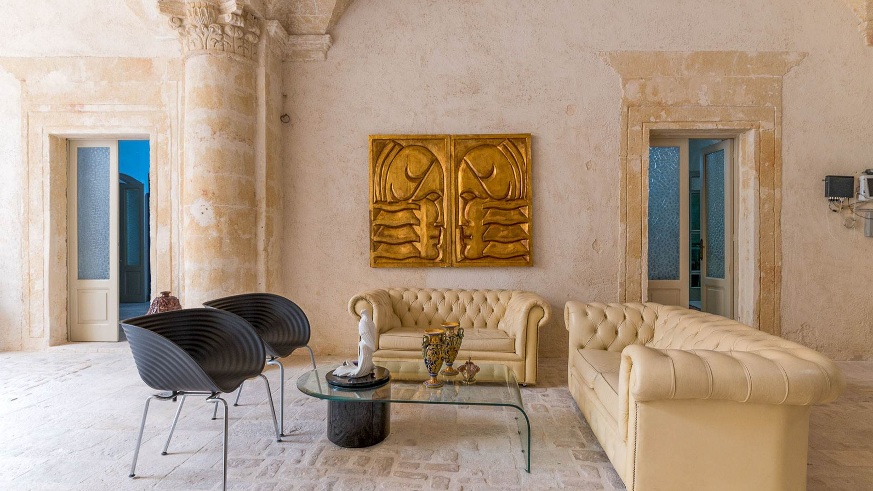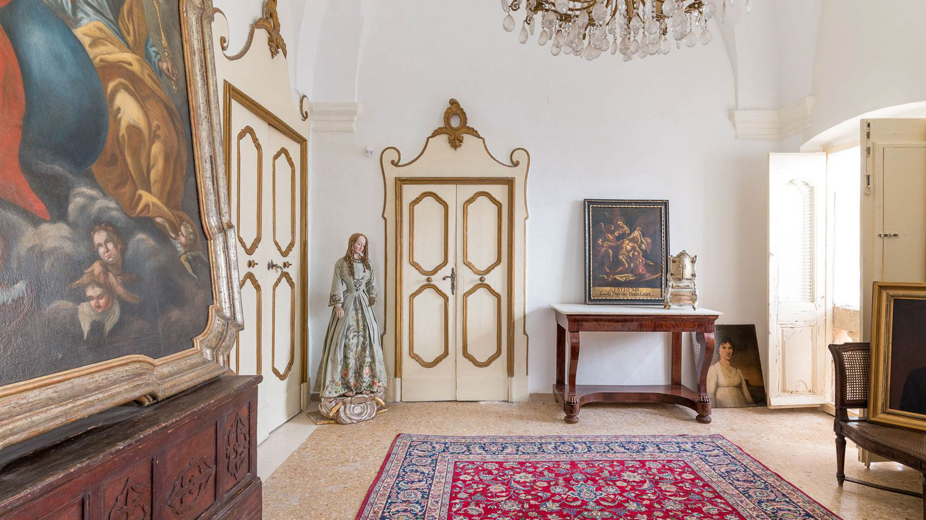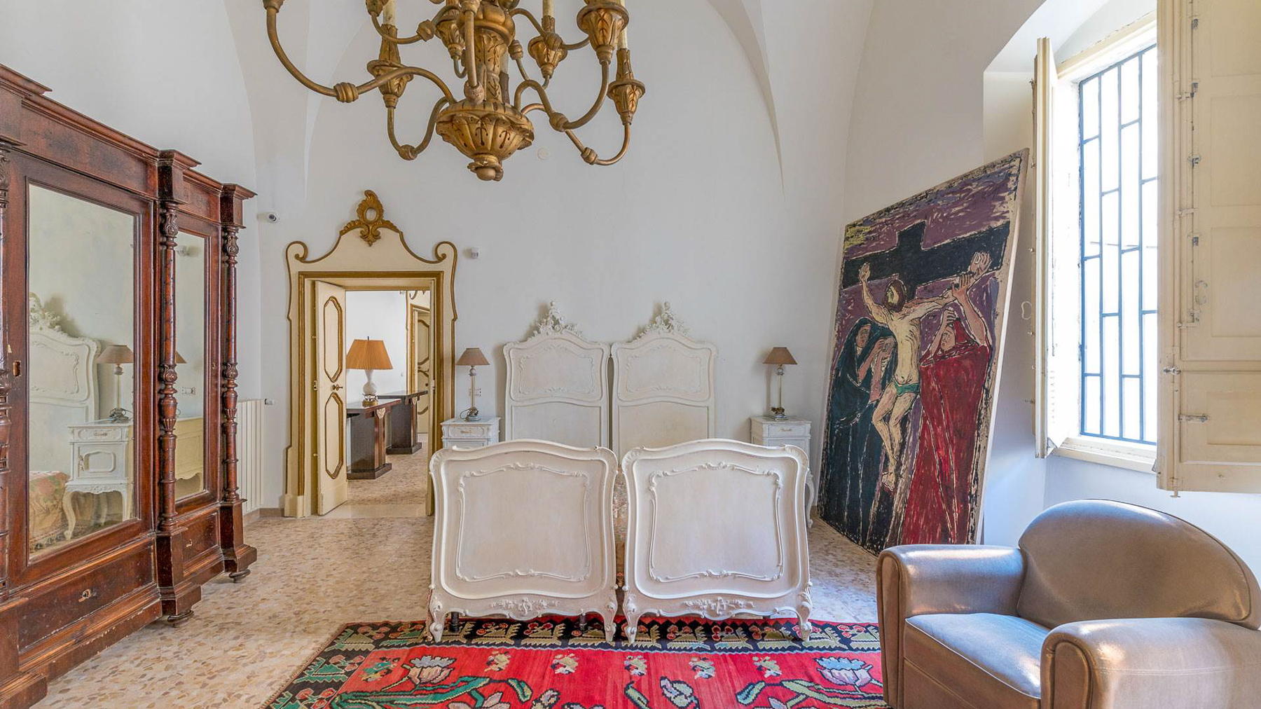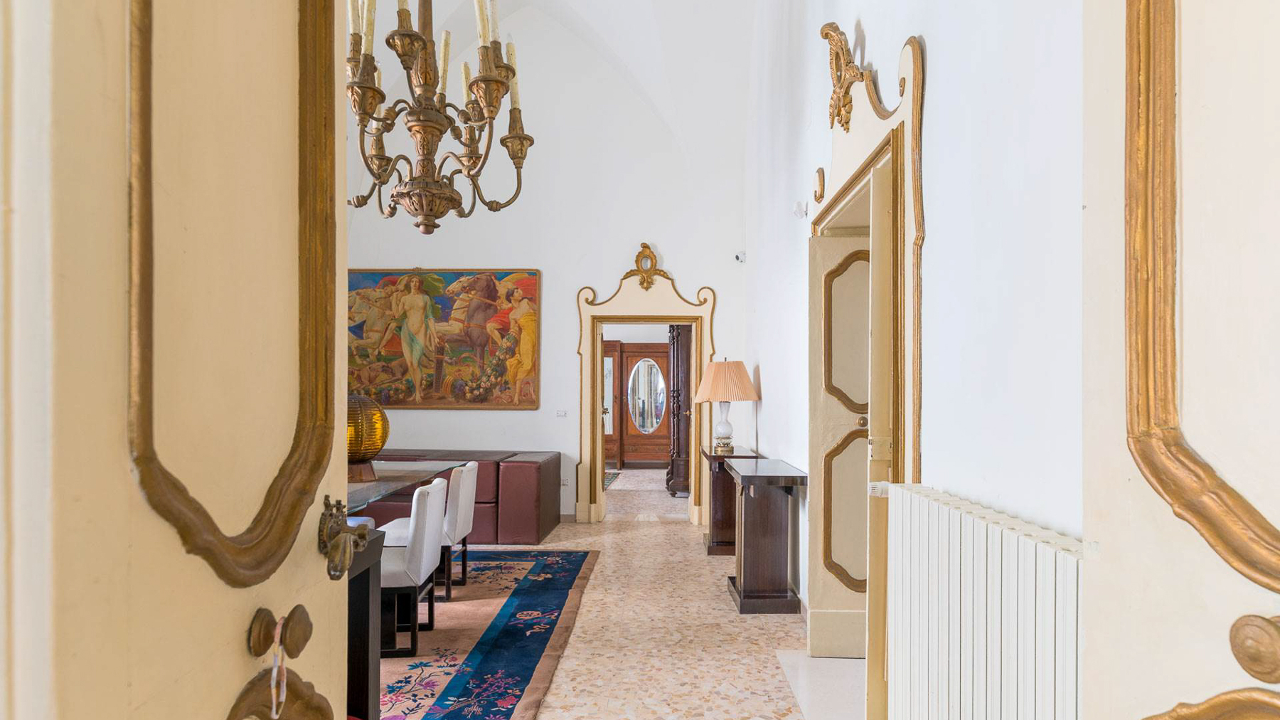Enveloped in an aura of timeless elegance, this exquisite property unveils a sanctuary of sophisticated design and artistic charm. Bathed in natural light, the grand room invites you to a world where history and luxury blend seamlessly, as French doors open to reveal the vibrant heart of Grottaglie, Taranto. Spanning an impressive 685 square meters, this majestic residence boasts 17 meticulously designed rooms and 5 opulent bathrooms, offering a palatial living experience. The classic interior features colorful armchairs arranged in a welcoming circle, a grand piano as a centerpiece, and a wooden cabinet displaying treasured collections. Ornate moldings, a chandelier, and strategically placed mirrors enhance the ambiance, while large windows frame the picturesque surroundings. The artistic decor, with paintings and sculptures, speaks to the home's unique character and refined taste. Living here is an immersion into a lifestyle of cultural richness and serene luxury. Picture yourself basking in the glow of the chandelier's light as you explore the room's vintage treasures. The spacious layout promises endless opportunities for hosting gatherings or enjoying quiet moments of reflection. This property is a masterpiece of residential architecture, a rare find that epitomizes the ultimate blend of classic sophistication and artistic allure. It stands as a beacon of luxury in the real estate market, offering an unparalleled living experience.