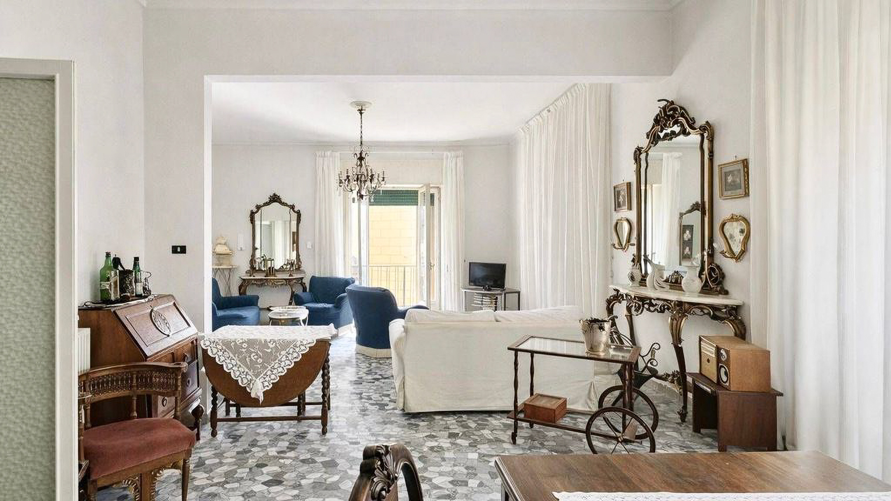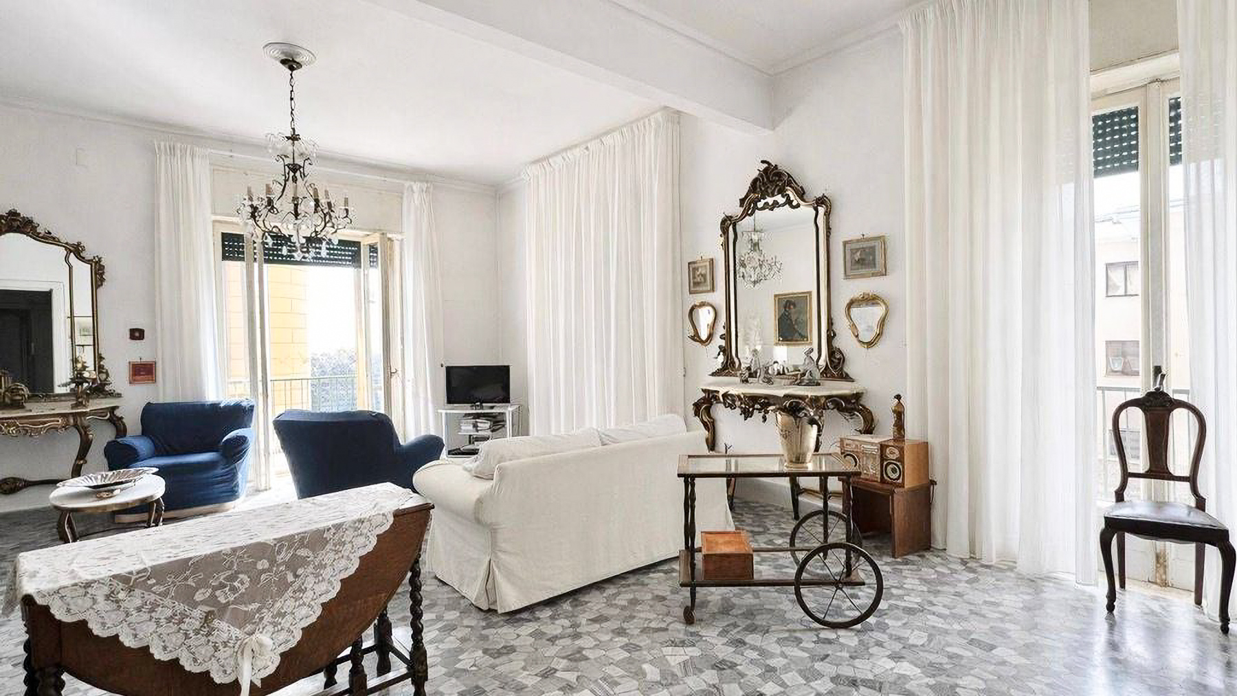 Tucked in the vibrant heart of Napoli, this exquisite residence offers a captivating blend of modern elegance and vintage charm. Bathed in natural light, the interiors create a serene sanctuary where the gentle whisper of the sea breeze and the soft rustle of sheer curtains set the mood for relaxation and luxury. Spanning an impressive 175 square meters, this home boasts five beautifully appointed rooms and two stylish bathrooms. The space is a harmonious fusion of light-colored walls and intricate tile patterns, with a chandelier casting a warm glow over the elegant furnishings. The airy living area features blue upholstered chairs and a white couch, inviting you to unwind. A vintage-style cabinet and a table adorned with a lace tablecloth add character and sophistication. The large windows, dressed with soft curtains, offer sweeping views and fill the rooms with sunlight. Situated in the bustling city of Napoli, this property offers a lifestyle akin to the refreshing embrace of the sea. Imagine waking up to the gentle light filtering through sheer curtains, casting a warm glow over a bedroom adorned with botanical artwork and a vibrant quilt. Afternoons can be spent with a book from the white bookshelf or enjoying the view from the small chair by the window. The seamless blend of classic and contemporary design elements creates a space that is not only inviting but also inspiring. This rare gem of a residence embodies the essence of luxury living in Napoli, where classic elegance meets modern comfort. An exclusive opportunity to own a piece of paradise in the heart of a dynamic city, this property is a testament to timeless beauty and refined living.