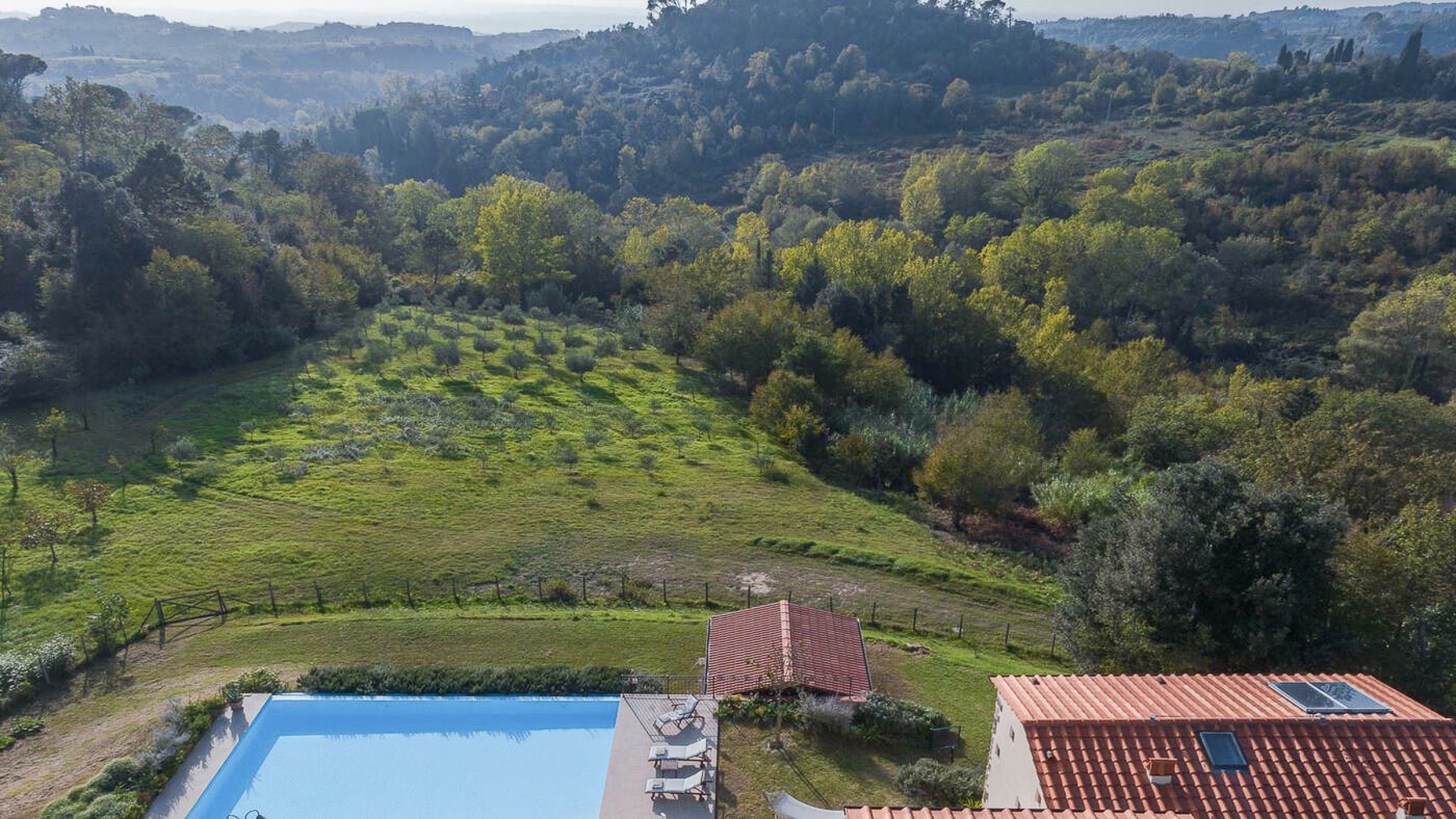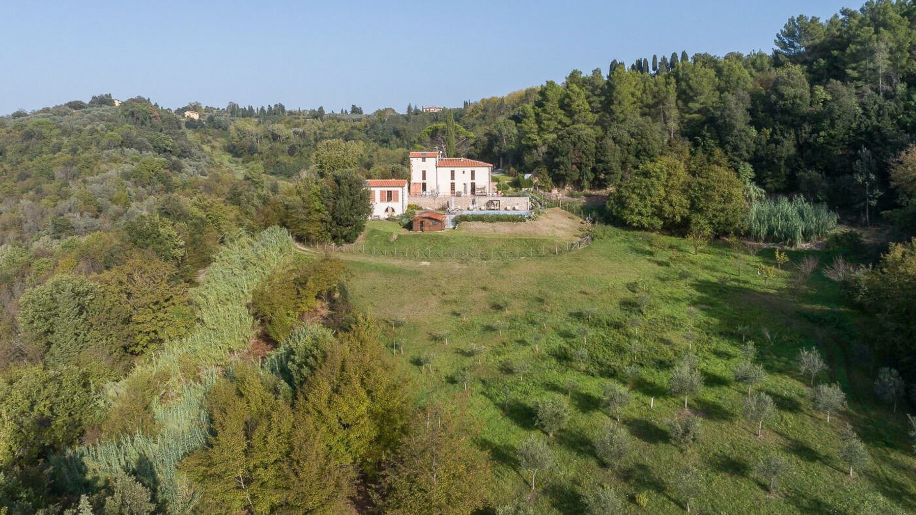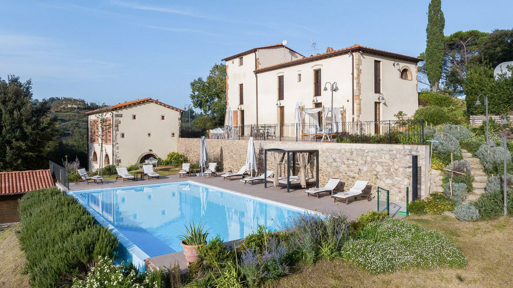 Perched amidst the serene Pisan hills, this exquisite Tuscan farmhouse offers a sanctuary of elegance and modern luxury. The gentle rustle of olive groves, the warmth of the sun, and the cool, inviting breeze create a sensory tapestry that encapsulates the essence of Italian countryside living. Spanning 450 square meters, this property seamlessly blends historic charm with contemporary comforts. Featuring 12 rooms and 7 bathrooms, every corner of this farmhouse exudes sophistication. The main building, with its panoramic terrace overlooking a pristine infinity pool, invites moments of relaxation and awe. The expansive grounds, dotted with olive trees, provide a sense of privacy and tranquility, while modern amenities such as heat pumps, solar panels, and an advanced security system ensure comfort and peace of mind. Imagine waking up to the soft glow of the Tuscan sunrise streaming through the windows, spending afternoons by the pool, and evenings enjoying alfresco dinners on the terrace as the sun sets over the rolling hills. This residence is not just a home; it’s a lifestyle experience that celebrates the beauty of the Italian countryside. This farmhouse is a quintessential blend of timeless charm and modern conveniences—a rare opportunity to own a piece of Tuscan paradise.