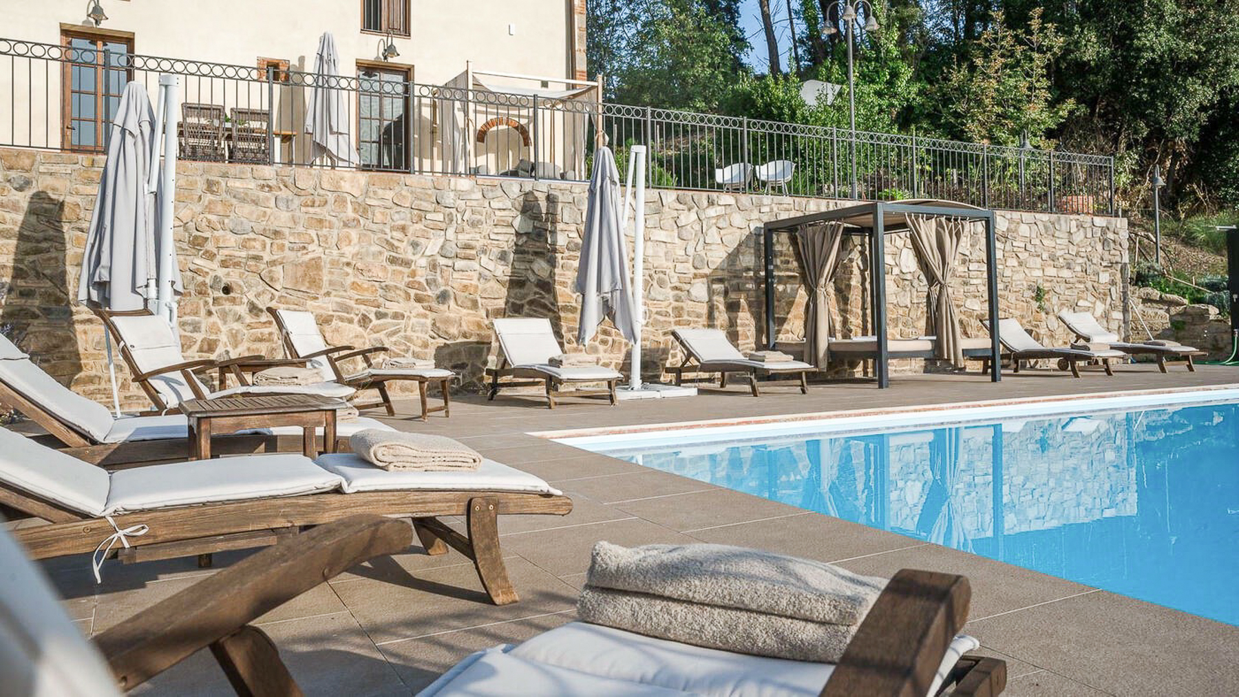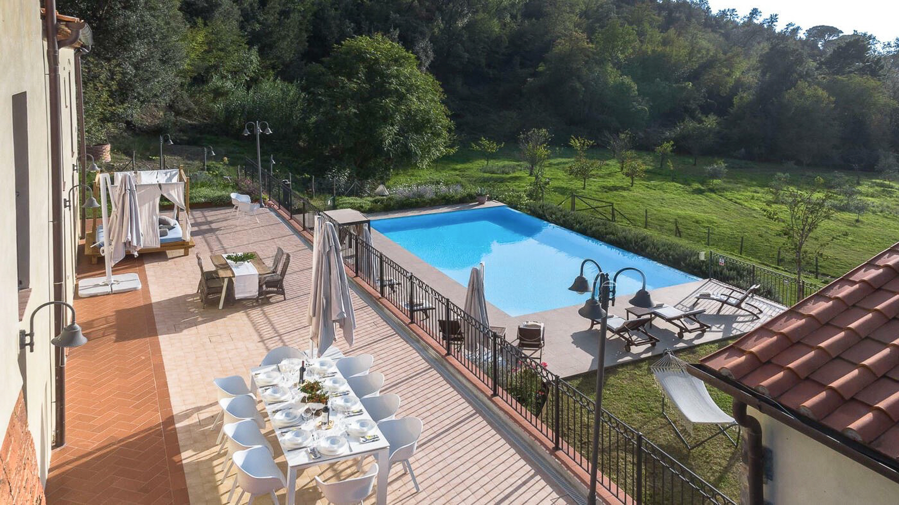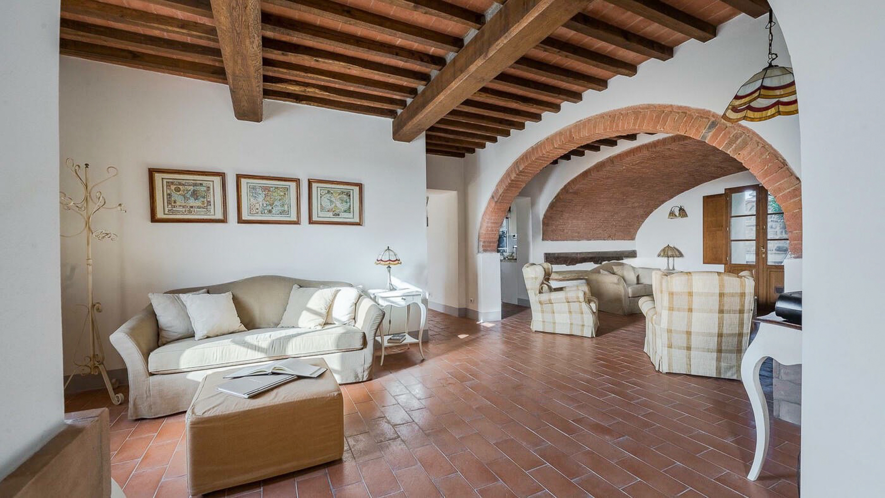 Perched amidst the serene Pisan hills, this exquisite Tuscan farmhouse offers a sanctuary of elegance and modern luxury. The gentle rustle of olive groves, the warmth of the sun, and the cool, inviting breeze create a sensory tapestry that encapsulates the essence of Italian countryside living. Spanning 450 square meters, this property seamlessly blends historic charm with contemporary comforts. Featuring 12 rooms and 7 bathrooms, every corner of this farmhouse exudes sophistication. The main building, with its panoramic terrace overlooking a pristine infinity pool, invites moments of relaxation and awe. The expansive grounds, dotted with olive trees, provide a sense of privacy and tranquility, while modern amenities such as heat pumps, solar panels, and an advanced security system ensure comfort and peace of mind. Imagine waking up to the soft glow of the Tuscan sunrise streaming through the windows, spending afternoons by the pool, and evenings enjoying alfresco dinners on the terrace as the sun sets over the rolling hills. This residence is not just a home; it’s a lifestyle experience that celebrates the beauty of the Italian countryside. This farmhouse is a quintessential blend of timeless charm and modern conveniences—a rare opportunity to own a piece of Tuscan paradise.