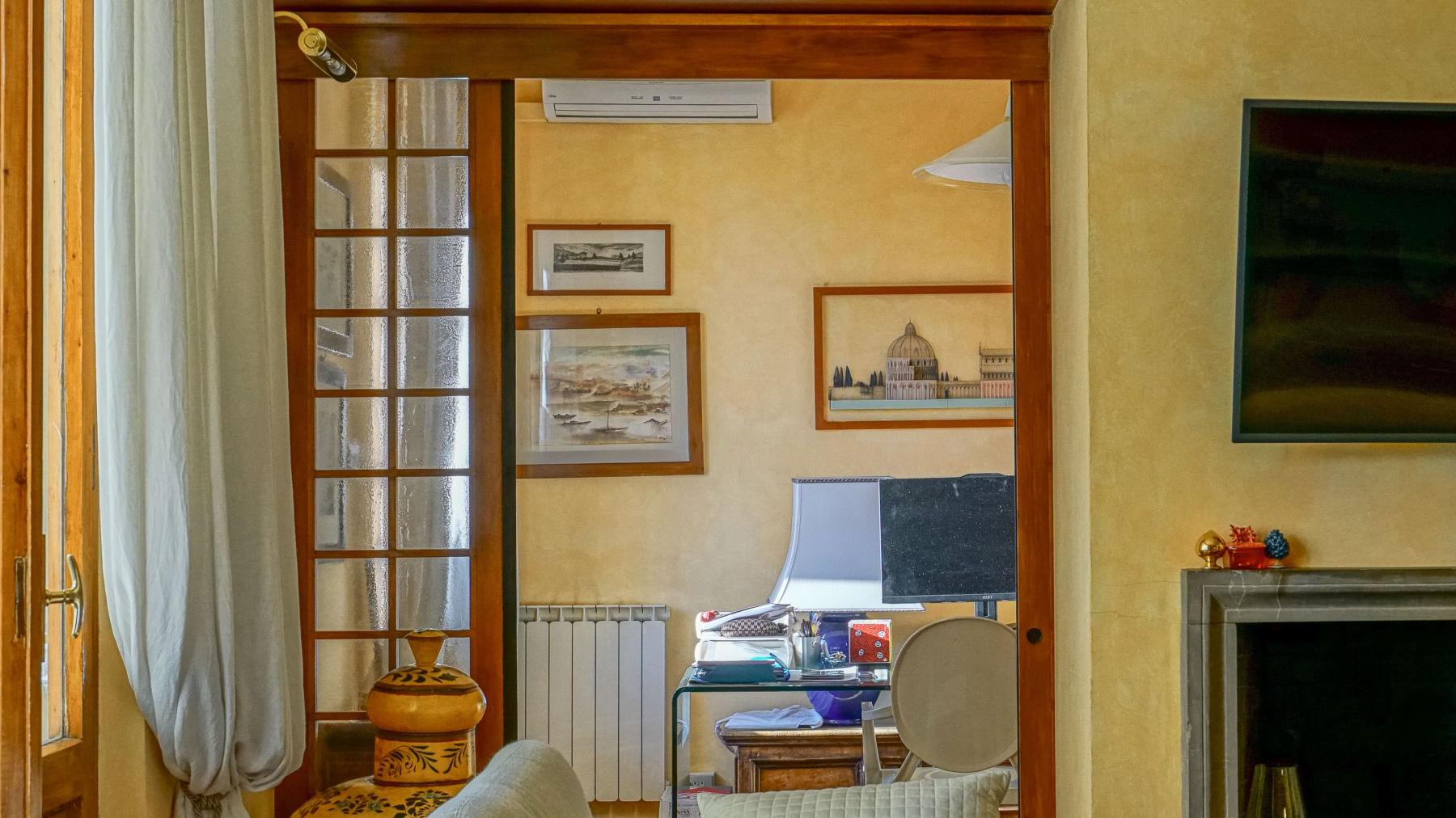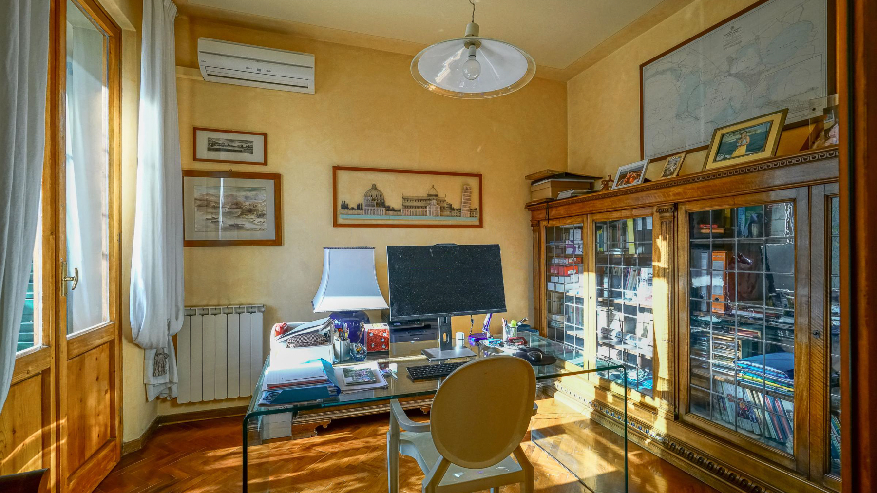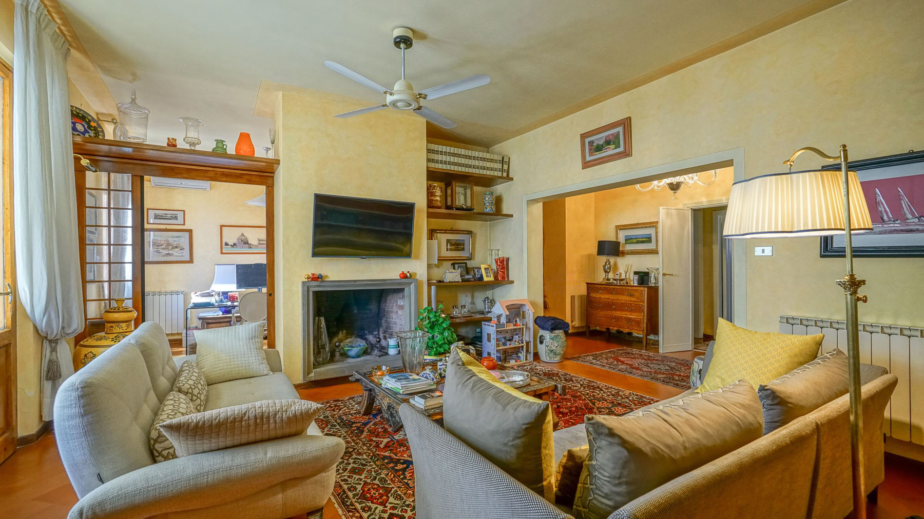 In the heart of Florence, where history whispers through every cobblestone, lies a sanctuary of elegance and warmth. Bathed in natural light from the expansive windows, this exquisite residence invites you to experience the perfect blend of sophistication and comfort. As you step inside, the inviting atmosphere wraps around you, enhanced by the soft glow of ambient lighting and the subtle scent of fresh blooms. Spanning an impressive 185 square meters, this luxurious home features seven meticulously designed rooms and three stylish bathrooms. The cozy living room beckons with plush couches and a stunning tiled floor, while the extensive bookshelf serves as a backdrop for your literary adventures. A terrace offers a serene escape, perfect for enjoying morning coffee or an evening glass of wine. Situated in the vibrant city of Florence, this property combines urban living with a touch of tranquility. Imagine awakening each day to the gentle hum of the city, then retreating to your personal oasis. Indulge in leisurely afternoons in the living room, surrounded by the warmth of intricate decor and the soft patter of raindrops on the windows. Every corner of this home is a testament to refined taste, offering not just a place to live, but a lifestyle to cherish. This residence is a masterpiece of modern luxury intertwined with classic charm, a rare treasure in Florence's prestigious real estate market. It is an invitation to live a life of unparalleled elegance and comfort, where every moment becomes a cherished memory.