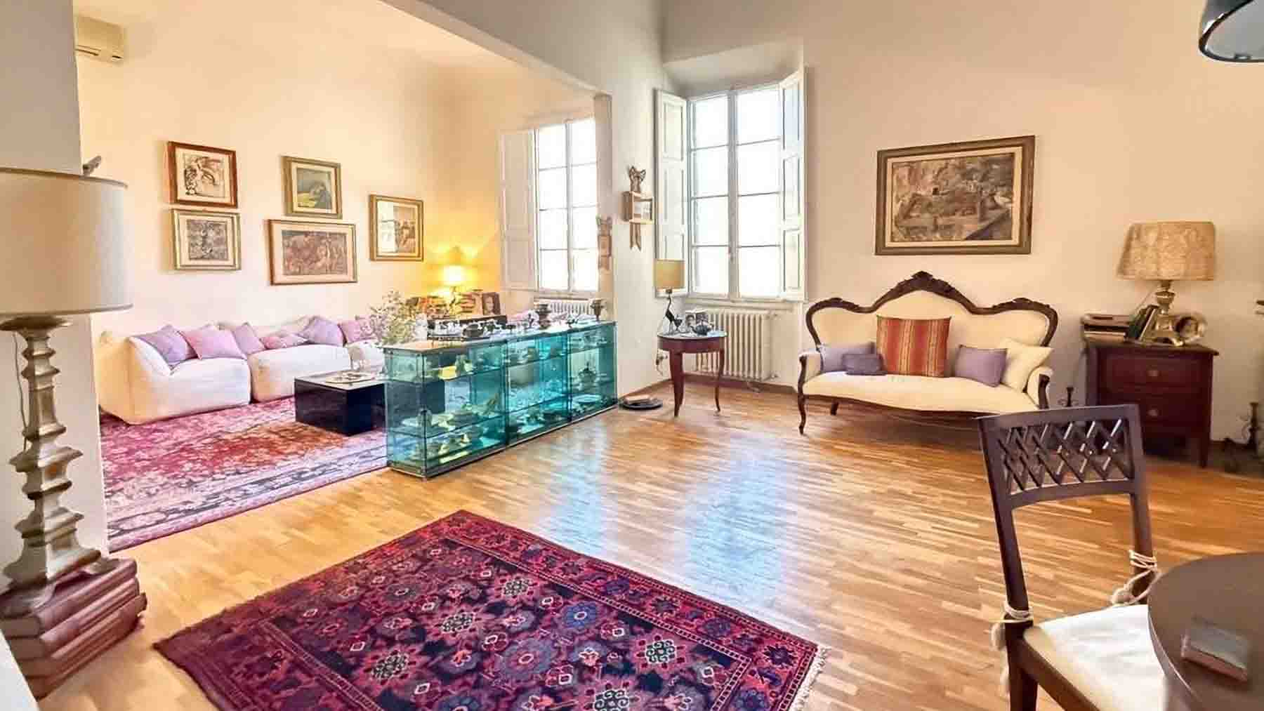 In the vibrant heart of Firenze, this exquisite residence invites you to experience luxury living at its finest. Imagine stepping into a luminous haven, where the warm glow of natural light dances through expansive windows, illuminating every corner of this elegantly appointed space. The gentle hum of city life creates a delightful backdrop, while the serene interiors offer a perfect escape. Spanning 162 square meters, this sophisticated apartment boasts five spacious rooms and two meticulously designed bathrooms. The living room, with its plush white sofas and chic decor, exudes both comfort and style. A striking black coffee table and a stunning glass display cabinet add a touch of modern elegance, while the large, patterned rug enhances the room's warmth and charm. The open layout seamlessly connects to a dining area, perfect for hosting intimate gatherings. Nestled in the heart of the city, this property captures the essence of urban living with a sophisticated twist. Envision a lifestyle where each day begins with the soft morning light streaming through oversized windows, as you sip your coffee in a space that feels both cozy and grand. The perfect fusion of modern and classic elements creates an ambiance of timeless elegance, allowing you to unwind in your own private sanctuary. The lively city of Firenze, with its rich culture and history, becomes your playground, offering endless opportunities for exploration and delight. This property is a rare treasure in the luxury real estate market, offering an unparalleled blend of classic charm and contemporary convenience. Embrace the opportunity to own a piece of Firenze’s elegance, where every moment is a celebration of refined living.
