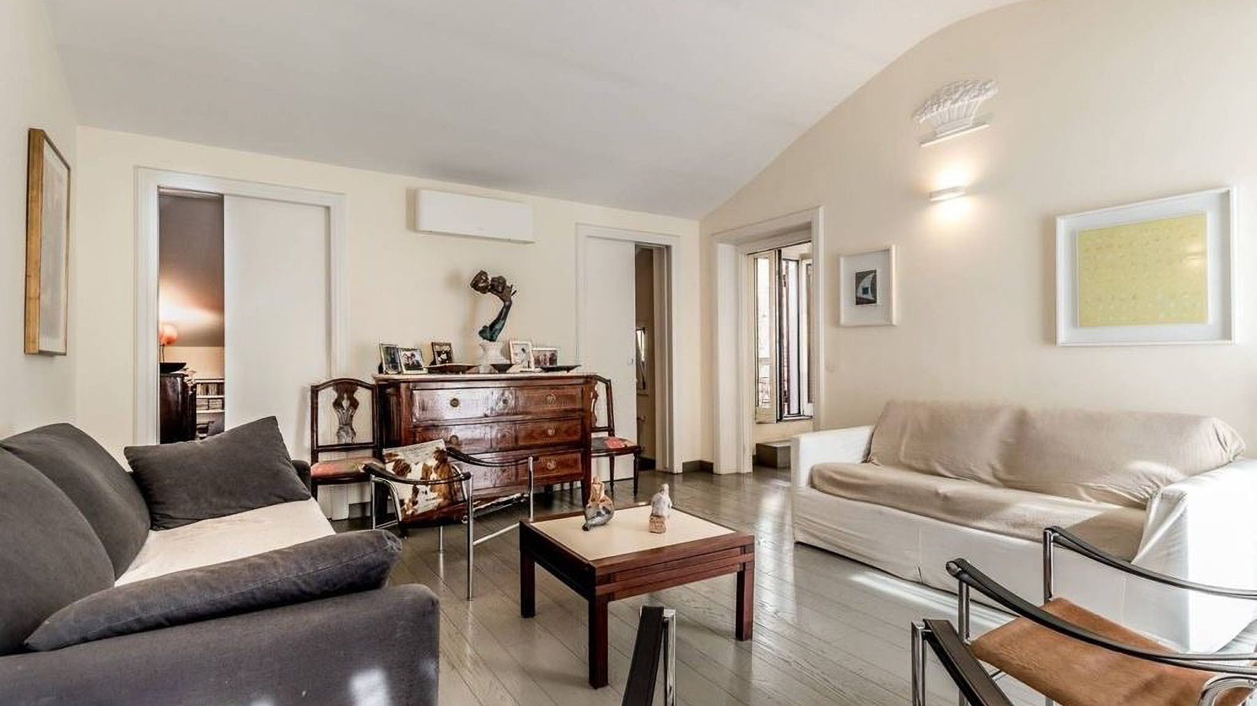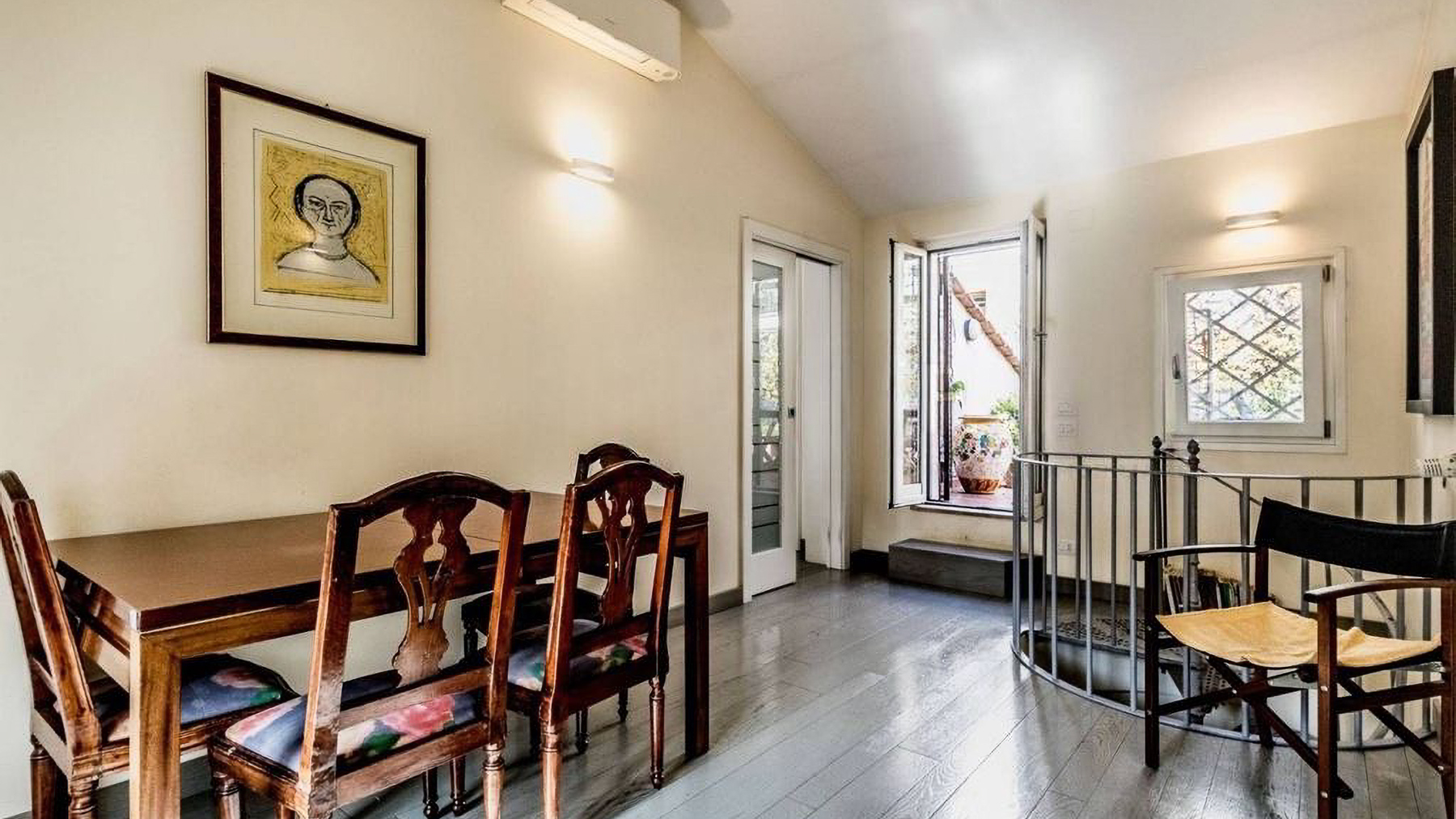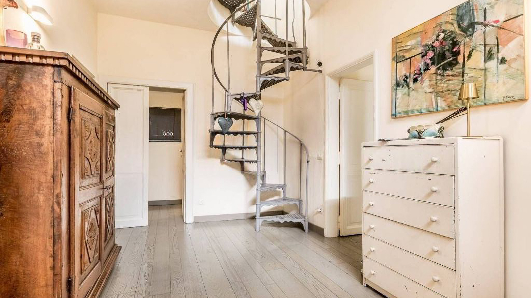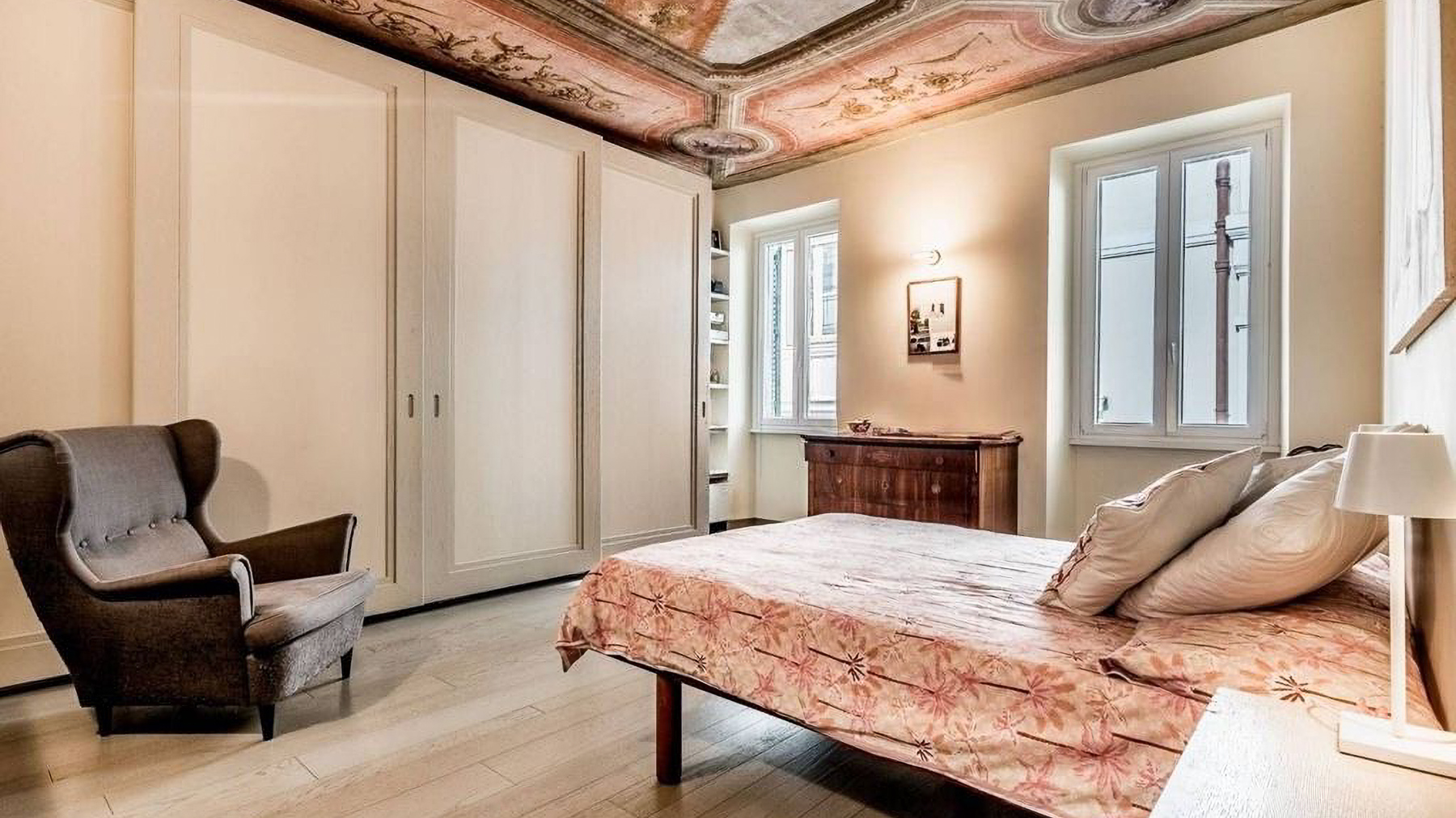 Positioned in the heart of Rome’s historic center, this exquisite two-level penthouse offers an alluring blend of elegance and charm, just steps from the iconic Trevi Fountain. As you enter, you’re enveloped by the serene ambiance of a beautifully restored period building, where art and architecture converge into a sophisticated urban sanctuary. Spanning 203 square meters, this luxurious property seamlessly marries old-world charm with modern convenience. The first level features an inviting entryway, three elegant bedrooms, and two bathrooms adorned with exquisite original frescoes. Ascend the internal staircase to discover a cozy attic TV room, a fully-equipped kitchen, a study, an additional bedroom, and a service bathroom. The property boasts a delightful terrace that enhances the allure of alfresco dining, alongside a 20-square-meter exclusive terrace and a 10-square-meter panoramic solarium offering breathtaking views over Rome’s historic rooftops. Imagine mornings beginning with coffee on your sunlit terrace, while evenings unfold with the twinkling cityscape as your backdrop. The luxurious interiors provide a tranquil retreat, while the vibrant life of Rome awaits just outside, offering an ideal blend of excitement and serenity. This penthouse is not merely a home; it is a rare opportunity to own a piece of Roman splendor. An exquisite blend of historical charm and modern luxury, this residence is a testament to sophisticated living in one of the world’s most sought-after locations.