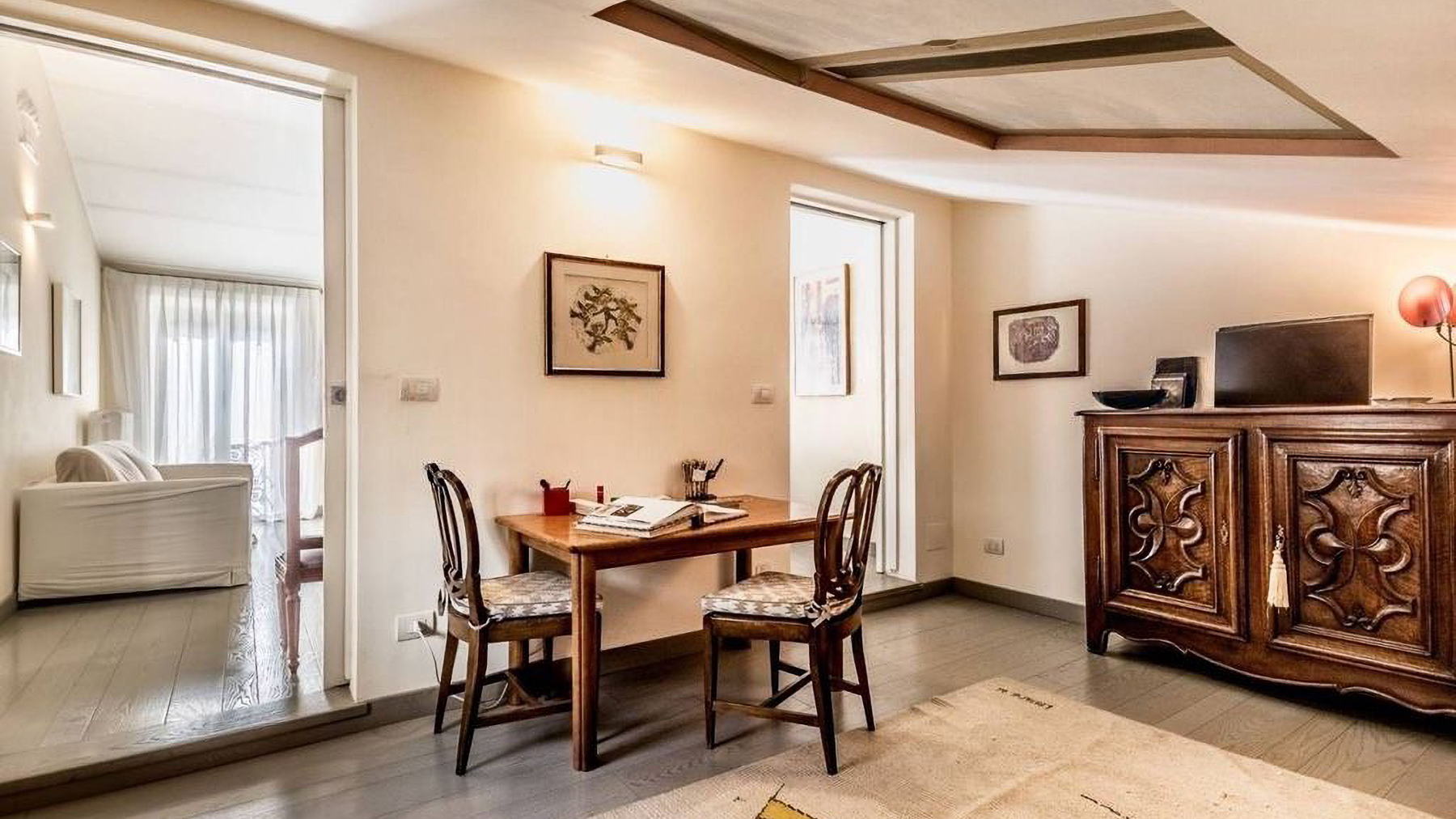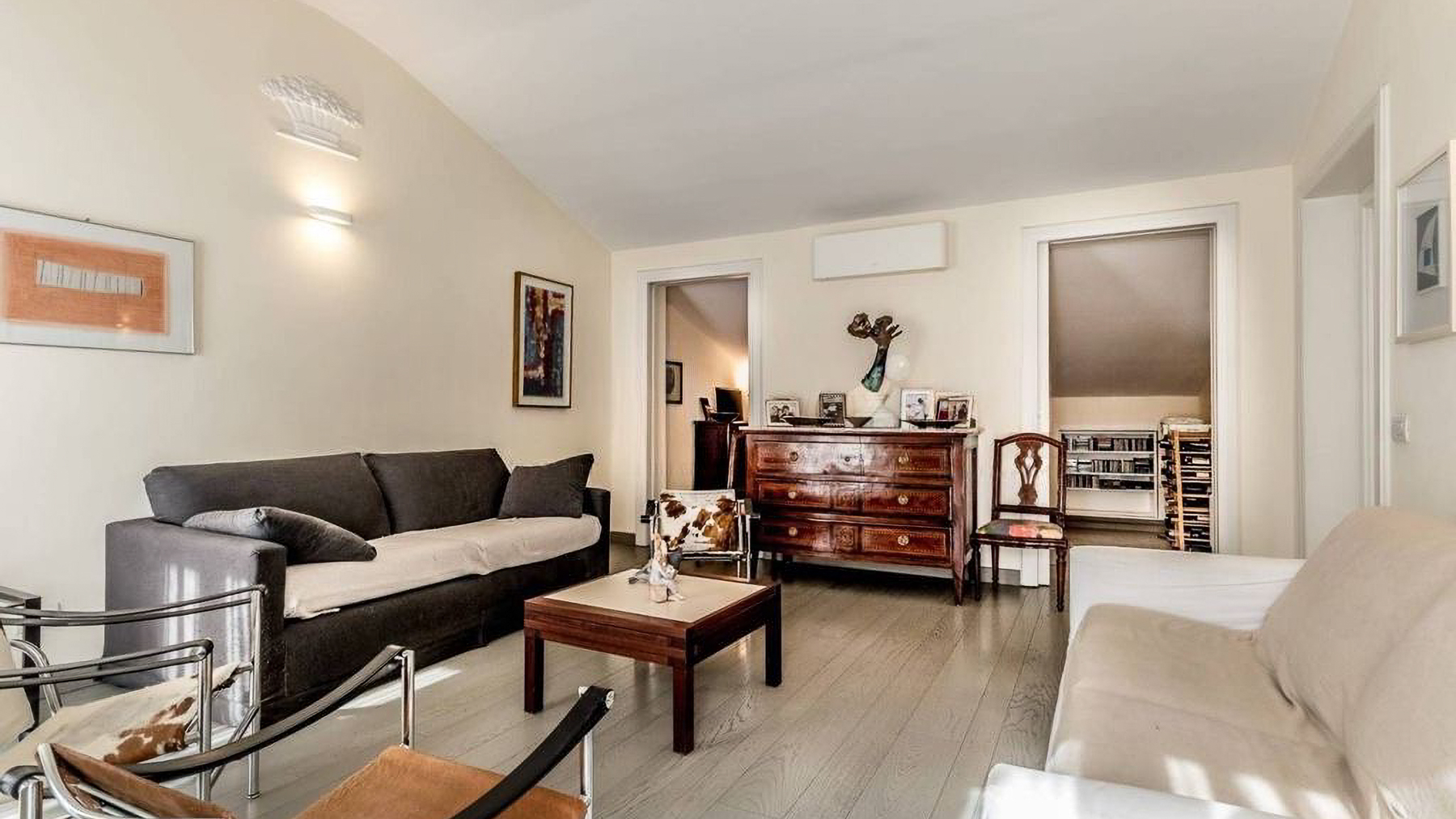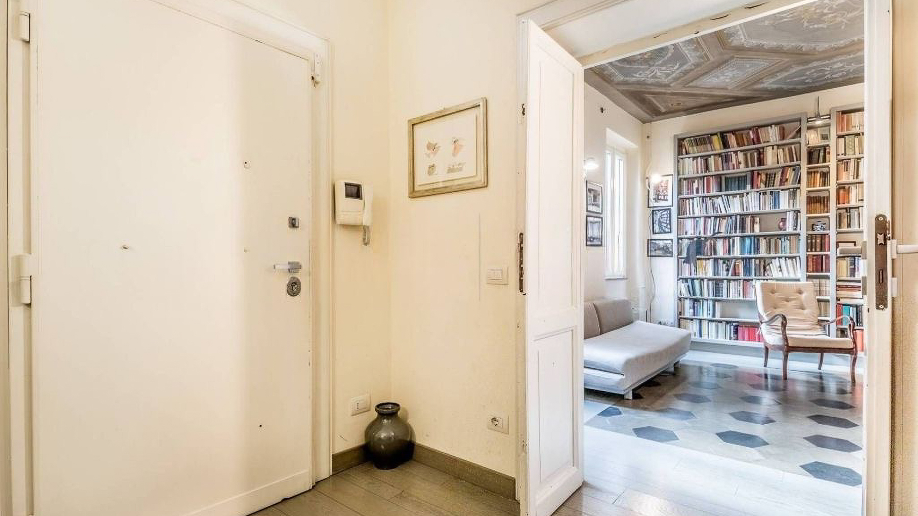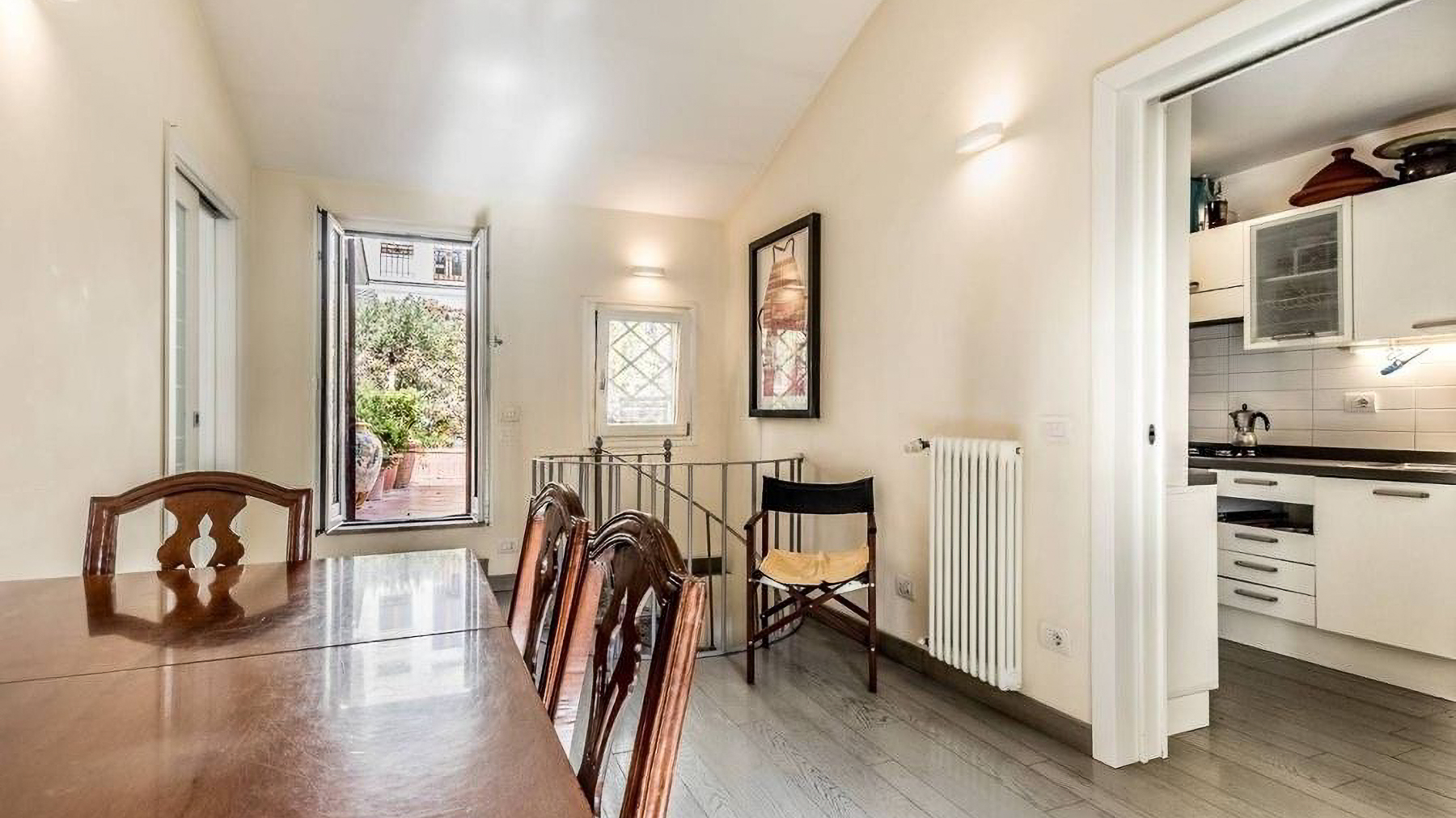 Positioned in the heart of Rome’s historic center, this exquisite two-level penthouse offers an alluring blend of elegance and charm, just steps from the iconic Trevi Fountain. As you enter, you’re enveloped by the serene ambiance of a beautifully restored period building, where art and architecture converge into a sophisticated urban sanctuary. Spanning 203 square meters, this luxurious property seamlessly marries old-world charm with modern convenience. The first level features an inviting entryway, three elegant bedrooms, and two bathrooms adorned with exquisite original frescoes. Ascend the internal staircase to discover a cozy attic TV room, a fully-equipped kitchen, a study, an additional bedroom, and a service bathroom. The property boasts a delightful terrace that enhances the allure of alfresco dining, alongside a 20-square-meter exclusive terrace and a 10-square-meter panoramic solarium offering breathtaking views over Rome’s historic rooftops. Imagine mornings beginning with coffee on your sunlit terrace, while evenings unfold with the twinkling cityscape as your backdrop. The luxurious interiors provide a tranquil retreat, while the vibrant life of Rome awaits just outside, offering an ideal blend of excitement and serenity. This penthouse is not merely a home; it is a rare opportunity to own a piece of Roman splendor. An exquisite blend of historical charm and modern luxury, this residence is a testament to sophisticated living in one of the world’s most sought-after locations.