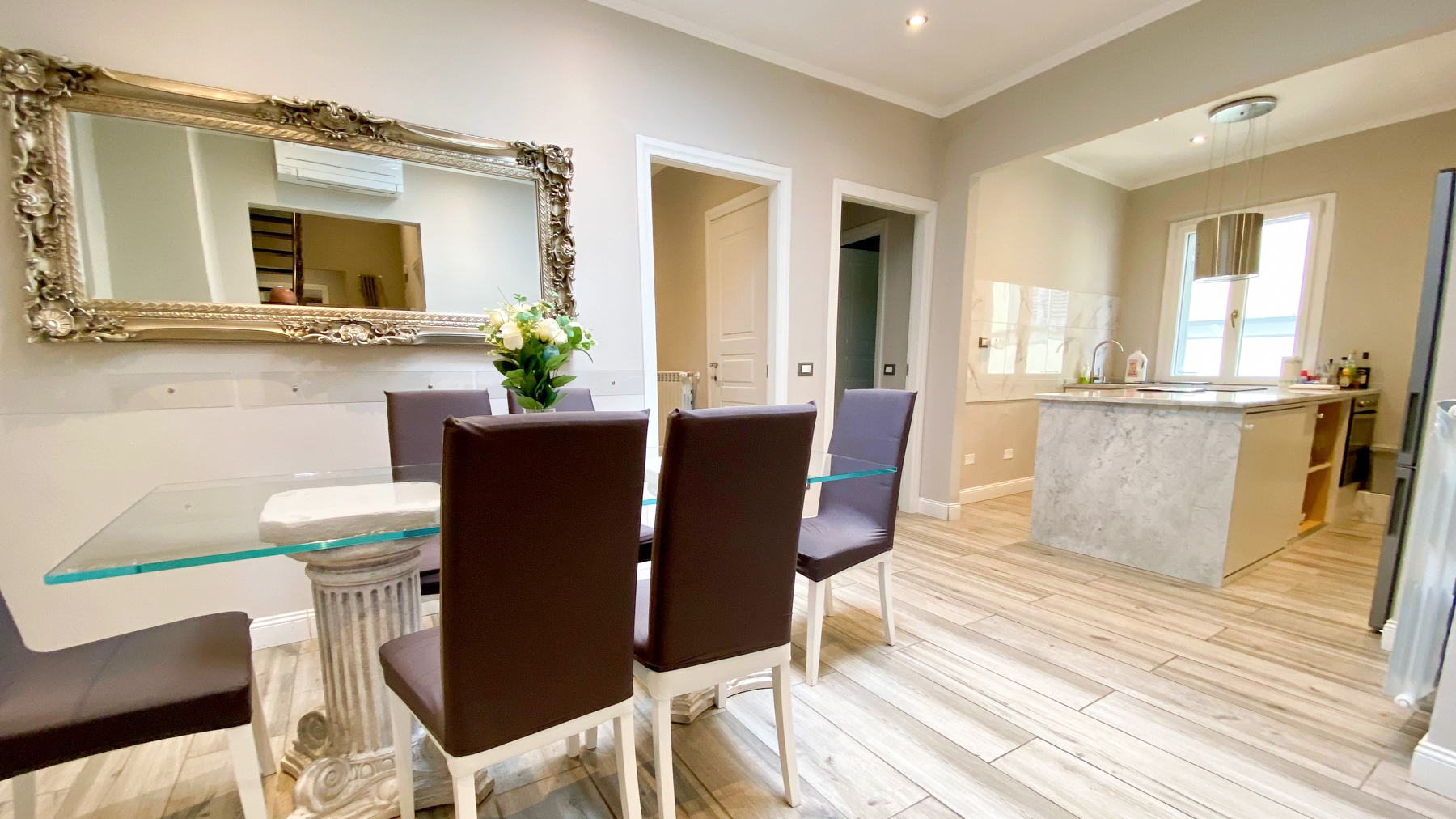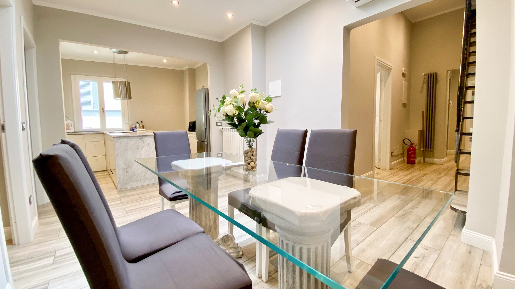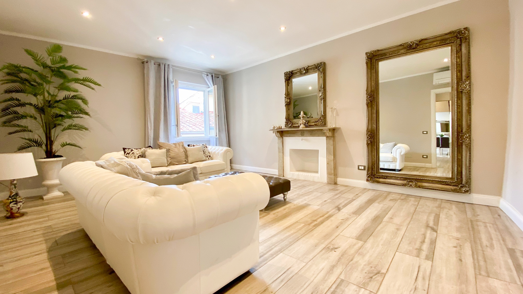 Immerse yourself in the heart of Florence, where this sophisticated residence exudes elegance and serenity. Bathed in natural light, the understated luxury of its interiors invites you to unwind, while the gentle rustle of leaves from the nearby garden whispers tranquility into your daily life. Spanning 130 square meters, this exquisite home boasts six rooms and three bathrooms, each space thoughtfully designed to reflect contemporary design and comfort. Within its walls, you'll find a modern living room with plush white tufted sofas, a sleek marble fireplace, and a state-of-the-art kitchen complete with a marble island and stainless steel appliances. The dining area, with its glass table, presents an ideal setting for both intimate and grand gatherings. Situated in the vibrant city of Florence, this property embodies the perfect urban lifestyle. Imagine the joy of sipping your morning coffee in a sunlit room, surrounded by elegant furnishings and the gentle hum of the city awakening around you. Each day offers the promise of new experiences, from exploring Florence's rich cultural tapestry to simply enjoying the peaceful ambiance of your refined abode. This residence is not just a home; it's a testament to the art of living well. A sanctuary of modern sophistication and timeless comfort, it stands as a rare jewel in the luxury real estate market, offering an unparalleled lifestyle in one of Italy's most cherished cities.