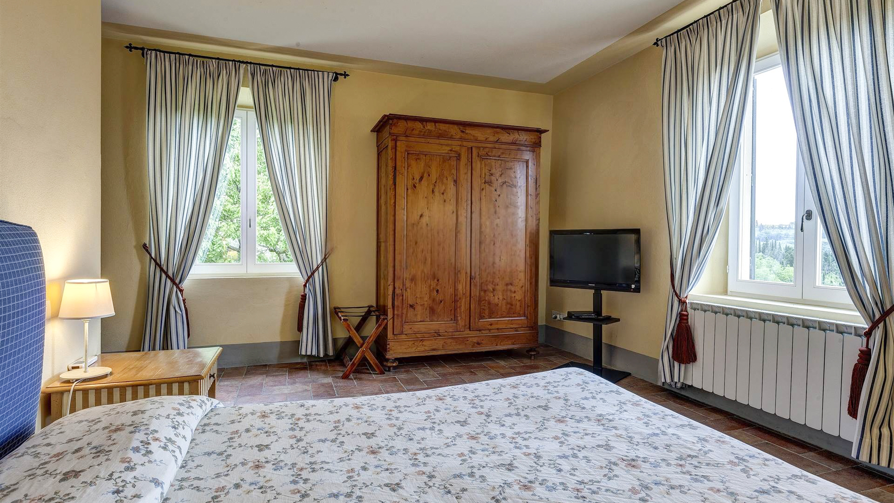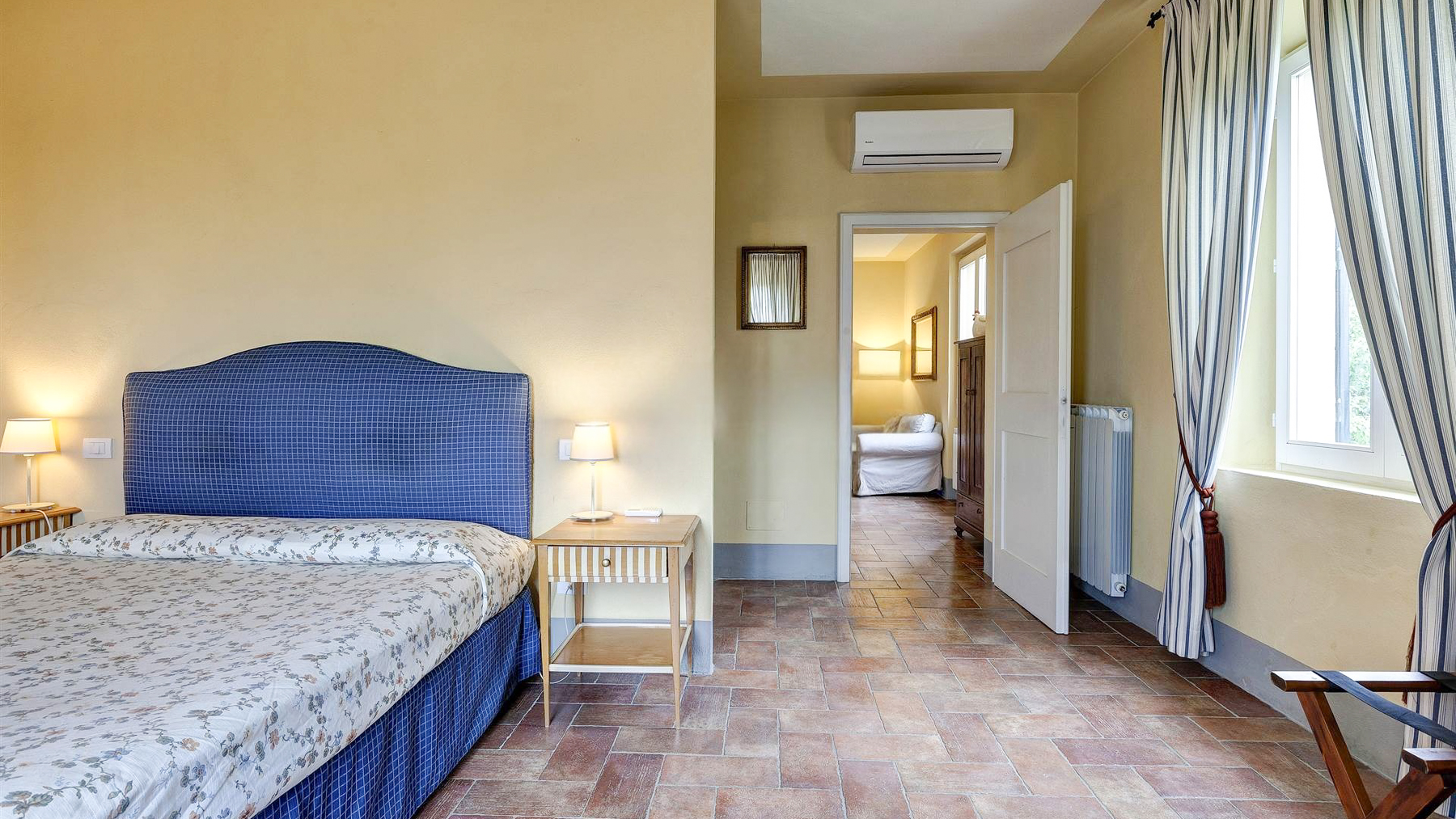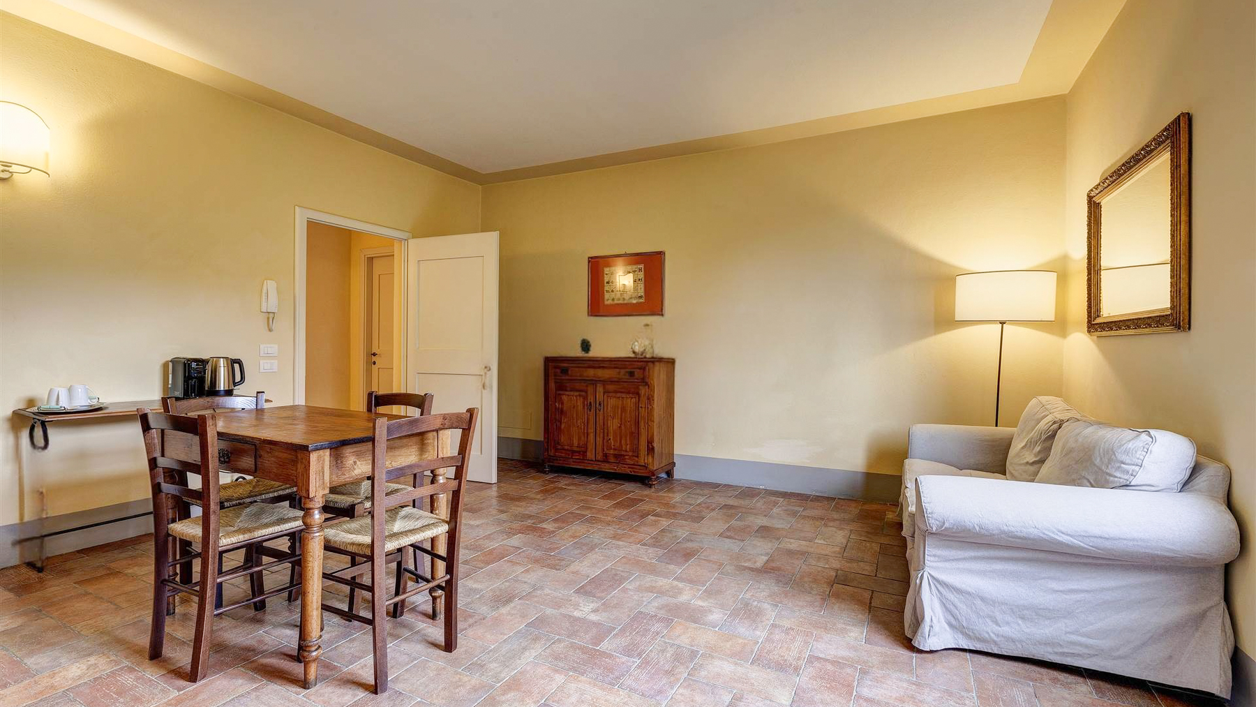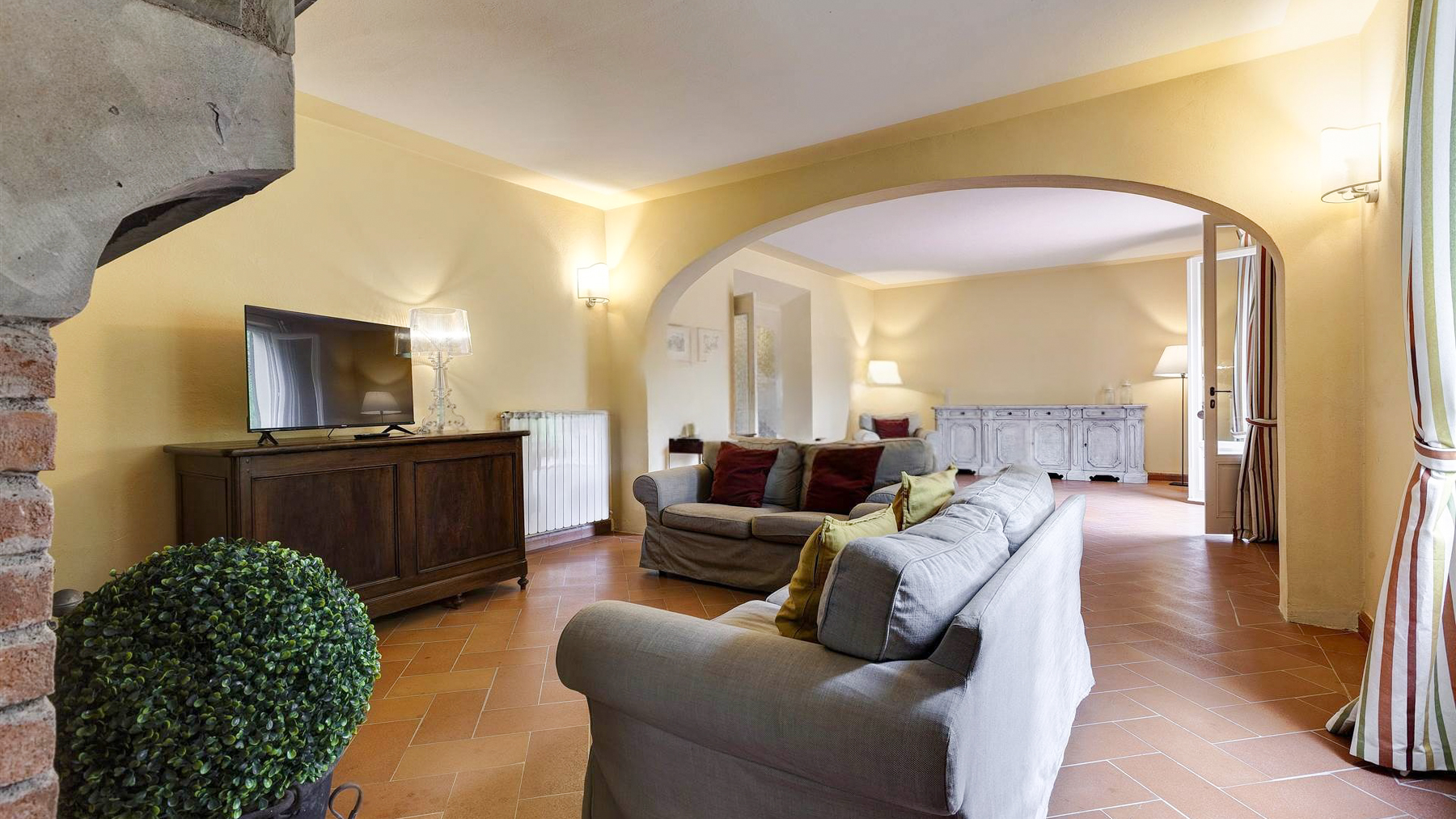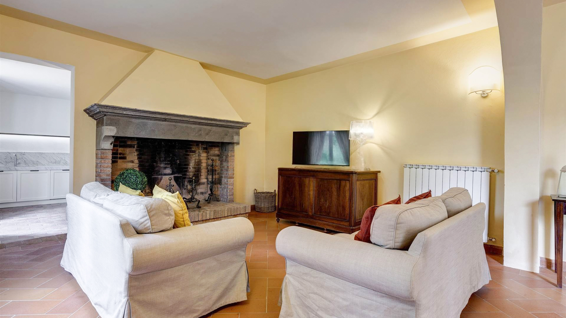 In the most authentic heart of Chianti Classico, between Florence and rolling hills dotted with vineyards and olive groves, this prestigious estate is reached via a quiet country road that gently leads into an oasis of absolute privacy. The landscape unfolds in wide, luminous views where the Tuscan countryside draws soft and harmonious lines. Here, nature becomes the daily backdrop and time slows to the rhythm of golden light, gentle breezes, and sunsets glowing over the orderly vines. The estate extends over approximately 755 sqm and comprises the main villa, a former barn, and a guest house, now thoughtfully transformed into seven independent apartments, each with its own private entrance and sweeping views across the Chianti hills. The interiors offer a total of 22 rooms, including 14 bedrooms and 14 bathrooms, making the property perfectly suited as either an exclusive private residence or a charming boutique hotel. The meticulous renovation highlights fine finishes and authentic Tuscan style, with elegant spaces and balanced architectural proportions. Outside, the 5-hectare grounds include a productive olive grove of approximately 50,000 sqm, manicured gardens, a panoramic swimming pool with solarium area, and a central courtyard that serves as the convivial heart of the estate. The historic cellars, overlooking the loggia and benefiting from independent access, provide evocative additional spaces ideal for tastings, private events, or hospitality ventures. An approximately 1,000 sqm parking area completes the property, conveniently accessible from two main entrances and a third service entrance connected directly to the cellars. The estate is sold fully furnished, with independent heating and air conditioning in every unit. Owning or living in this estate means embracing the pure essence of Chianti Classico, where conviviality and privacy meet history and contemporary comfort. Whether envisioned as a private retreat or a refined hospitality project, this property captures the quiet allure of the Tuscan countryside and transforms it into a daily experience of beauty and balance.