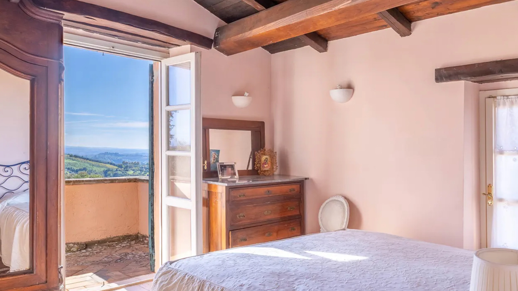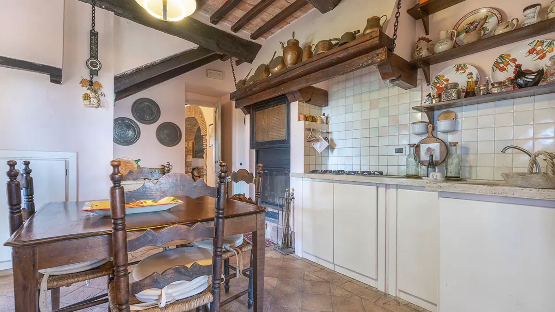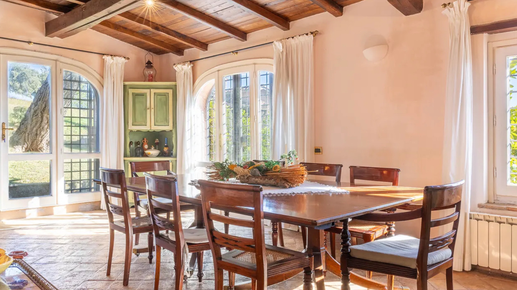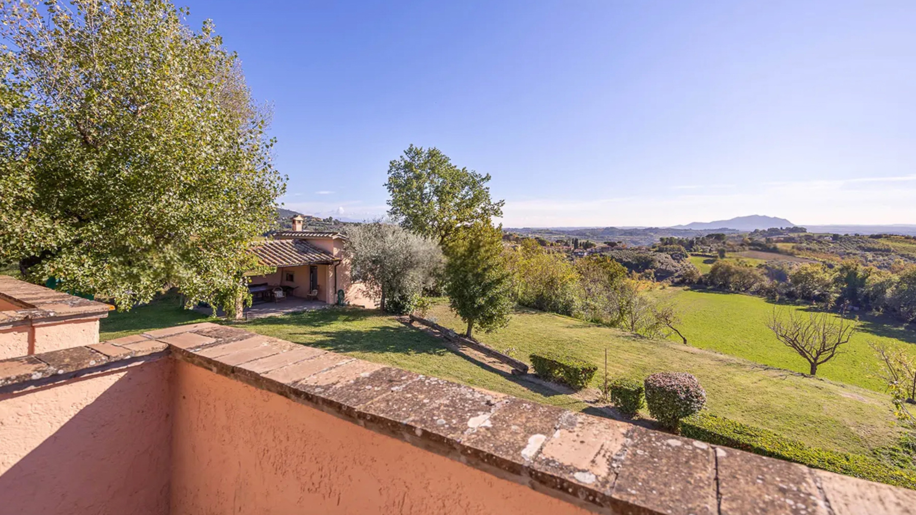 Cradled amidst the serene beauty of Calvi dell'Umbria, this captivating two-story residence exudes rustic charm and elegance. The warm, sandy hues of its exterior blend harmoniously with the lush greenery surrounding it. Envision the gentle rustle of leaves from the towering tree that graces the property, as the golden sunlight bathes the terrace, creating a picturesque haven of peace and luxury. Spanning an impressive 590 square meters, this stunning home features 15 spacious rooms and four luxurious bathrooms, offering ample space for relaxation and entertainment. The property boasts a beautifully designed terrace, perfect for enjoying the breathtaking views of the surrounding hills and mountains. The charming green shutters and brown tiled roofing add to the home's classic appeal, creating a timeless aesthetic that is both inviting and sophisticated. Situated in the enchanting province of Terni, this residence encapsulates the idyllic countryside lifestyle. Imagine waking up to the gentle warmth of the sun streaming through your windows, and stepping out onto the terrace to savor your morning coffee amidst the tranquil beauty of the Italian countryside. The wooden table and decorative chairs provide the perfect setting for leisurely afternoons, where you can unwind with a good book or gather with loved ones for intimate gatherings. The scent of grapevines and the sight of vibrant greenery create a sensory experience that is both rejuvenating and inspiring. This exquisite property is a true testament to refined living, offering an unparalleled blend of rustic charm and modern comfort. It is a rare find in the luxury real estate market—a sanctuary of beauty and elegance that promises a lifestyle of tranquility and splendor.