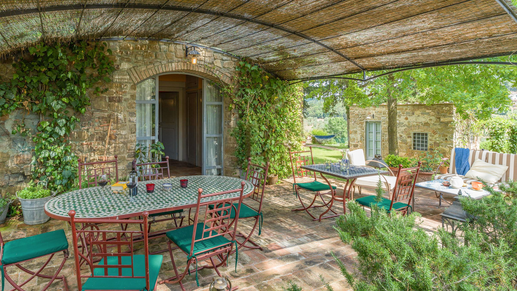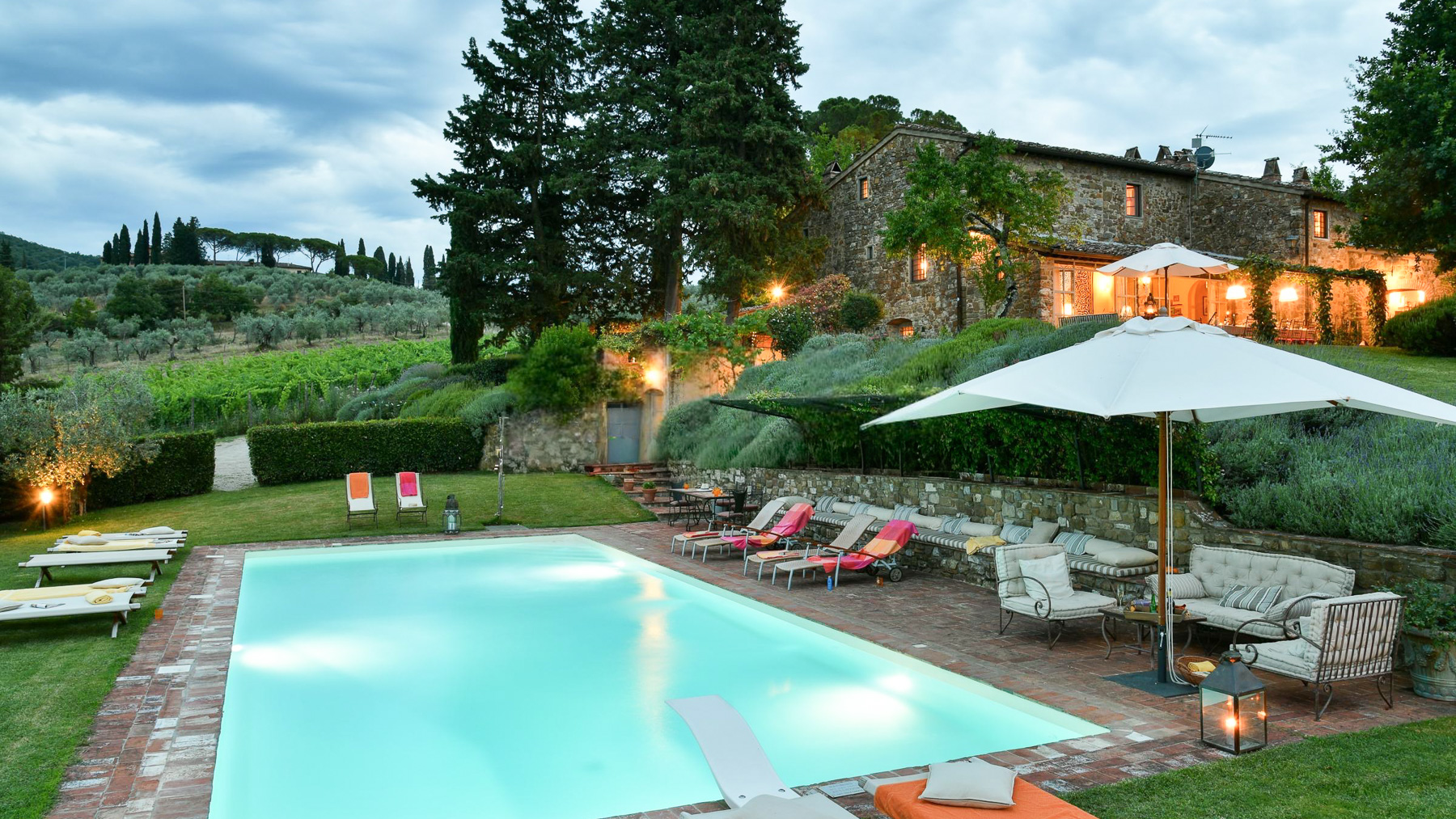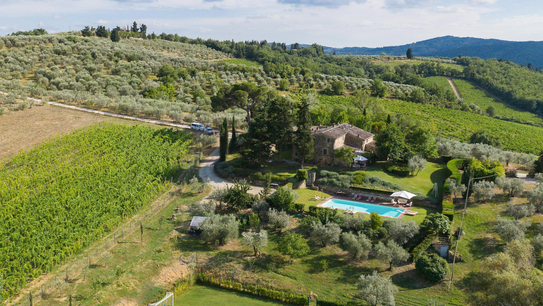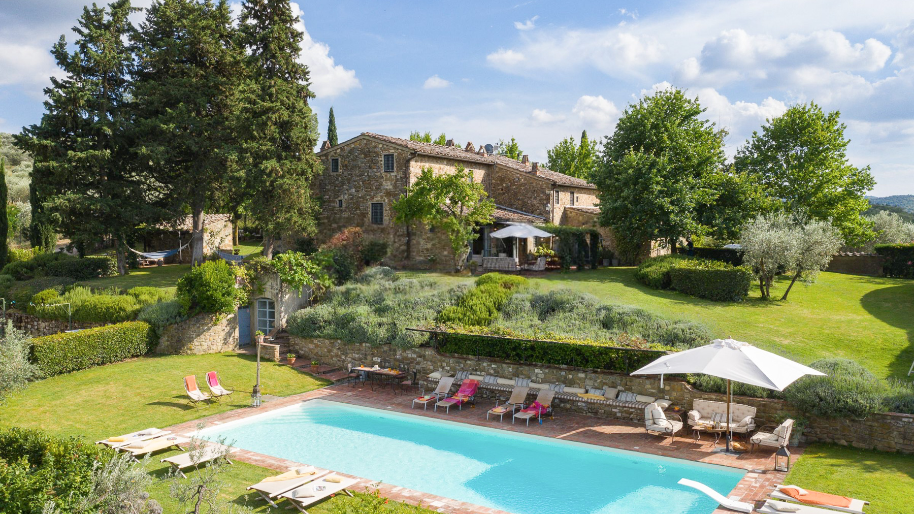 Tucked away in the picturesque hills of Greve in Chianti, this enchanting estate offers a serene blend of rustic charm and luxurious comfort. As you arrive, the scent of olive groves and vineyards fills the air, inviting you to explore this tranquil haven. The gentle rustle of leaves and the soft glow of the Tuscan sun create an atmosphere of peace and relaxation. Spanning an impressive 600 square meters, this exquisite property boasts 20 rooms and 7 bathrooms, ensuring ample space for relaxation and entertainment. The rustic stone house is surrounded by lush greenery, providing a private oasis for residents. A shimmering outdoor pool invites you to unwind, while the private garden offers a sanctuary for quiet reflection. Located in the heart of the wine-producing region of Greve in Chianti, this estate exemplifies the Vigneti lifestyle. Imagine savoring long, leisurely dinners in the outdoor dining area, where a canopy of woven materials shelters you from the sun. The ambiance is perfect for gatherings, with the table elegantly set and surrounded by verdant landscapes. The rolling hills in the distance provide a breathtaking backdrop, making every moment spent here a cherished memory. This estate represents the pinnacle of luxury living in the Tuscan countryside, offering a rare opportunity to own a piece of paradise in one of Italy's most sought-after regions. Experience a lifestyle of elegance and tranquility, where every day feels like a dream come true.