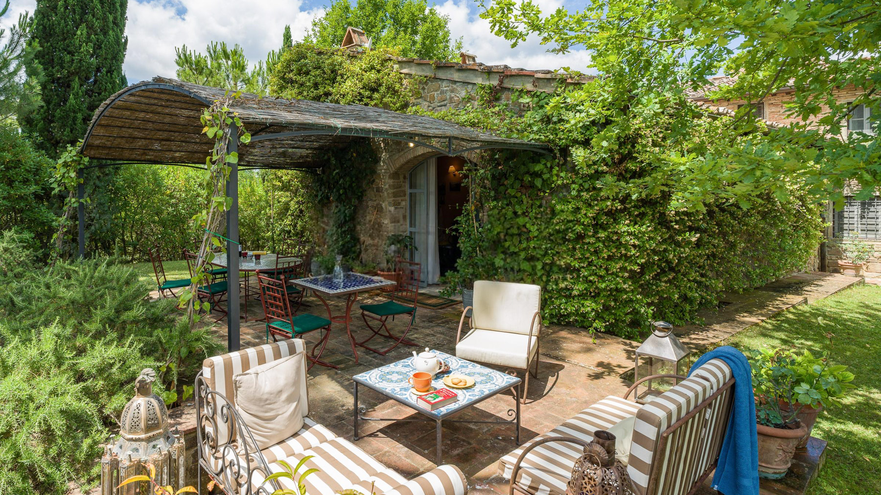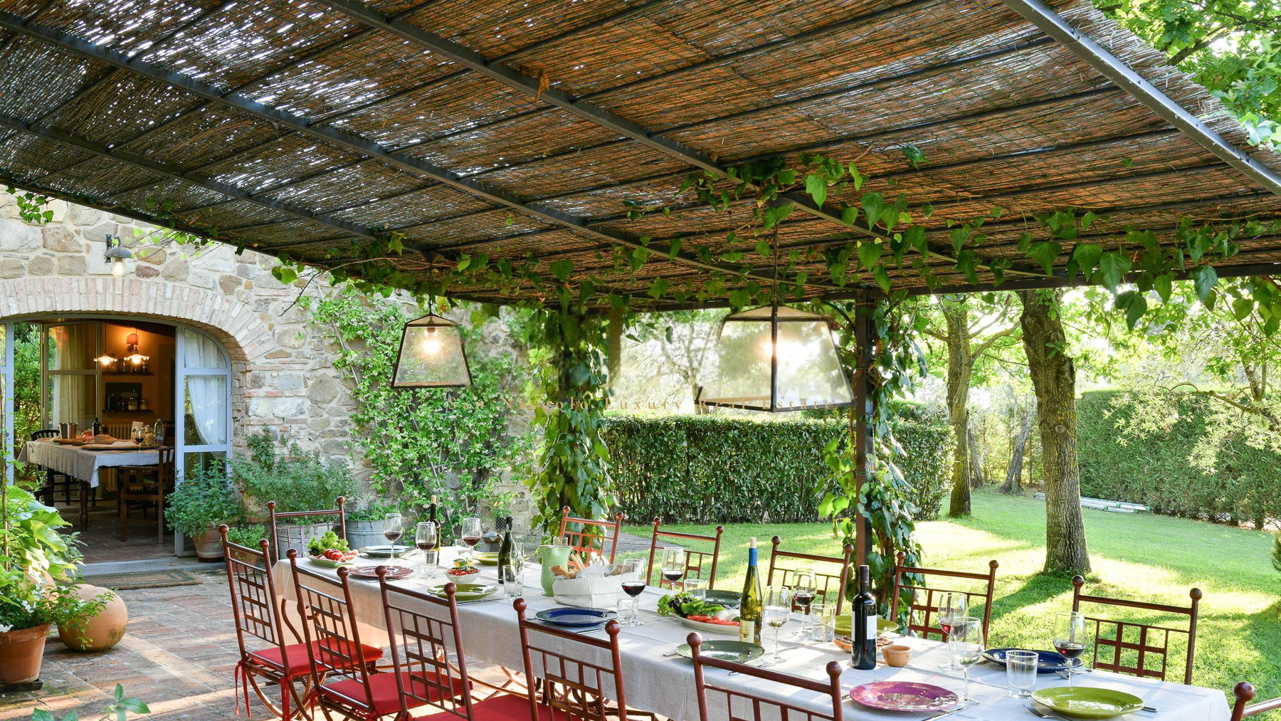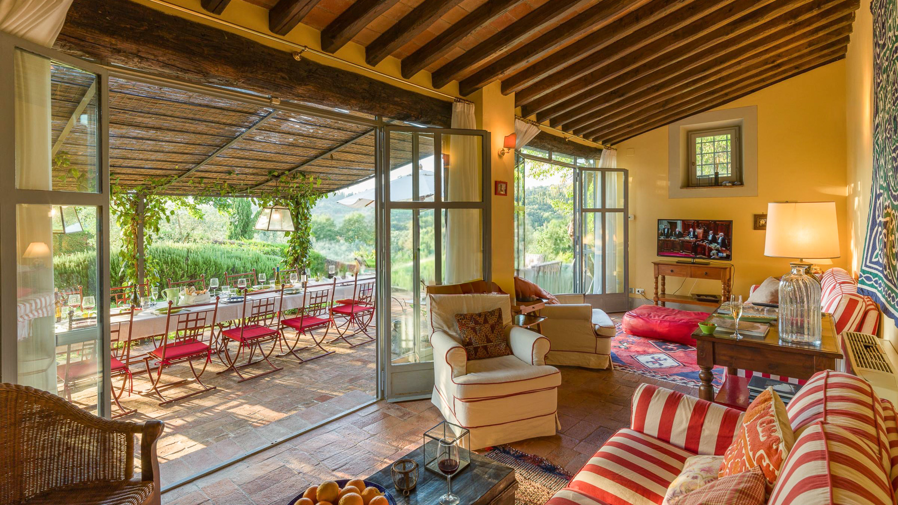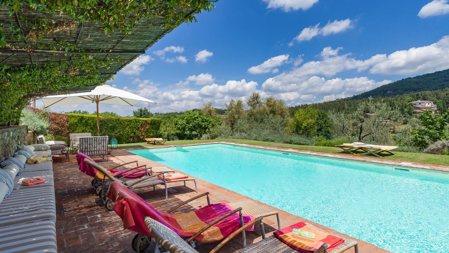 Tucked away in the picturesque hills of Greve in Chianti, this enchanting estate offers a serene blend of rustic charm and luxurious comfort. As you arrive, the scent of olive groves and vineyards fills the air, inviting you to explore this tranquil haven. The gentle rustle of leaves and the soft glow of the Tuscan sun create an atmosphere of peace and relaxation. Spanning an impressive 600 square meters, this exquisite property boasts 20 rooms and 7 bathrooms, ensuring ample space for relaxation and entertainment. The rustic stone house is surrounded by lush greenery, providing a private oasis for residents. A shimmering outdoor pool invites you to unwind, while the private garden offers a sanctuary for quiet reflection. Located in the heart of the wine-producing region of Greve in Chianti, this estate exemplifies the Vigneti lifestyle. Imagine savoring long, leisurely dinners in the outdoor dining area, where a canopy of woven materials shelters you from the sun. The ambiance is perfect for gatherings, with the table elegantly set and surrounded by verdant landscapes. The rolling hills in the distance provide a breathtaking backdrop, making every moment spent here a cherished memory. This estate represents the pinnacle of luxury living in the Tuscan countryside, offering a rare opportunity to own a piece of paradise in one of Italy's most sought-after regions. Experience a lifestyle of elegance and tranquility, where every day feels like a dream come true.
