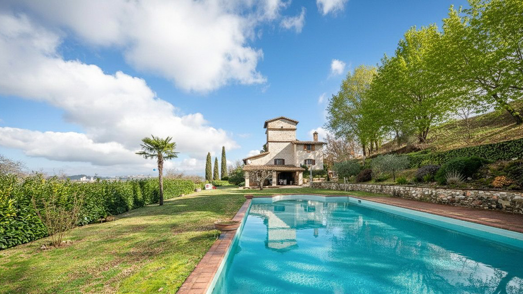 In the embrace of a serene and verdant countryside, this enchanting residence offers a sanctuary of peace and sophistication. Surrounded by lush greenery and gently rolling hills, the property exudes an air of tranquility, inviting you to indulge in the beauty of nature. The gentle rustle of leaves and the soft caress of a breeze create a sensory experience that transcends the ordinary. Spanning 451 square meters, this exquisite property in Madonna di Baiano, Perugia, boasts 11 spacious rooms and 5 elegantly appointed bathrooms. The house features a harmonious blend of stone and plaster, adding timeless charm to its exterior. Step into a world of luxury with a private garden and pool, where moments of relaxation are a daily ritual. The terrace offers a perfect vantage point to admire the stunning landscape, making it a true haven for those seeking escape and elegance. Imagine waking up to the sounds of nature, savoring your morning coffee while gazing at the picturesque vistas. This property offers a lifestyle defined by tranquility and refinement, where every day unfolds like a page from a cherished novel. The expansive outdoor space invites you to bask in the sun, entertain under the stars, and create cherished memories with loved ones. This residence epitomizes the perfect blend of rural charm and modern luxury—a rare jewel in the heart of the Italian countryside. An opportunity to own such a unique property is not to be missed, as it promises a life of unparalleled serenity and sophistication.