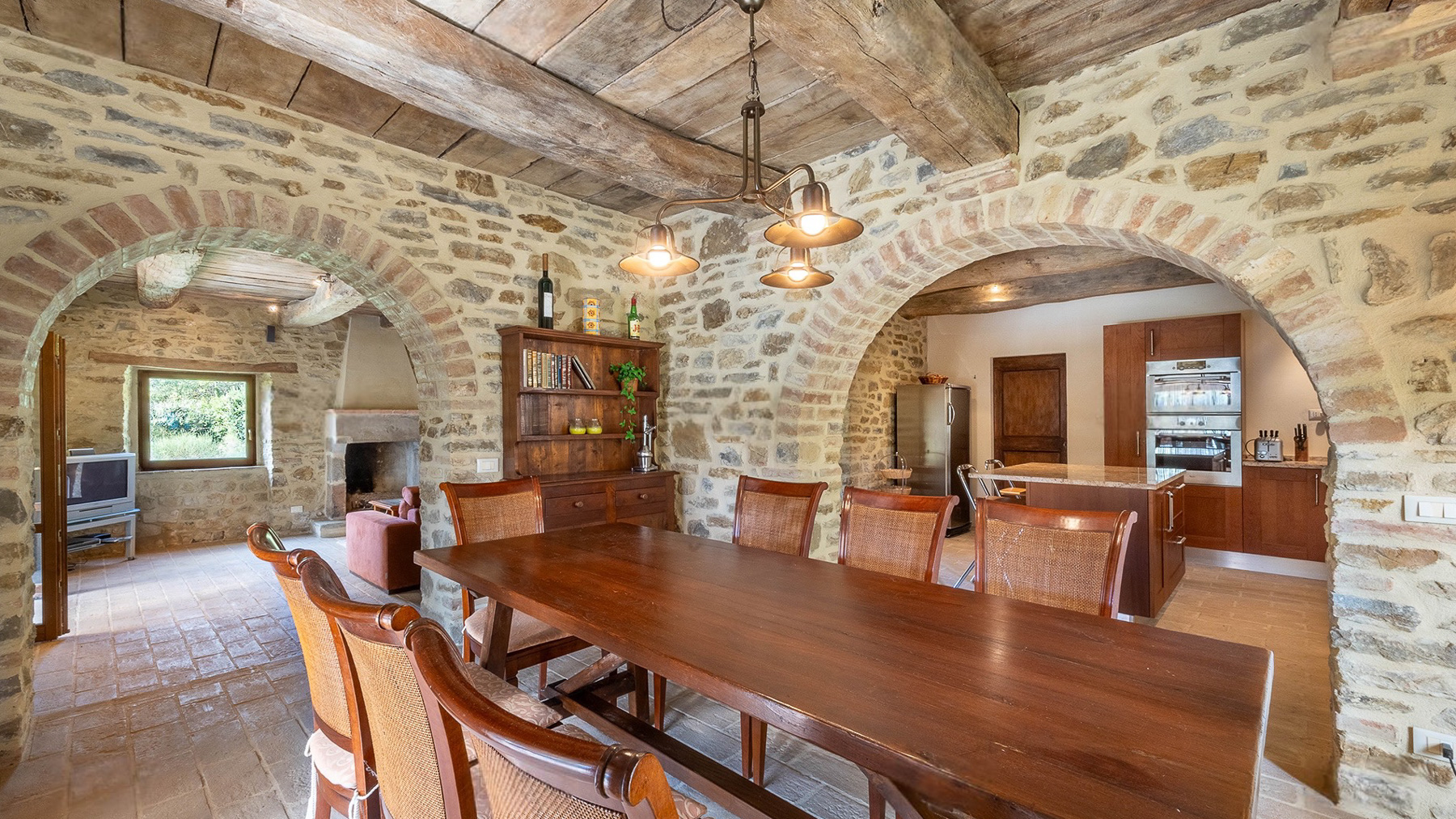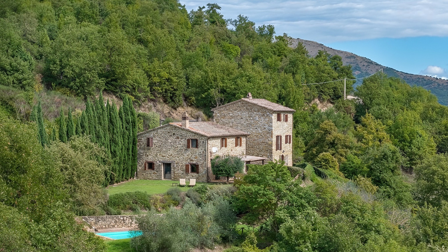 Set against the backdrop of rolling hills and a partly cloudy sky, this picturesque stone house invites you to experience the tranquility of the countryside. Surrounded by lush greenery and vibrant trees, the property is a sanctuary of serenity, where the gentle rustle of leaves and the scent of fresh blossoms fill the air. A glistening swimming pool in the foreground enhances the idyllic atmosphere, offering a perfect retreat from the world. Spanning an impressive 320 square meters, this rustic residence in Magione, Perugia, boasts 19 rooms and 6 bathrooms, providing ample space for luxurious living. Featuring multiple levels and large windows, the house is a harmonious blend of rustic charm and modern elegance. A private garden further enriches the property, creating a seamless connection with the natural environment. This home is a testament to the enchanting lifestyle of the Italian countryside. Imagine starting your day with a leisurely swim, followed by breakfast on the terrace, where the beauty of the surrounding landscape unfolds before your eyes. In the evenings, unwind in the garden, enveloped by the soothing sounds of nature, as the sun sets over the horizon. Living here means embracing a lifestyle of peace, beauty, and connection with nature. This residence is not just a home; it is a rare masterpiece of luxury and comfort. A true gem in the heart of the countryside, it offers an unparalleled opportunity to own a piece of paradise.