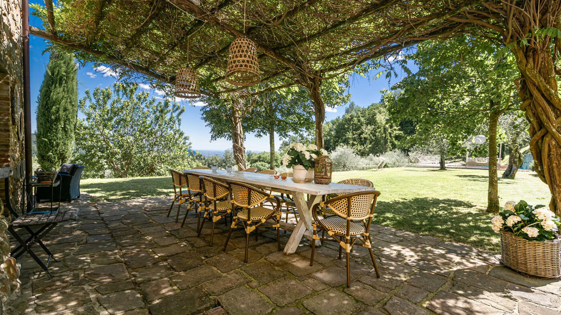 Situated amongst the gentle hills of Valdinievole, this magnificent Tuscan retreat offers an oasis of serenity and luxury, surrounded by the unspoiled beauty of the countryside. As you approach, a picturesque country road lined with olive trees and cypresses guides you to this enchanting property, where the scent of jasmine and the warmth of the Tuscan sun greet you. Spanning 390 square meters, this exquisite estate features 12 rooms, including six elegant double bedrooms and six bathrooms. The main farmhouse, complemented by a guesthouse, offers a seamless blend of rustic charm and modern amenities. The property boasts a private pool, inviting outdoor spaces with dining areas, and a lush garden that enhances the idyllic setting. Located in Marliana, Pistoia, this home captures the essence of the Tuscan countryside lifestyle. Imagine the joy of hosting al fresco dinners under a canopy of greenery, where laughter mingles with the gentle rustle of leaves. Spend leisurely afternoons by the pool, surrounded by panoramic views of rolling hills and olive groves. Each day here promises a sensory delight, a perfect escape into nature's embrace. This property is a testament to refined elegance and timeless allure, a rare opportunity to own a piece of Tuscan paradise. It embodies the quintessential blend of luxury and tranquility—a true masterpiece in the world of luxury real estate.