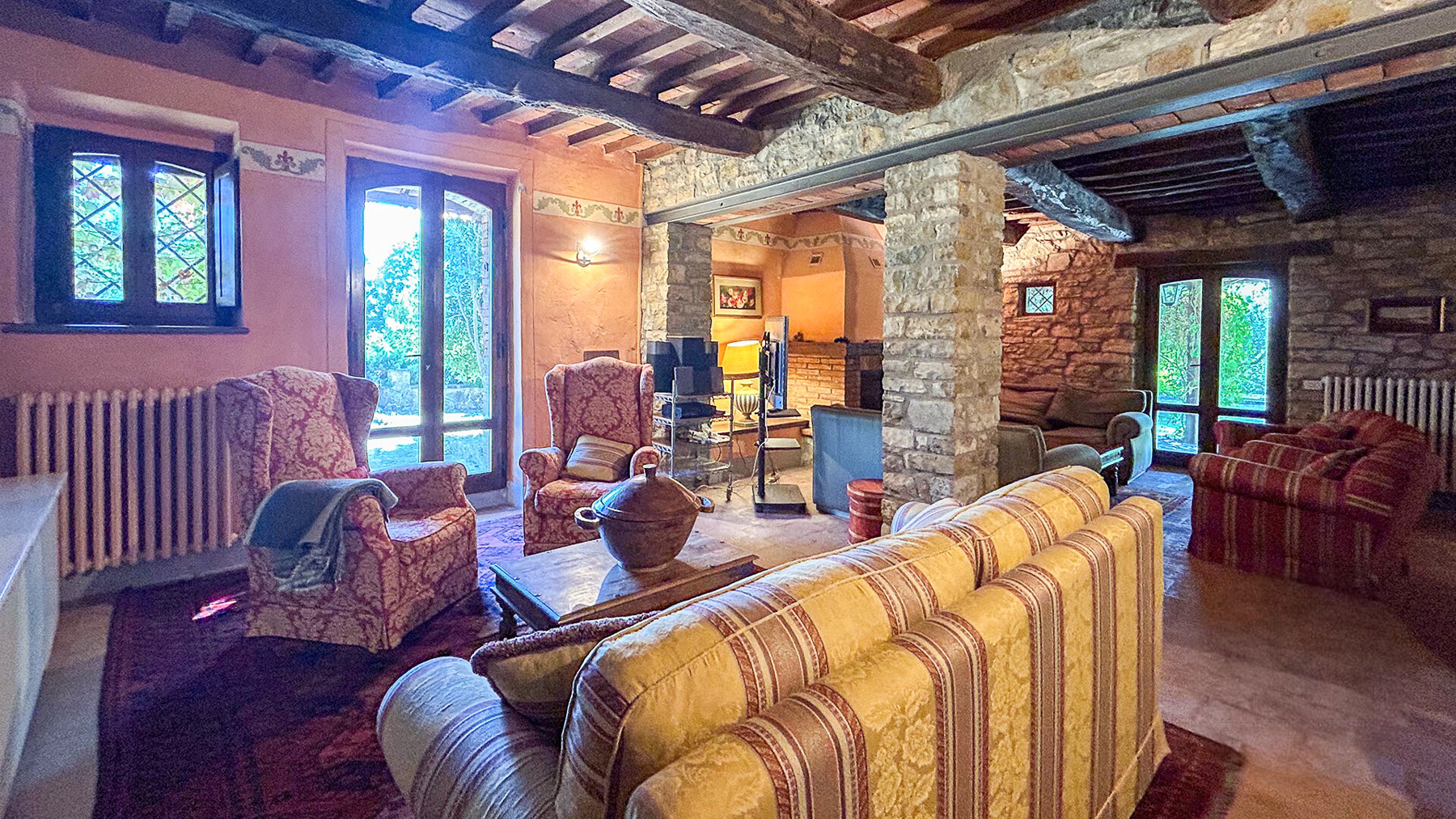 Imagine arriving at a picturesque retreat where the charm of rustic elegance meets the serenity of nature. This enchanting stone house, crowned with a classic tiled roof, stands proudly amidst lush greenery, offering a tranquil escape from the hustle and bustle. As sunlight dances through the lattice windows, the gentle rustle of leaves and the fragrance of potted plants create a soothing symphony of senses. This spacious 520 sqm property boasts 16 rooms, including 7 luxurious bathrooms, each thoughtfully designed to blend tradition with comfort. Located in the idyllic Montegabbione, Terni, this home is a testament to exquisite craftsmanship, featuring a harmonious mix of stone and brick elements. The private garden and pool offer a sanctuary of leisure, while the inviting terrace provides the perfect setting for alfresco gatherings. This countryside haven embodies the essence of Italian charm and sophistication. Living here is an experience of unparalleled tranquility. Picture yourself lounging by the pool on a sunny afternoon, embraced by the gentle warmth of the sun and the peaceful sounds of nature. The beautifully manicured garden is your private Eden, where every corner invites relaxation and reflection. As evening falls, the terrace becomes a stage for unforgettable moments under the starlit sky. This property is not just a home; it is a masterpiece of timeless allure and luxury. It offers a rare opportunity to own a slice of paradise in a coveted location, promising a lifestyle that is both exclusive and enriching.
