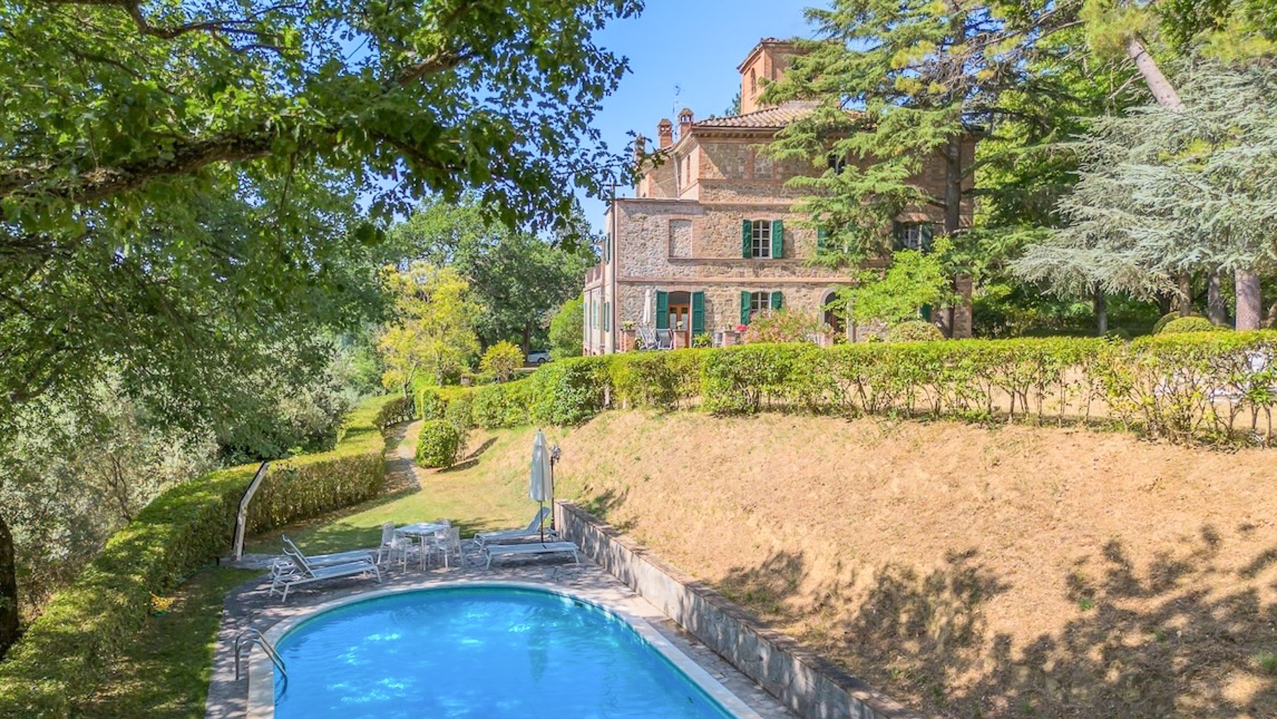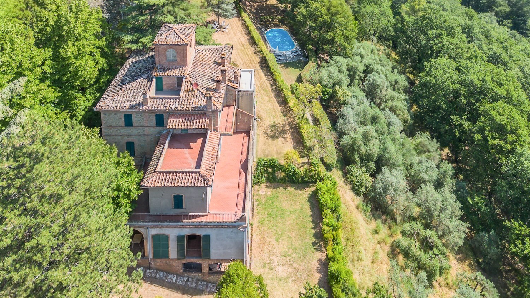 Set against the stunning backdrop of the Italian countryside, this majestic estate offers an enchanting escape into a world of timeless beauty and elegance. The gentle rustle of leaves and the scent of fresh blooms fill the air, creating a serene atmosphere that calms the soul and invigorates the senses. Spanning an impressive 1100 square meters, this expansive property in Monteleone d'Orvieto boasts 36 rooms and 7 bathrooms, providing ample space for luxurious living. With its classic architecture reminiscent of historic Italian villas, the home features distinctive elements such as a terracotta roof and green shutters, perfectly capturing the charm of its surroundings. A private pool and terrace offer the ideal settings for relaxation and entertainment, making this residence a true countryside retreat. Living here is an experience of unmatched tranquility and indulgence. Picture yourself enjoying leisurely afternoons by the pool, surrounded by the lush greenery and rolling hills that define the landscape. The spacious terrace becomes your sanctuary for alfresco dining, where every meal is accompanied by breathtaking views and the soothing sounds of nature. This property is a testament to refined living, offering a rare blend of traditional elegance and modern amenities. It is not merely a home, but a treasured sanctuary in the heart of Italy's picturesque countryside, promising a lifestyle of unparalleled luxury.