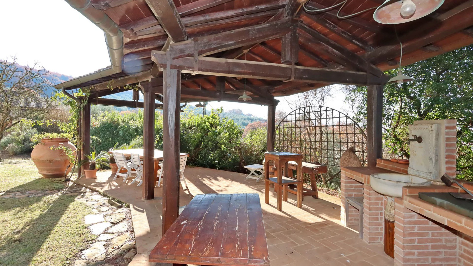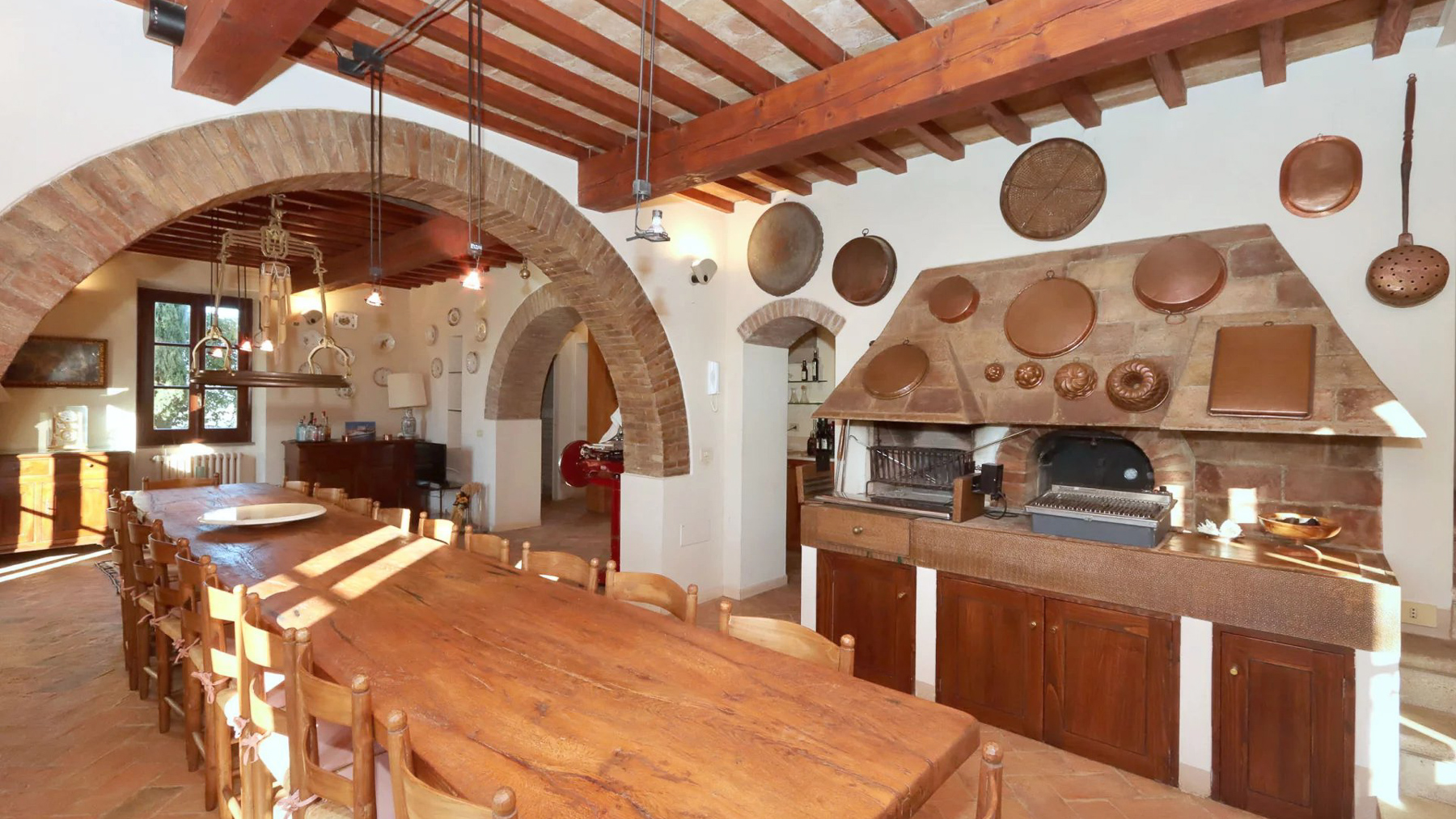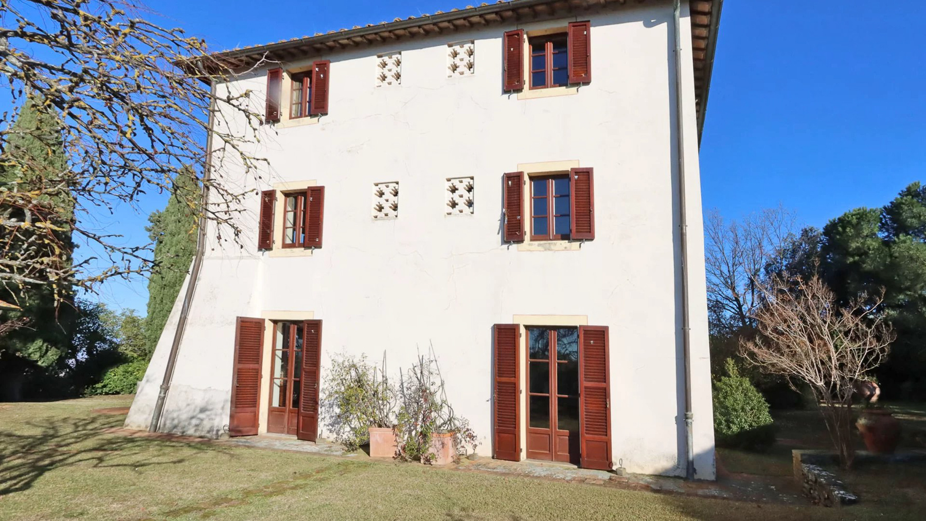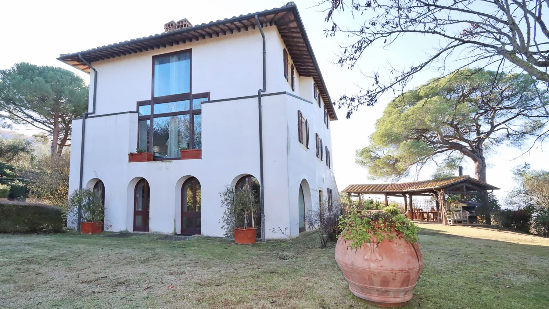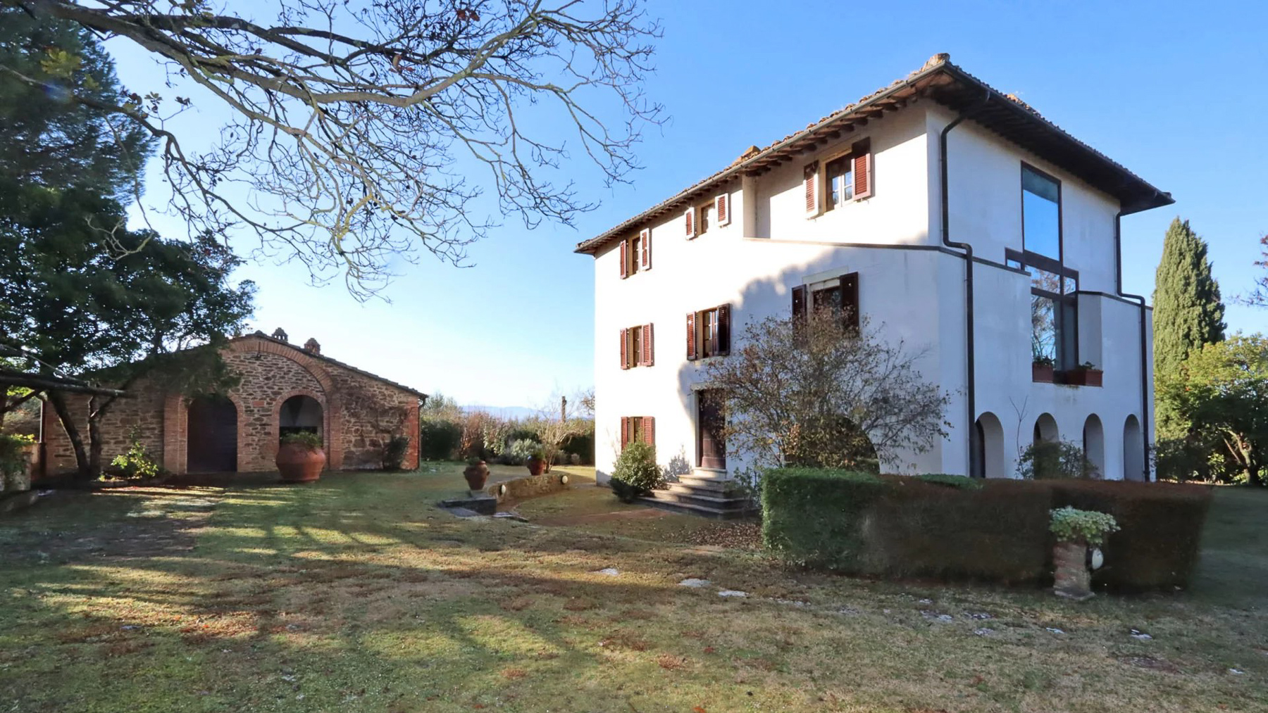 Enveloped in the enchanting landscape of Umbria, Villa Le Balze is a sanctuary of historical grandeur and natural beauty, where every breath carries the essence of the countryside. Set amidst rolling hills between the serene Lake Trasimeno and the cultural richness of Tuscany, this estate offers an unparalleled retreat filled with timeless charm and modern elegance. Spanning approximately 2,600 sqm, the property harmoniously blends a 19th-century manor villa with traditional farmhouses, independent apartments, and a historic olive mill, all set within 64 hectares of lush land. The main villa, with its 600 sqm of living space, features expansive rooms with sweeping views, sumptuous bedrooms, and elegantly appointed bathrooms. A second farmhouse, meticulously transformed into five rustic-style apartments, complements the estate’s allure. Additional buildings include a 950 sqm olive mill with independent units and a modern structure offering dual apartments and storage facilities, totaling 370 sqm. A 300 sqm warehouse supports the estate's thriving agricultural activities. Living here means immersing yourself in a lifestyle that celebrates both heritage and sustainability. Picture yourself wandering through the organic olive grove, with 9,000 trees whispering tales of tradition, or savoring the rustic ambiance of a dining area where wooden beams and terracotta tiles embrace you in warmth. This is a place where every moment is a memory in the making. Villa Le Balze stands as a testament to historical elegance and agricultural excellence, a rare opportunity for those seeking a prestigious and versatile estate in the heart of Italy’s countryside.