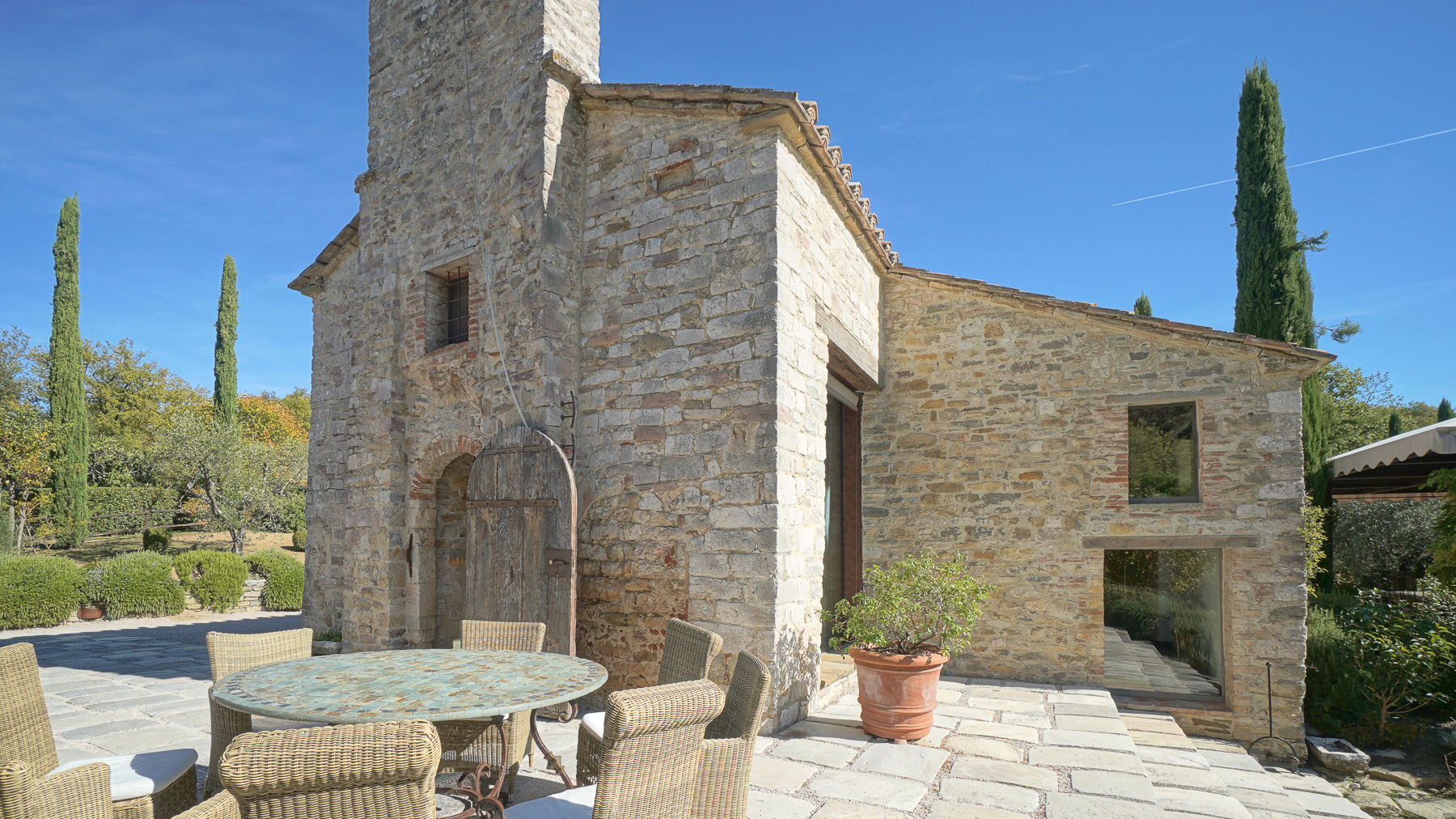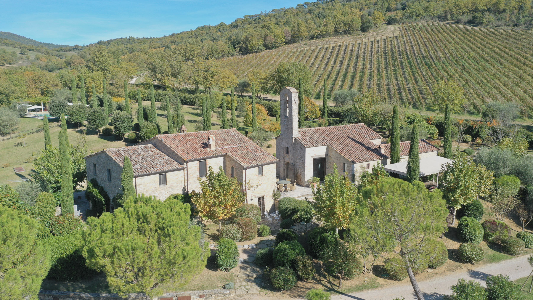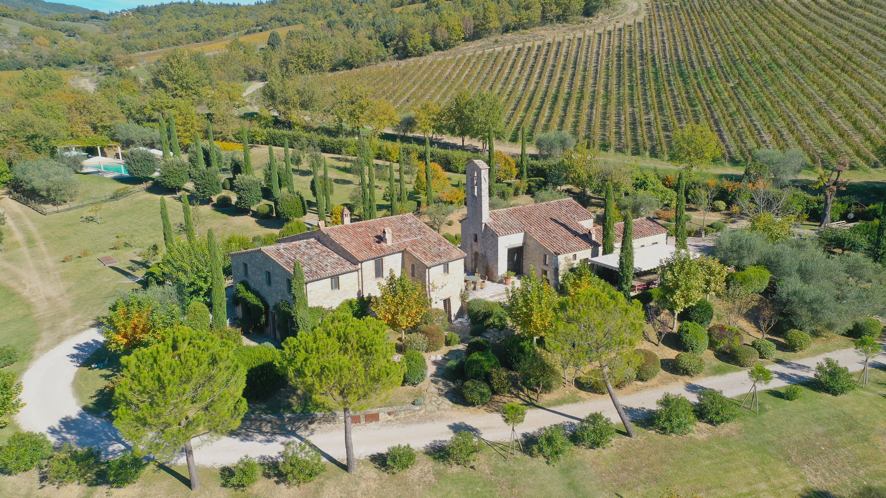 Amidst the gentle rolling hills of Umbria, this exquisite estate offers a sanctuary where the senses come alive. Enveloped in the enchanting aroma of nearby vineyards, the property basks in the glow of the setting sun, casting long shadows behind ancient cypress trees. This is a place where nature and architecture blend seamlessly, creating a serene and timeless haven in the heart of the countryside. Spanning an impressive 474 square meters, this grand residence features 24 spacious rooms and 7 luxurious bathrooms, perfect for those who cherish privacy and ample space. The stone facade and tiled roof exude rustic charm, accentuated by a distinctive tower. A private pool provides a tranquil oasis, surrounded by meticulously manicured gardens. Situated in Perugia, in the heart of Umbria, this property epitomizes the idyllic countryside lifestyle, offering an unparalleled living experience. Imagine awakening to breathtaking vineyard views, spending your days exploring the natural surroundings or unwinding in your private garden. As evening falls, savor alfresco dining under a starlit sky, accompanied by the gentle sounds of nature. This estate offers more than just a place to live; it provides an extraordinary opportunity to embrace the Italian dream. This property is a masterpiece that seamlessly blends timeless elegance with modern comfort—a true jewel in the luxury real estate landscape, offering a rare opportunity to live amidst beauty and tranquility.