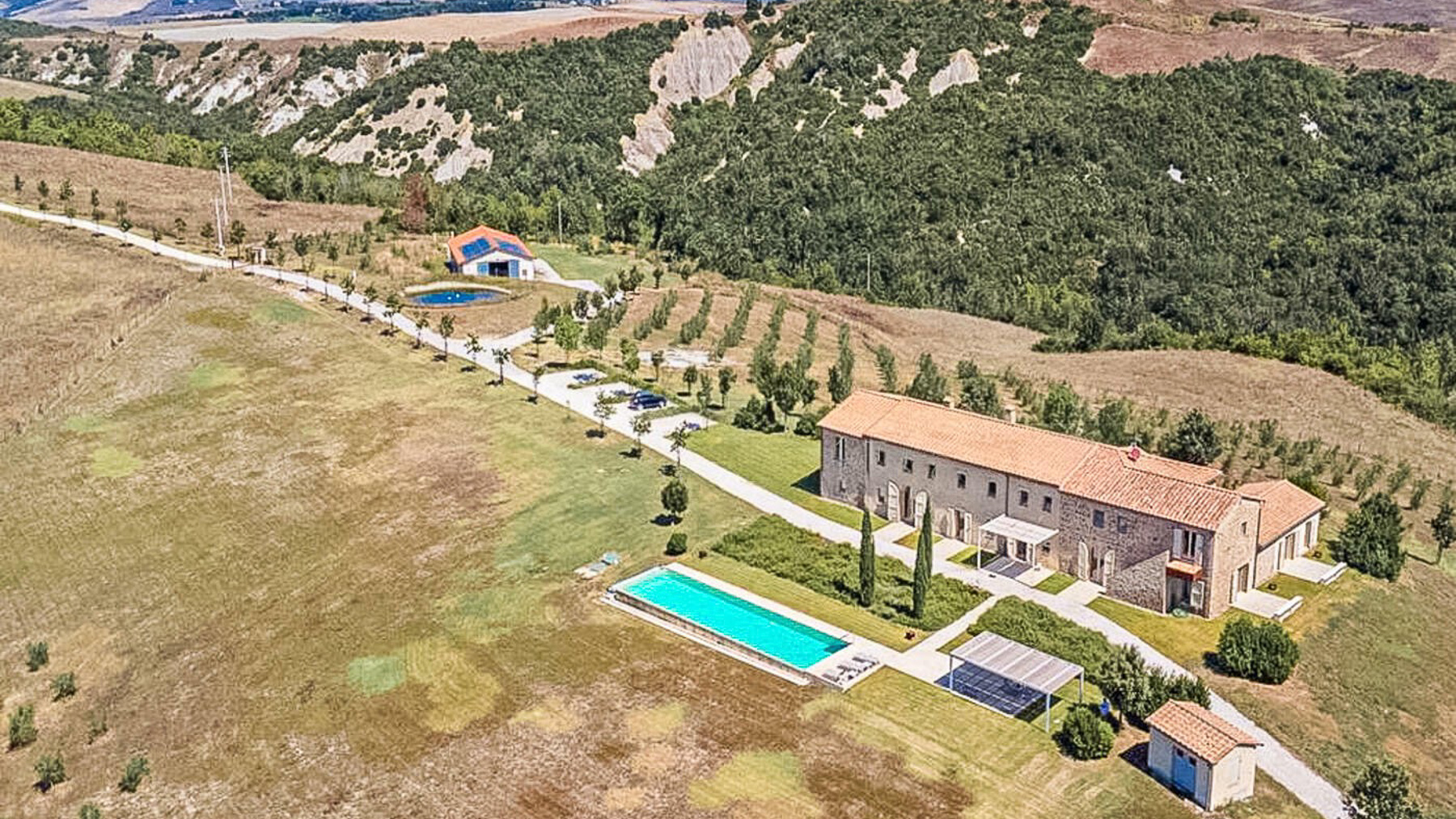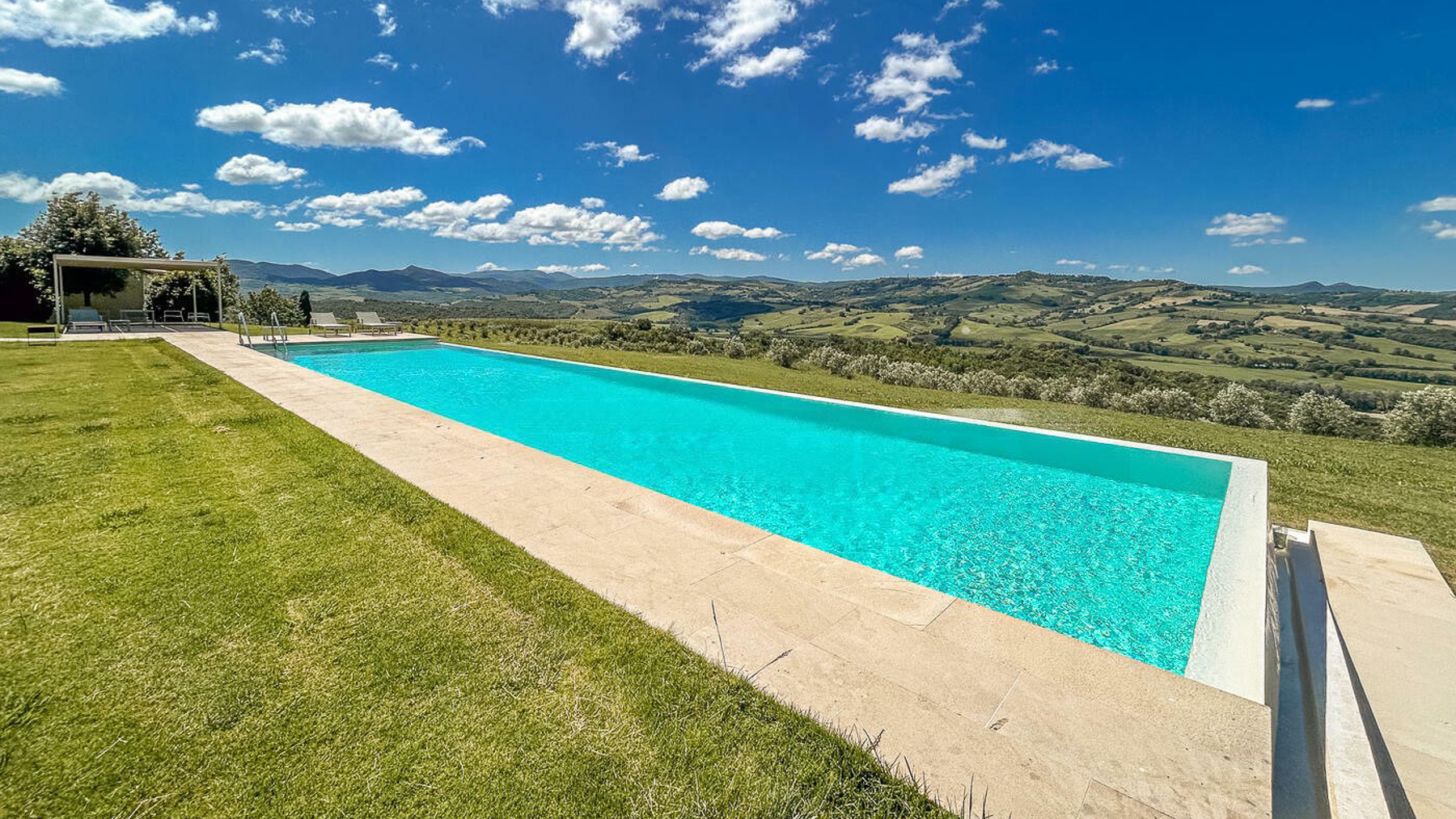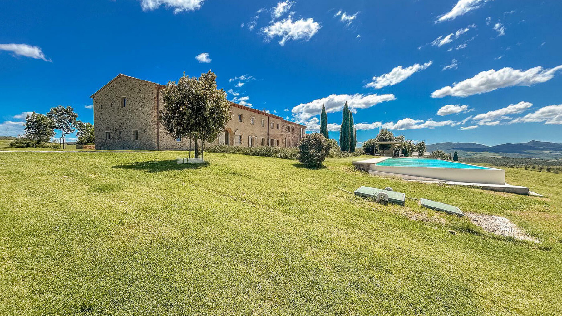 Amidst the enchanting landscape of the Tuscan countryside, this prestigious estate offers a sanctuary of elegance and serenity, just a short drive from the historic charm of Volterra. As you arrive, the gentle rustling of olive trees and the soft chirping of birds greet you, creating an atmosphere of tranquility and luxury. Spanning an impressive 1260 square meters, this magnificent estate includes a finely renovated 19th-century farmhouse, a spacious agricultural annex, and a stunning saltwater infinity pool. With 20 rooms and 6 bathrooms, the home combines traditional Tuscan architecture with modern amenities, providing a perfect balance of heritage and contemporary comfort. Located in Pomarance, Pisa, this property is set on 95 hectares of lush land, offering a lifestyle of rustic elegance and privacy. Living here is an experience like no other. Picture yourself savoring a glass of local wine on the pergola as the sun sets over the rolling hills, or wandering through your own orchard, enveloped by the scent of blooming flowers. The heated pool offers a refreshing escape, while the meticulously designed interiors provide a cozy and sophisticated retreat. This estate is more than just a home