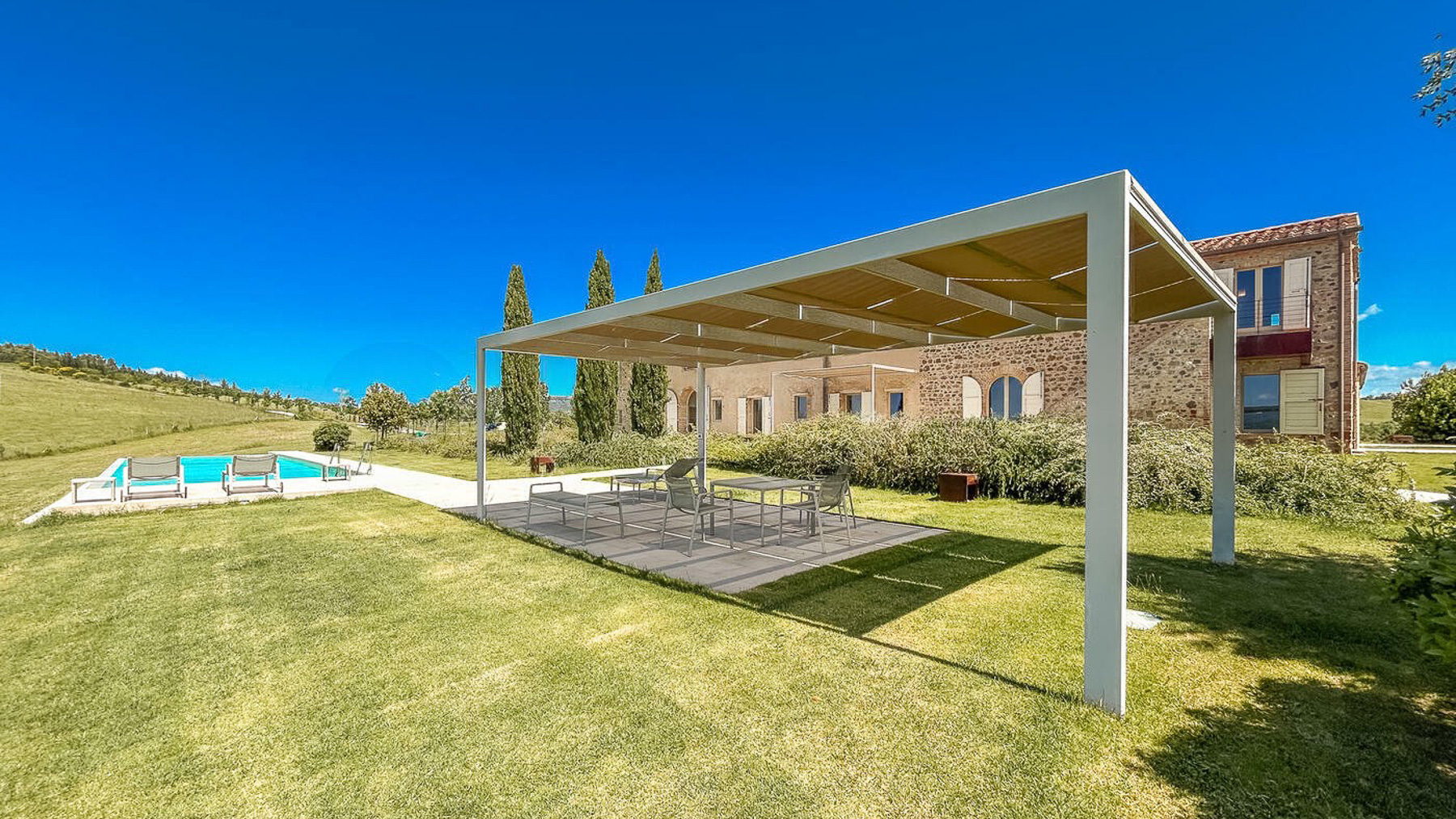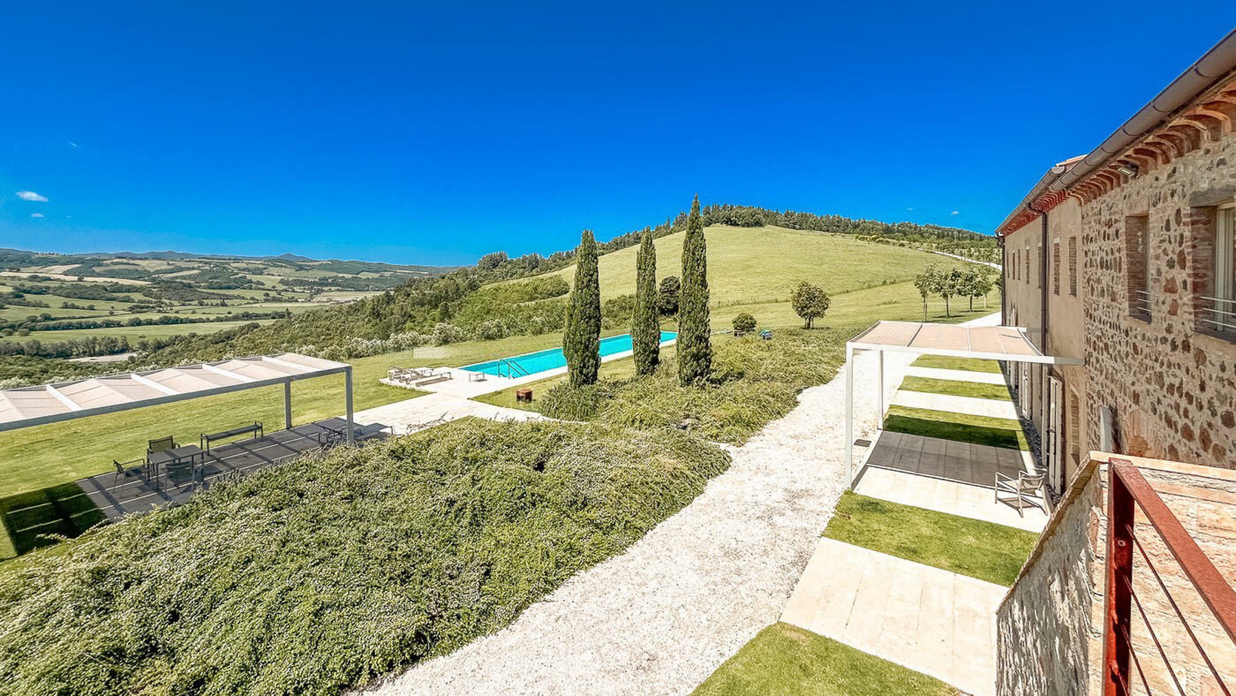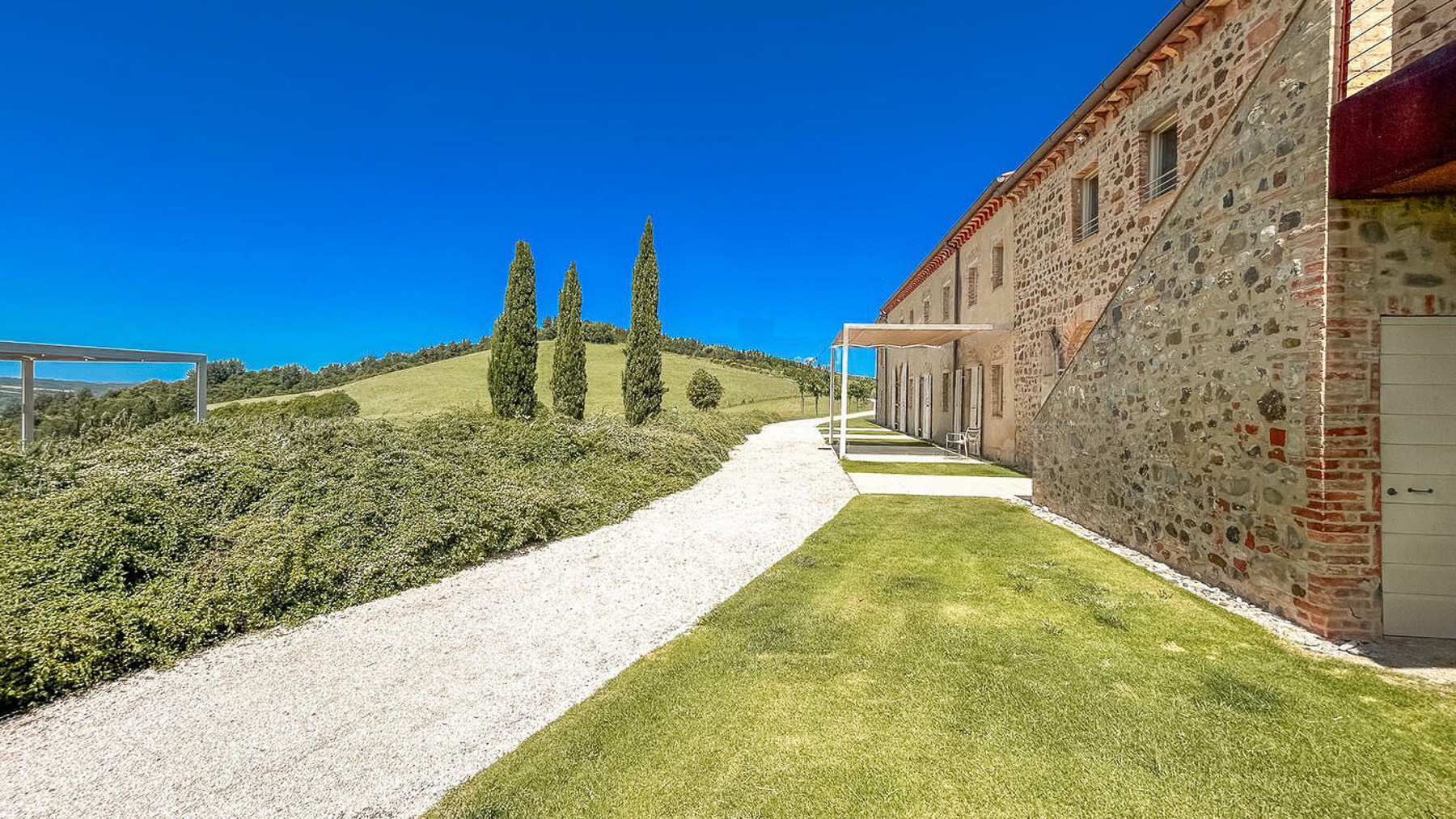 Amidst the enchanting landscape of the Tuscan countryside, this prestigious estate offers a sanctuary of elegance and serenity, just a short drive from the historic charm of Volterra. As you arrive, the gentle rustling of olive trees and the soft chirping of birds greet you, creating an atmosphere of tranquility and luxury. Spanning an impressive 1260 square meters, this magnificent estate includes a finely renovated 19th-century farmhouse, a spacious agricultural annex, and a stunning saltwater infinity pool. With 20 rooms and 6 bathrooms, the home combines traditional Tuscan architecture with modern amenities, providing a perfect balance of heritage and contemporary comfort. Located in Pomarance, Pisa, this property is set on 95 hectares of lush land, offering a lifestyle of rustic elegance and privacy. Living here is an experience like no other. Picture yourself savoring a glass of local wine on the pergola as the sun sets over the rolling hills, or wandering through your own orchard, enveloped by the scent of blooming flowers. The heated pool offers a refreshing escape, while the meticulously designed interiors provide a cozy and sophisticated retreat. This estate is more than just a home