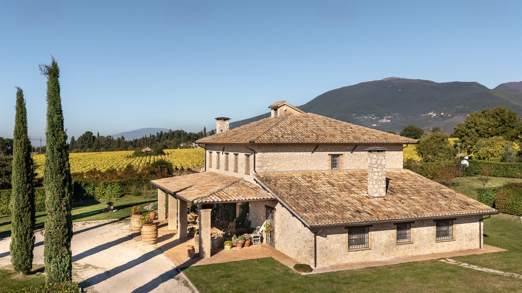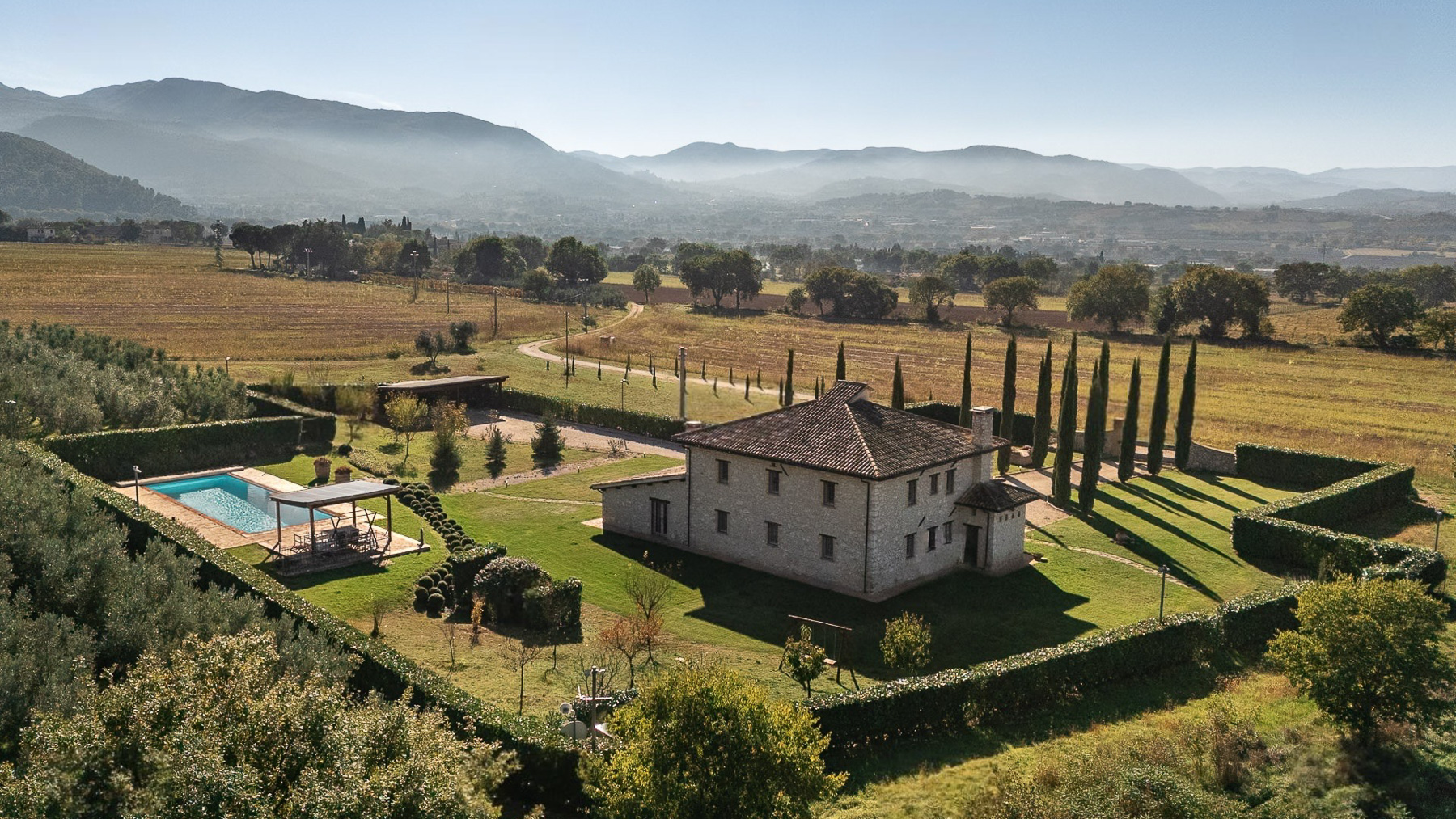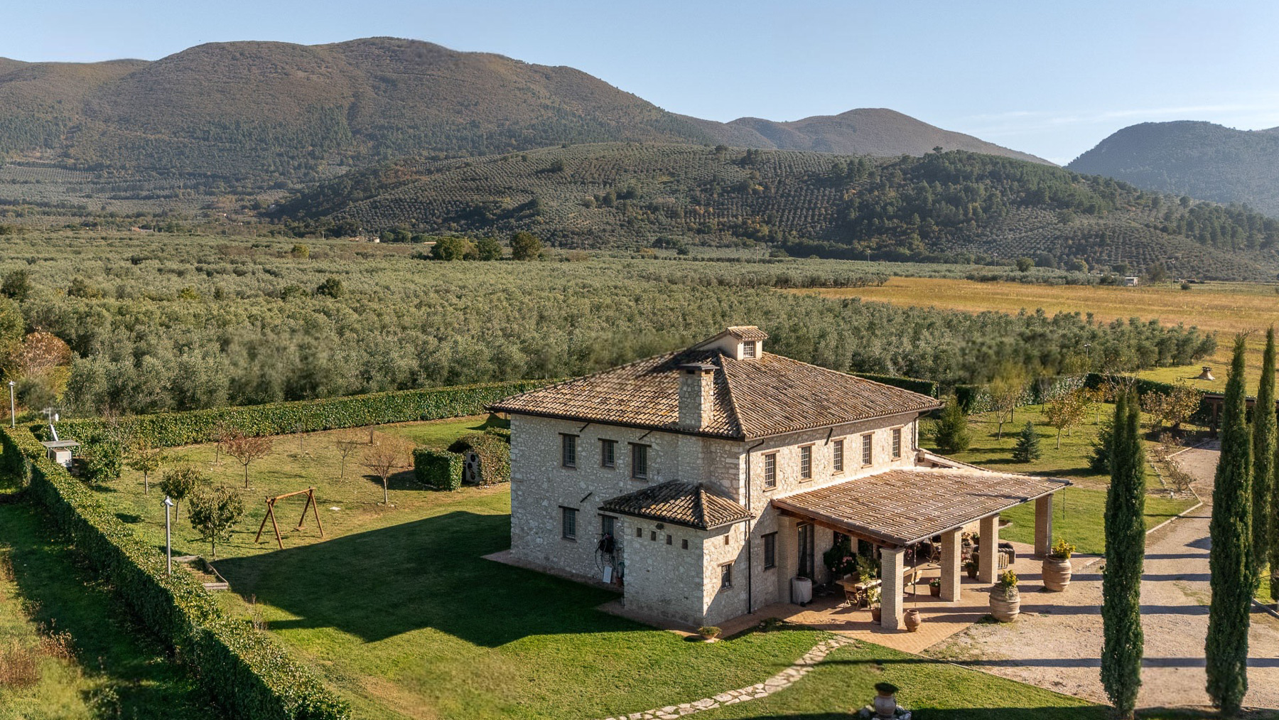 Tucked away in the serene embrace of a verdant landscape, this enchanting stone house exudes rustic charm and tranquility. The gentle rustle of leaves and the soft chirping of birds create a symphony of nature that soothes the soul, while the warm sunlight dances across the lush gardens, offering a picturesque retreat far from the bustle of everyday life. Spanning an impressive 400 square meters, this exquisite residence in Spoleto, Perugia offers a harmonious blend of comfort and elegance. With 14 spacious rooms and 3 luxurious bathrooms, the property is thoughtfully designed to provide ample space for both relaxation and entertainment. Key features include a private garden, where meticulously maintained hedges and vibrant florals create an oasis of beauty, and a private pool that invites you to unwind and soak in the serene countryside ambiance. Living here means immersing yourself in the idyllic Italian countryside lifestyle. Picture yourself enjoying leisurely afternoons on the covered patio, surrounded by the scent of blooming flowers and the sight of rolling hills dotted with olive trees. The rustic wooden table and chairs become the perfect setting for intimate gatherings or tranquil moments of solitude. This property is a rare opportunity to own a slice of paradise in the heart of Italy. A true testament to the art of fine living, it offers a unique blend of timeless allure and modern luxury, making it a coveted jewel in the luxury real estate market.