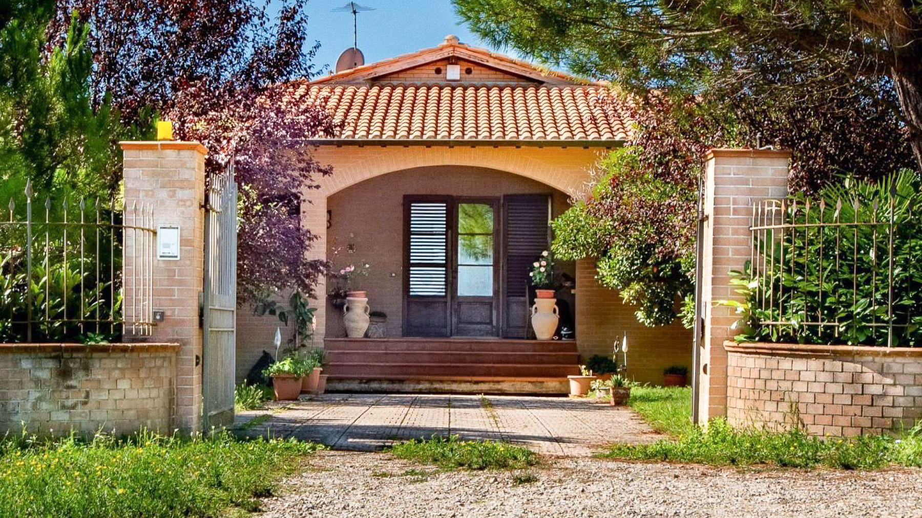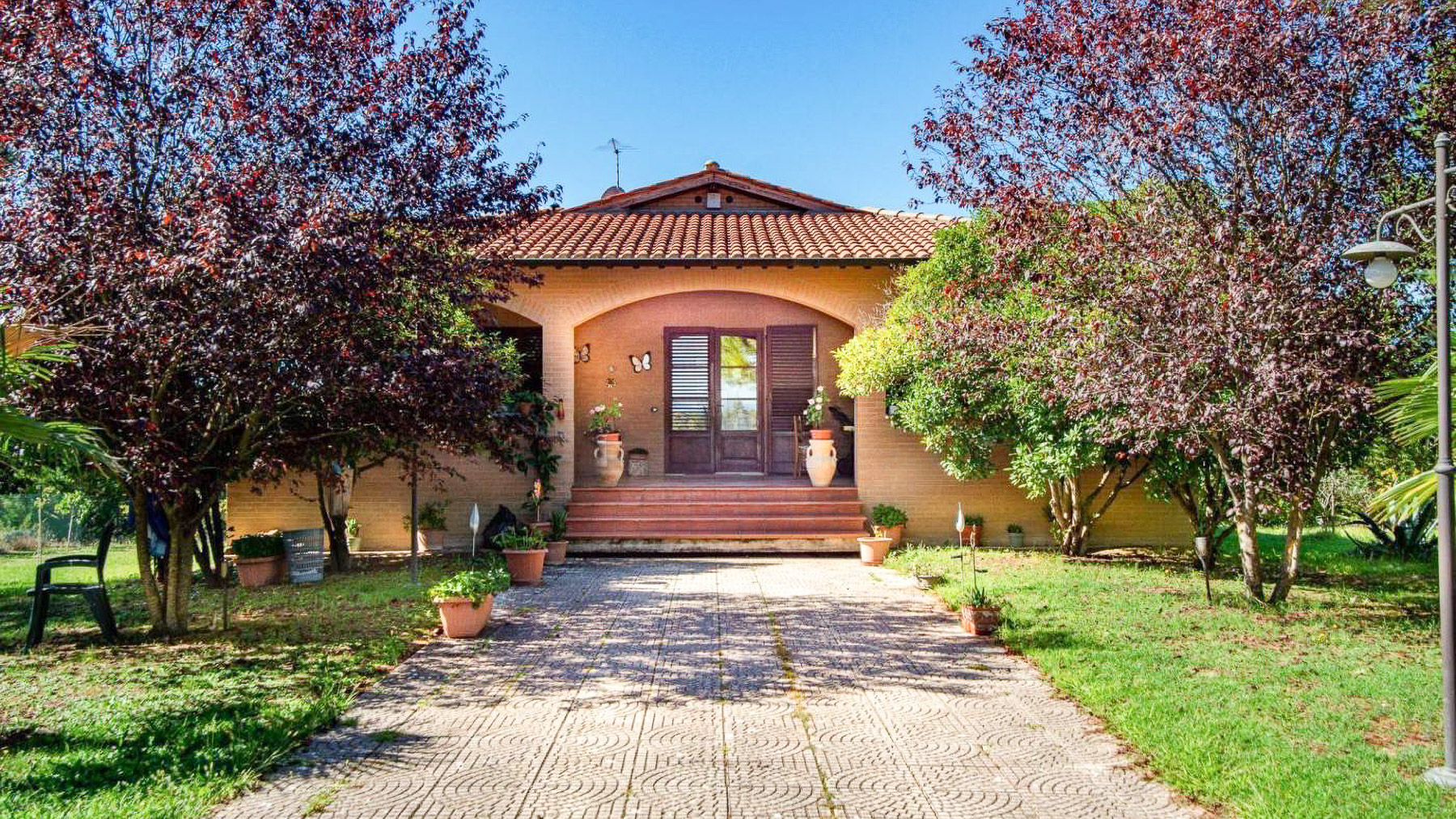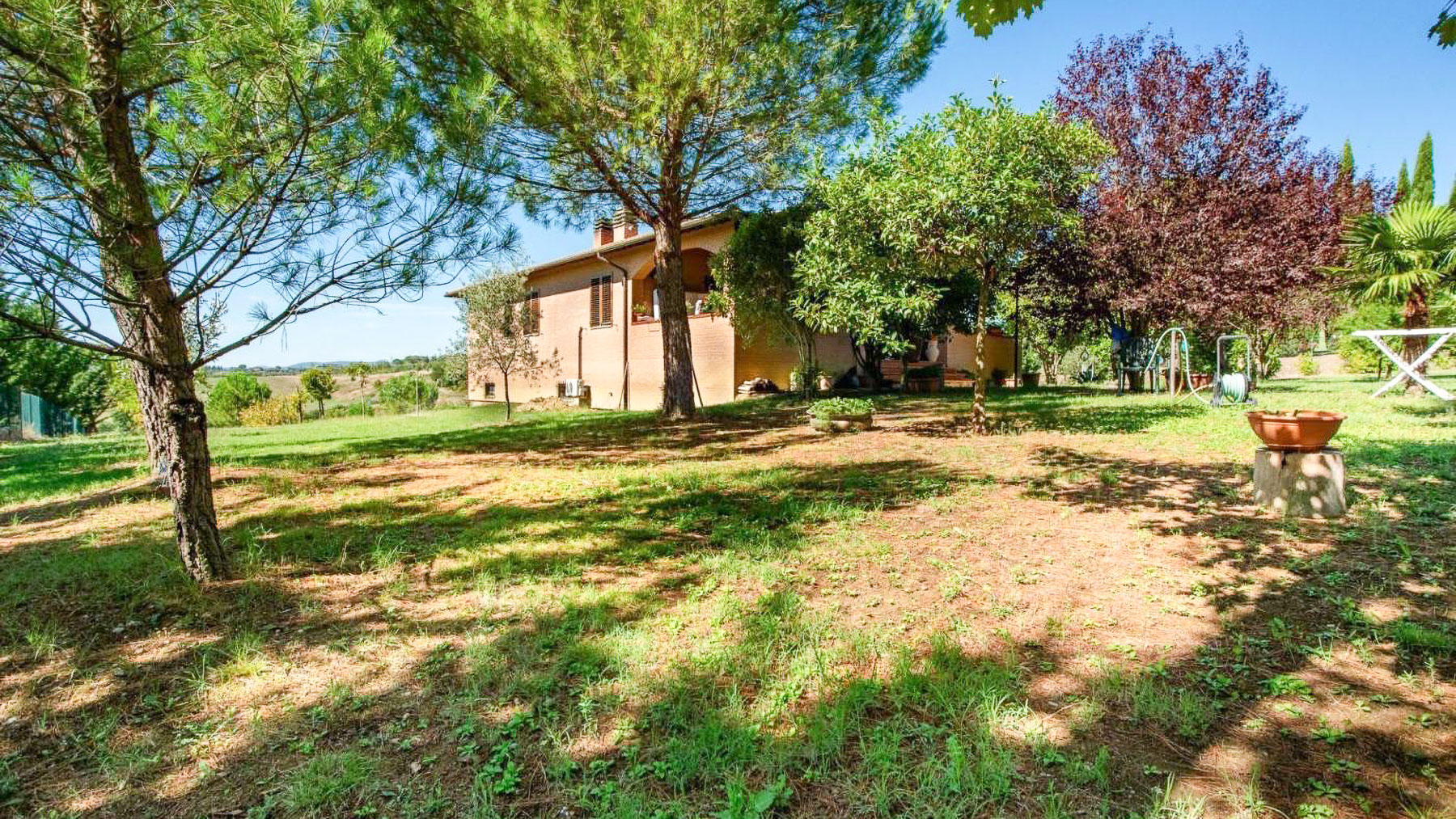 Amidst a serene landscape, this exquisite property invites you into a world of elegance and natural beauty. As you approach, the gentle rustle of leaves and the warm rays of the sun create an ambiance of peace and warmth. The entrance, framed by wooden doors and a pathway adorned with potted plants, sets a charming tone that resonates throughout the estate. Spanning an impressive 484 square meters, this luxurious home boasts five spacious rooms and three elegantly designed bathrooms. Located in the picturesque countryside of Siena, Siena (SI), the property is a retreat into privacy and comfort, featuring a lush private garden where nature flourishes. The house, crowned with a classic tiled roof, is surrounded by a rich tapestry of greenery, including palm and coniferous trees, creating a picturesque oasis. Living here means embracing a lifestyle of tranquility and refined sophistication. Picture yourself spending lazy afternoons in the garden, the scent of flowers mingling with the fresh country air, or savoring a quiet morning coffee as the sun rises over the verdant landscape. This home offers a sanctuary where every moment is elevated by the beauty of its surroundings. This property is a testament to impeccable taste and luxury, a rare find in the realm of exclusive real estate. It is a place where timeless charm meets modern living—a sanctuary waiting to be discovered.