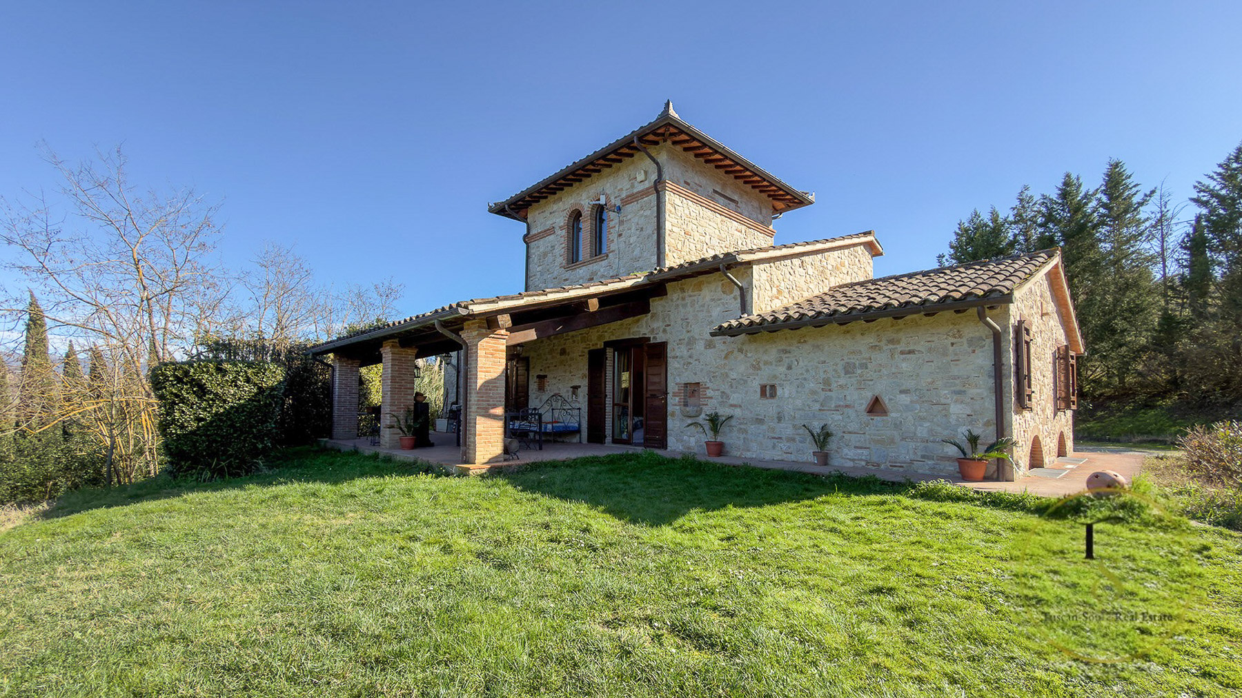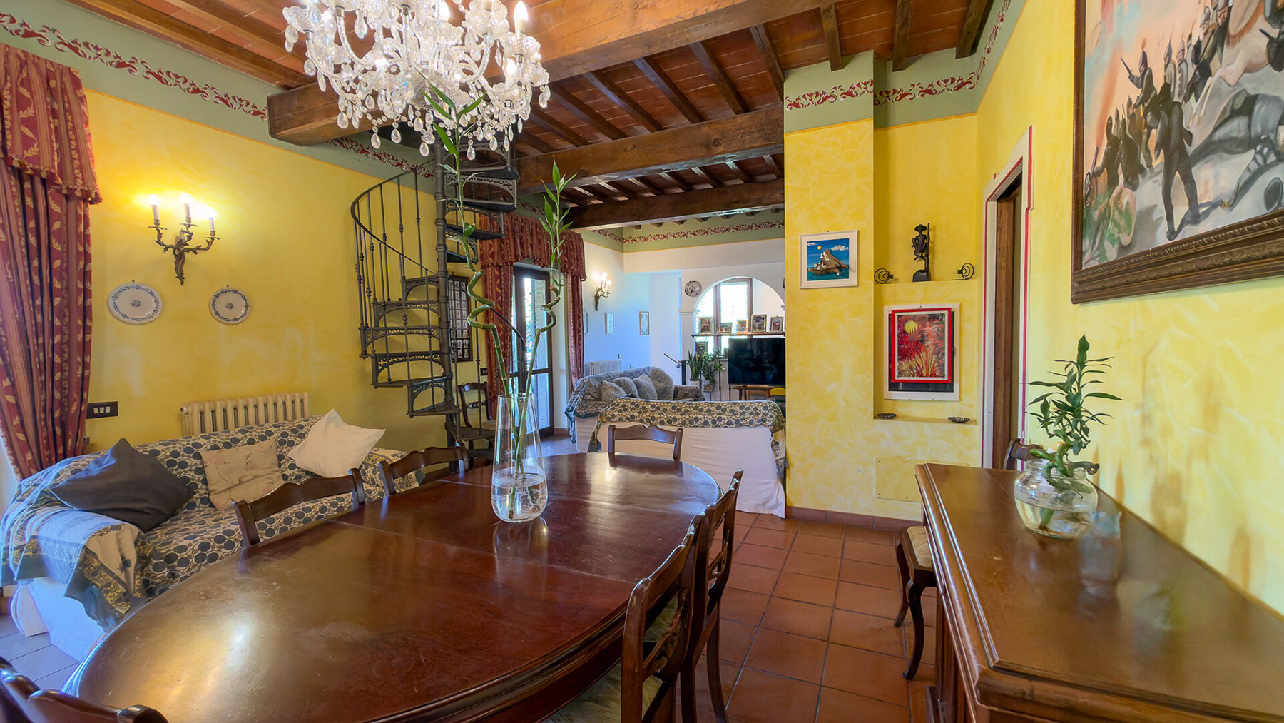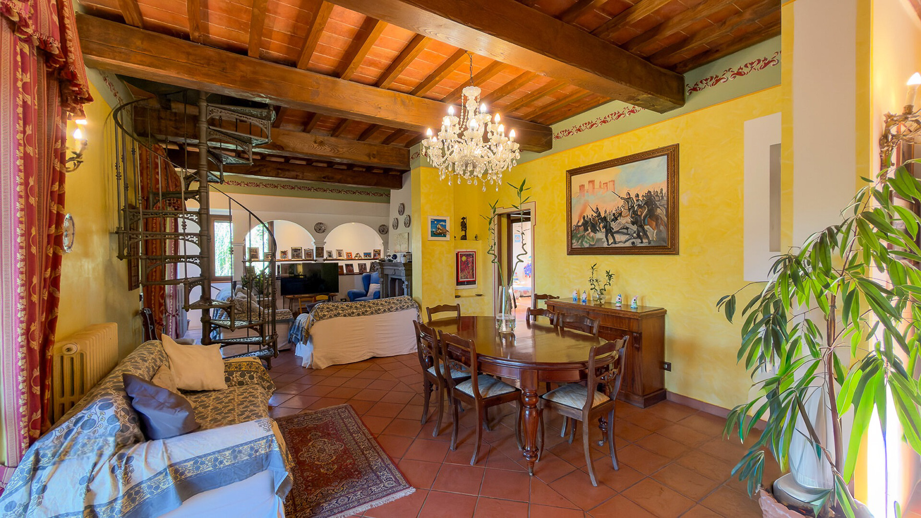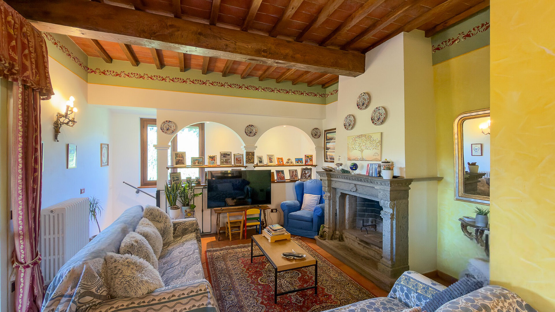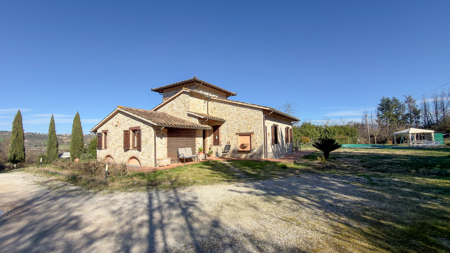 Enveloped in the serenity of the countryside, this exquisite property in Todi, Perugia offers a sanctuary of peace and luxury. Surrounded by lush greenery and open fields, the gentle rustle of leaves and the soft chirping of birds create a harmonious symphony that captivates your senses. The vibrant landscape, dotted with trees and gardens, sets the stage for a life of tranquility and splendor. Spanning 330 square meters, this elegant residence boasts 12 spacious rooms and 3 luxurious bathrooms, providing ample space for relaxation and entertainment. The home features a charming tiled roof and is complemented by a magnificent private garden and a secluded pool, perfect for leisurely swims amidst nature’s embrace. With its well-maintained soccer field and covered swimming pool, the property offers a plethora of outdoor activities. A gravel path leads to the house, where comfort and style converge seamlessly in this countryside retreat. Living here is an invitation to a life enriched by the simple pleasures of rural living. Picture yourself unwinding on the lawn chairs under the gazebo, with the evening sun casting a golden glow over the landscape. Children play joyfully on the trampoline, while the scent of fresh grass and blooming flowers fills the air. This is a place where memories are made, and cherished moments are shared with loved ones. A true embodiment of elegance and comfort, this property stands as a testament to luxurious living in a serene rural setting. It’s not just a home; it’s an experience of refined country living, offering an unparalleled retreat in the heart of nature.