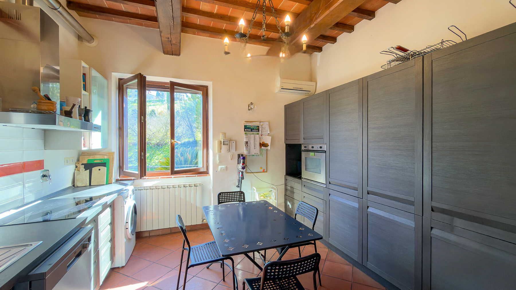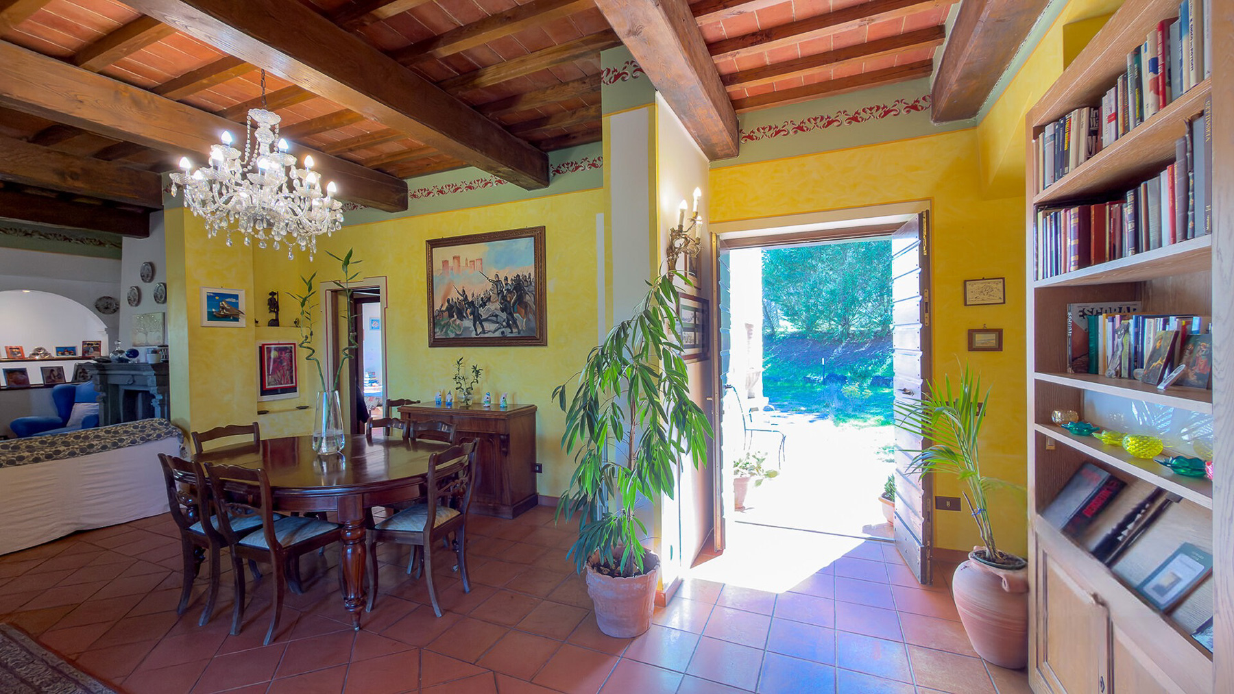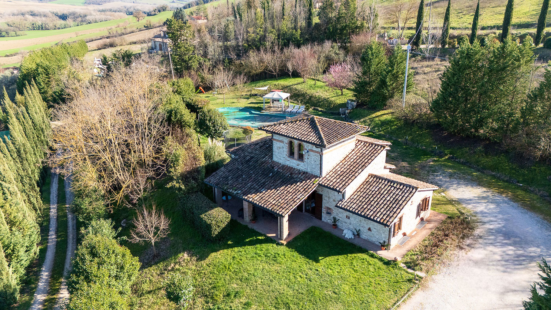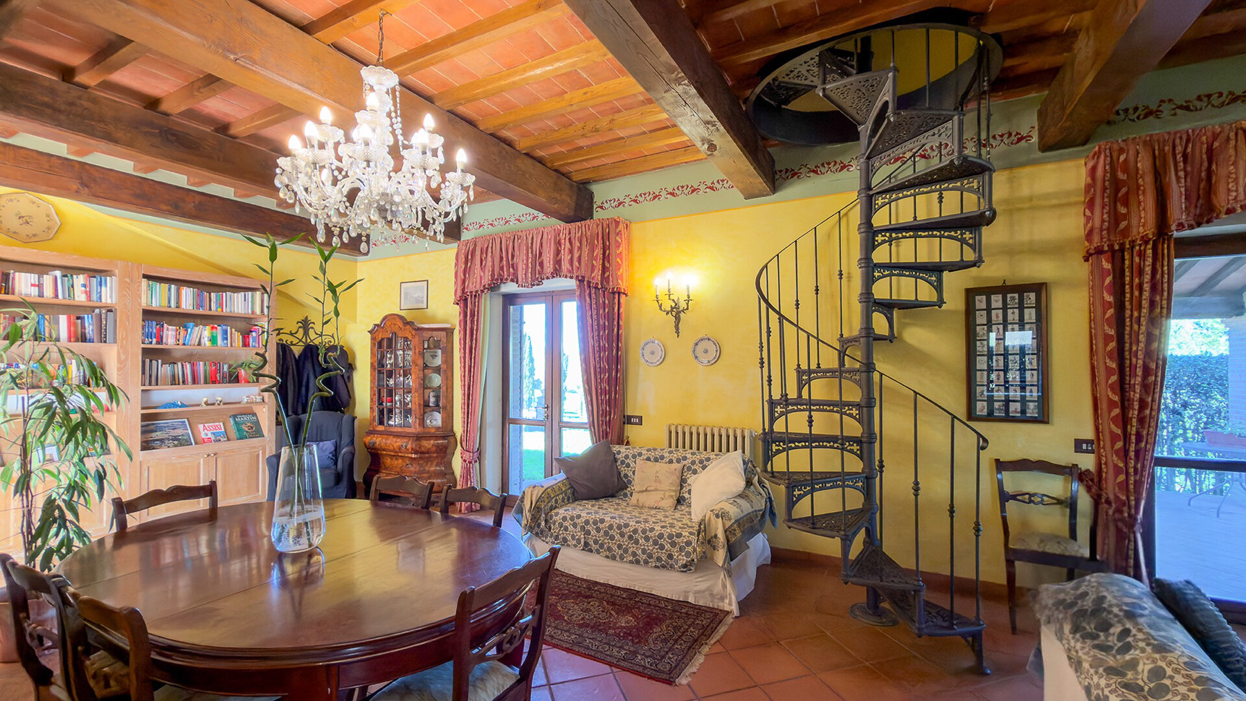 Enveloped in the serenity of the countryside, this exquisite property in Todi, Perugia offers a sanctuary of peace and luxury. Surrounded by lush greenery and open fields, the gentle rustle of leaves and the soft chirping of birds create a harmonious symphony that captivates your senses. The vibrant landscape, dotted with trees and gardens, sets the stage for a life of tranquility and splendor. Spanning 330 square meters, this elegant residence boasts 12 spacious rooms and 3 luxurious bathrooms, providing ample space for relaxation and entertainment. The home features a charming tiled roof and is complemented by a magnificent private garden and a secluded pool, perfect for leisurely swims amidst nature’s embrace. With its well-maintained soccer field and covered swimming pool, the property offers a plethora of outdoor activities. A gravel path leads to the house, where comfort and style converge seamlessly in this countryside retreat. Living here is an invitation to a life enriched by the simple pleasures of rural living. Picture yourself unwinding on the lawn chairs under the gazebo, with the evening sun casting a golden glow over the landscape. Children play joyfully on the trampoline, while the scent of fresh grass and blooming flowers fills the air. This is a place where memories are made, and cherished moments are shared with loved ones. A true embodiment of elegance and comfort, this property stands as a testament to luxurious living in a serene rural setting. It’s not just a home; it’s an experience of refined country living, offering an unparalleled retreat in the heart of nature.