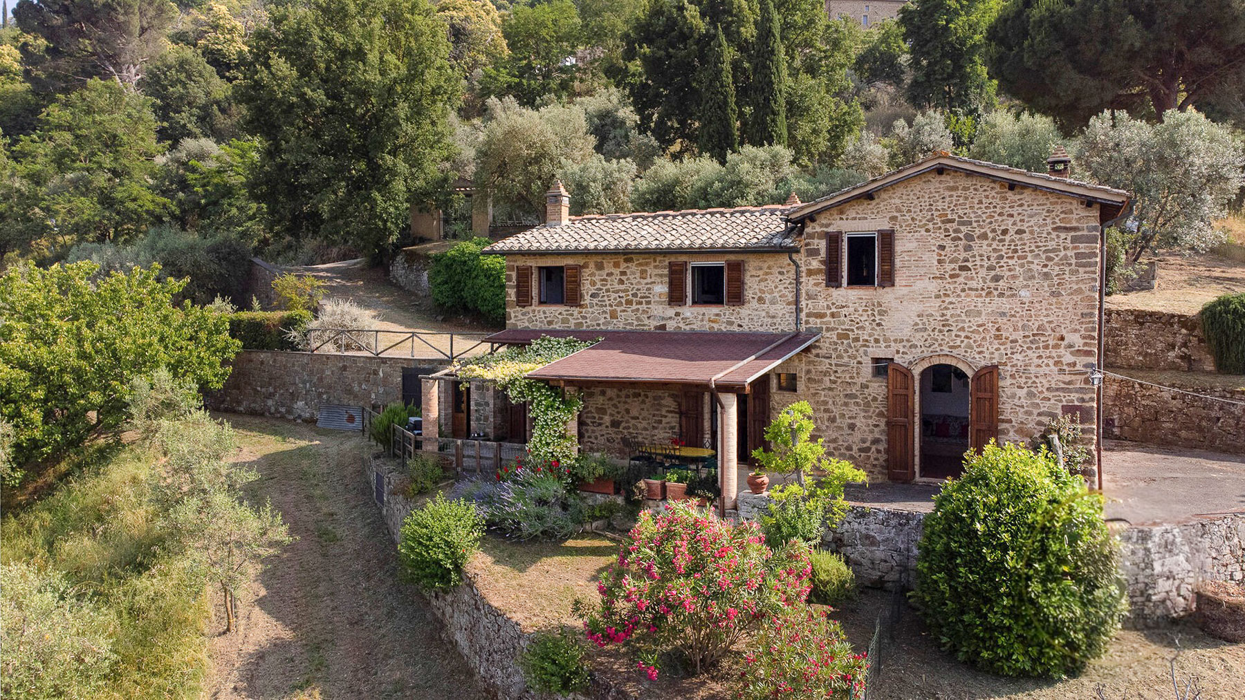 Perched amidst the verdant embrace of a rural hillside, this enchanting stone house offers a sanctuary of serenity and refined elegance. The gentle rustle of leaves and the sweet scent of blossoming flora create a sensory tapestry that envelops you in a world of tranquility and charm. This exquisite 250 sqm residence in Montalcino, Siena, features eight spacious rooms and two luxurious bathrooms, capturing the essence of sophisticated countryside living. Its rustic design is complemented by distinctive elements such as a private garden, a serene pool, and a sun-drenched terrace, inviting relaxation and leisure. The picturesque stone walls and meandering pathways enhance its rustic allure, while the lush greenery and olive trees provide a natural, idyllic setting that feels both secluded and inviting. Living here is an experience of unparalleled beauty and peace. Picture yourself enjoying leisurely afternoons by the pool or savoring a glass of wine on the terrace as the sun sets over the Tuscan landscape. The air is filled with the fragrance of nature, and every moment is a celebration of life's simple pleasures. This property stands as a testament to timeless beauty and exclusivity, offering a rare opportunity to own a piece of paradise in the heart of Tuscany. A true jewel in the luxury real estate market, it promises an extraordinary lifestyle brimming with elegance and grace.