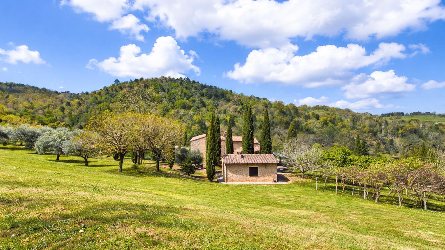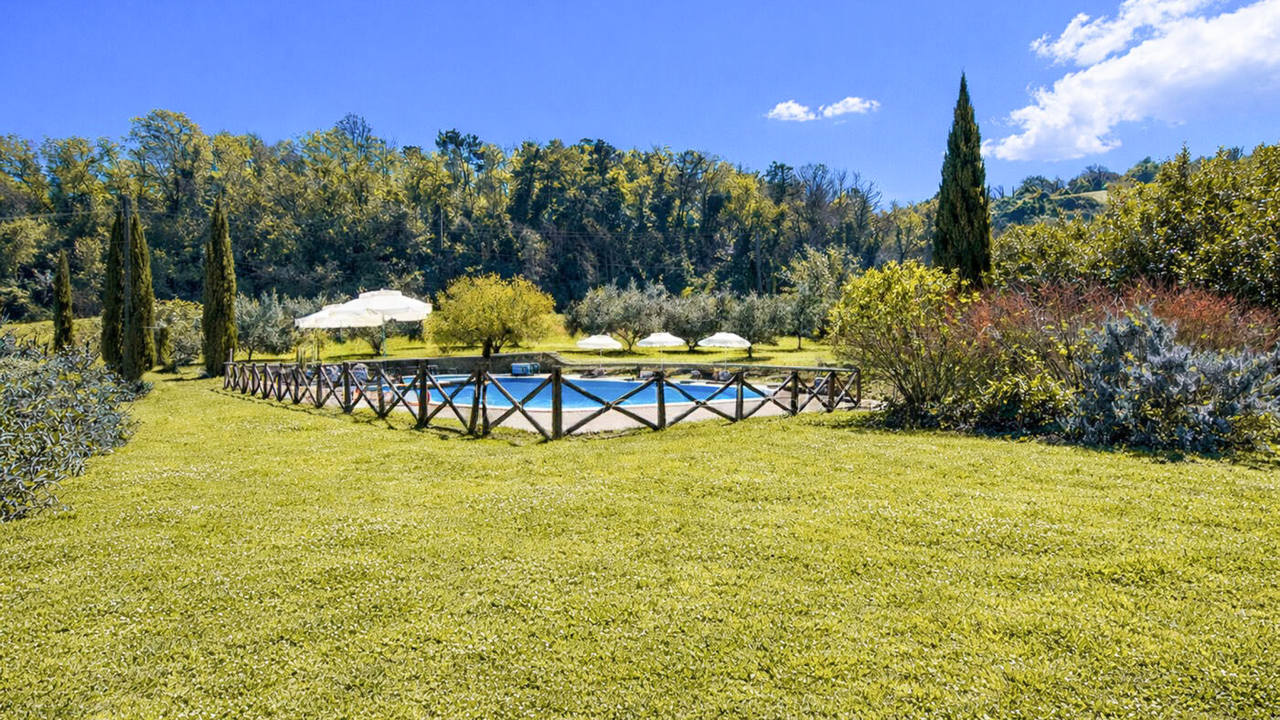 In the heart of Tuscany's enchanting landscape, this exquisite stone farmhouse offers a serene retreat amidst the rolling hills of Pisa. As you approach through a cypress-lined avenue, the gentle rustle of leaves and the distant murmur of a nearby stream greet you, setting the stage for a sanctuary of peace and privacy. Spanning 420 square meters, this luxurious property boasts 12 rooms, including 6 elegantly appointed bathrooms. The rustic charm of exposed stone walls, terracotta floors, and wooden beam ceilings is seamlessly integrated with modern comforts. The property features a private pool and is enveloped by 2.3 hectares of verdant land, complete with flower beds, an olive grove, and inviting relaxation areas. Located in Chianni, Pisa, this farmhouse embodies the idyllic countryside lifestyle. Imagine waking up to the gentle Tuscan sun streaming through your window, spending leisurely afternoons by the pool, and dining al fresco in the garden, surrounded by the fragrance of blooming flowers. This home invites you to experience the art of living, where every moment is imbued with the beauty and tranquility of its natural surroundings. This property stands as a testament to the perfect fusion of authentic Tuscan tradition and modern luxury—a rare opportunity in the prestigious real estate market.