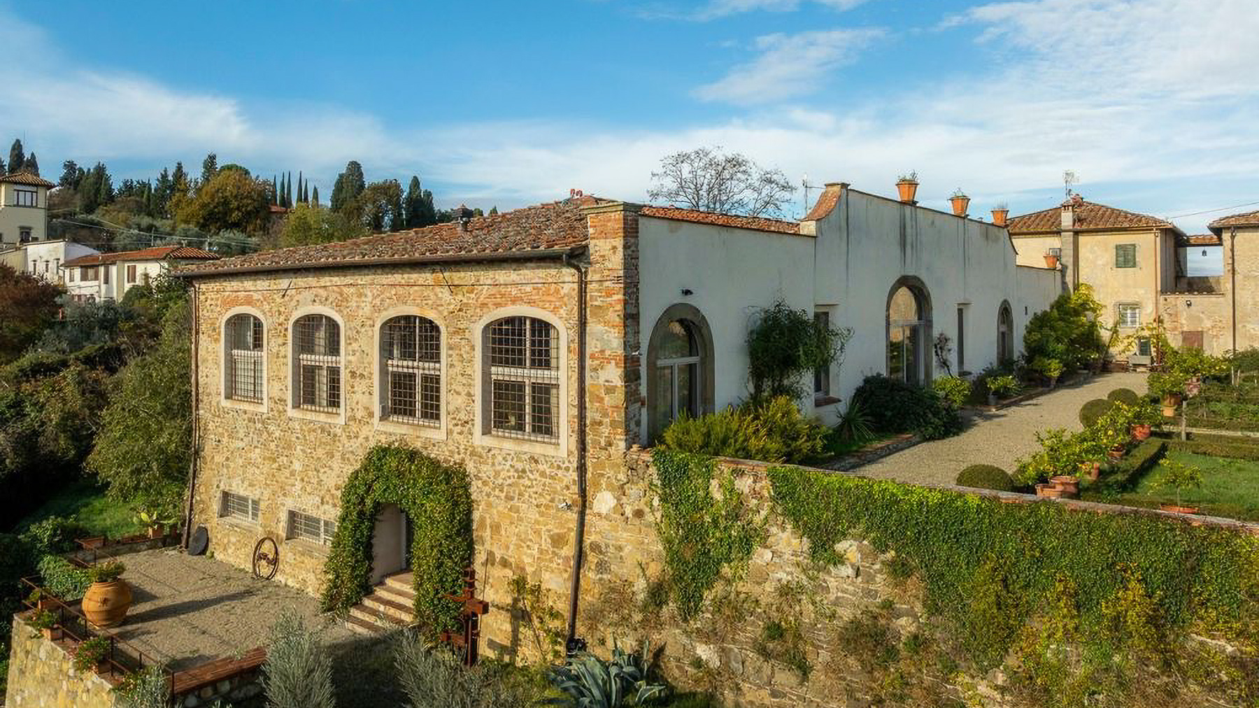 Perched gracefully on a verdant hillside, this exquisite estate encapsulates the essence of tranquility and opulence, offering breathtaking views of the surrounding mountains and the vibrant cityscape of Florence. As you approach, the scent of olive trees mingles with the crisp air, inviting you into a world where luxury meets nature. Spanning an impressive 540 square meters, this residence boasts 11 elegantly appointed rooms and 5 luxurious bathrooms, each echoing the timeless charm of its stone and plaster facade. The terracotta roofs and expansive windows blend seamlessly into the landscape, while the private garden offers a serene oasis for relaxation and entertainment. This property is a masterpiece of modern design and classic architecture, situated in the heart of Florence, embodying a sophisticated urban lifestyle. Imagine mornings bathed in golden sunlight streaming through the vast windows, and evenings spent in the meticulously landscaped garden, where the gentle rustle of leaves accompanies your moments of tranquility. This residence is not just a home; it's an experience, offering an unparalleled lifestyle of comfort and refinement. This property is a testament to elegance and exclusivity, a rare find in the luxury real estate market, where every detail has been thoughtfully curated to offer a life of unparalleled distinction and grace.