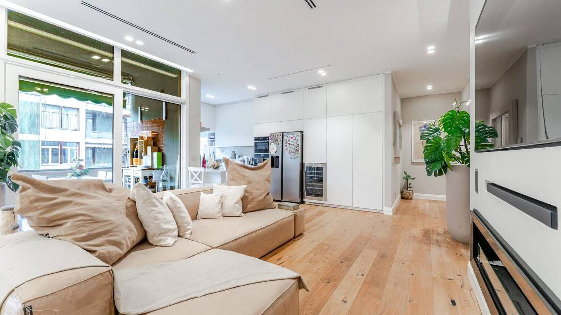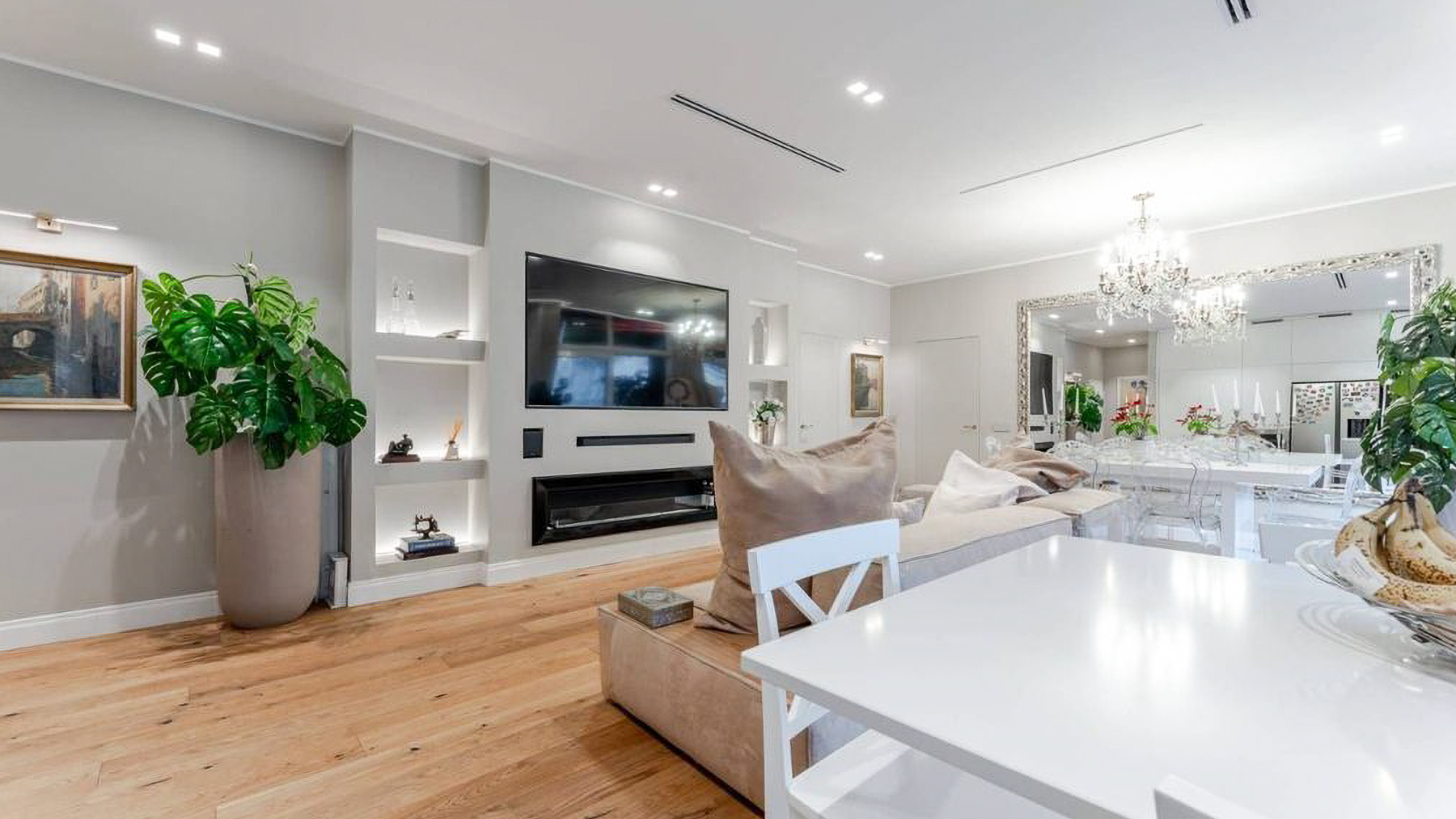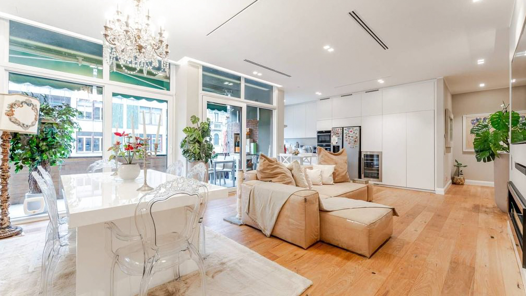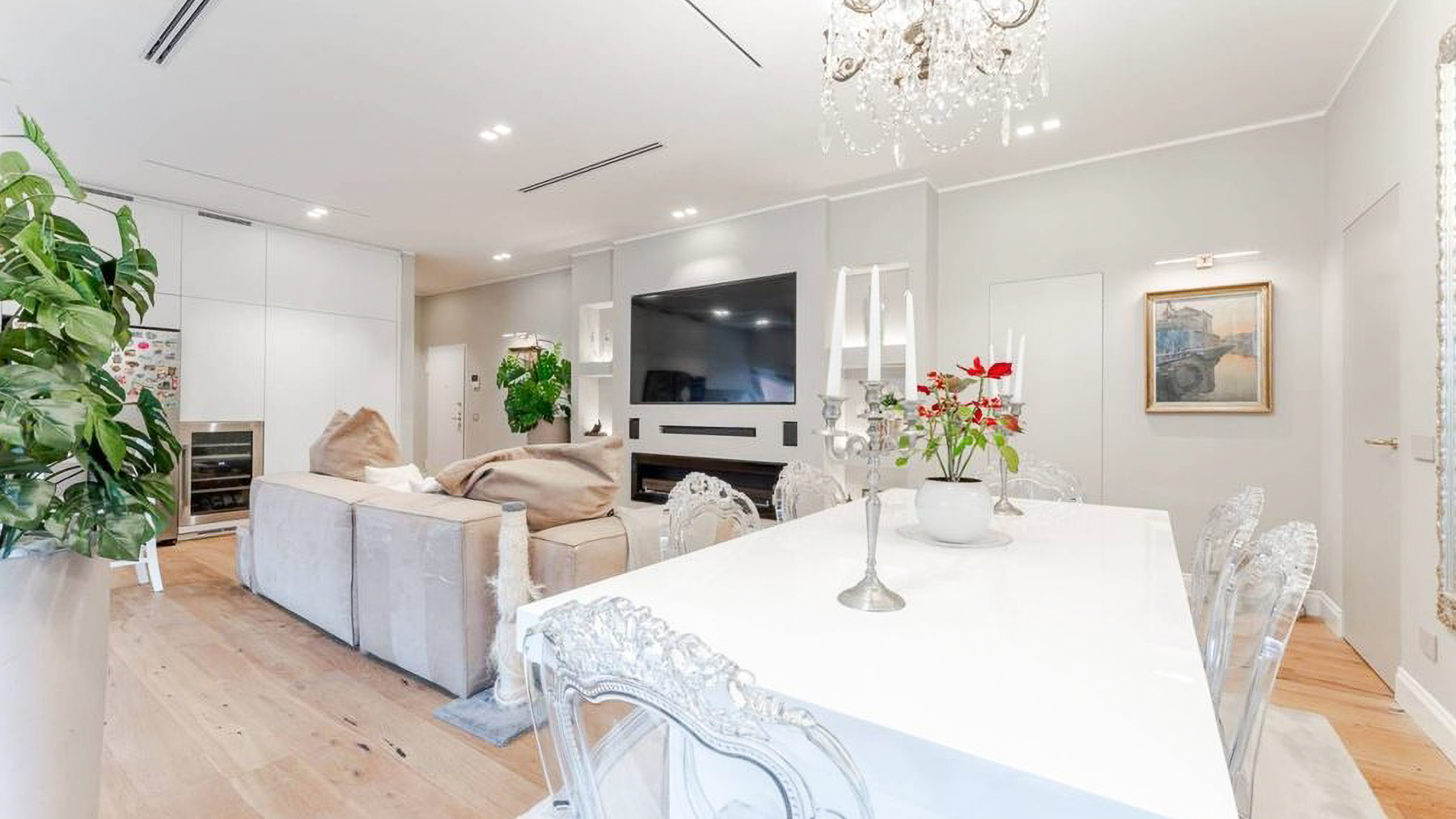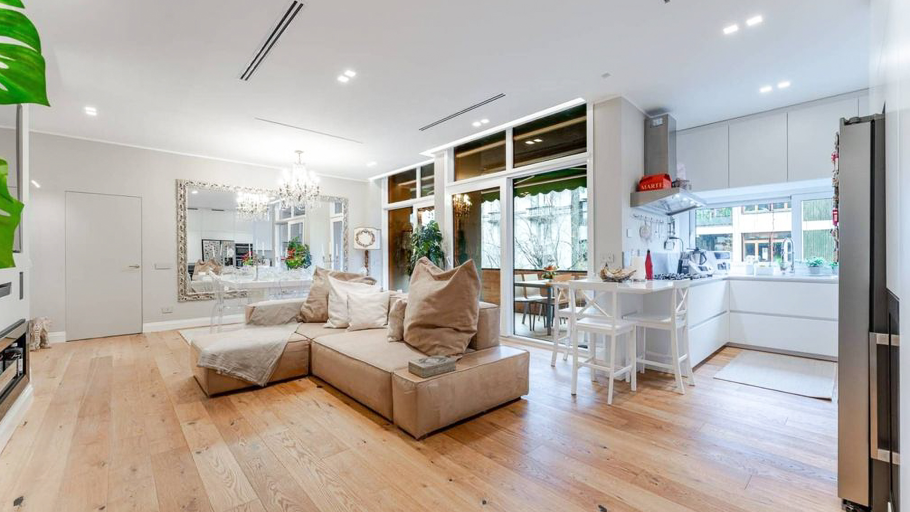 Imagine stepping into a world of sophistication and warmth, where modern elegance meets comfort in the heart of vibrant Milano. Bathed in natural light, this exquisite living space captivates with its harmonious blend of style and tranquility, inviting you to experience a serene retreat from the bustling city life. Spanning 180 square meters, this stunning property features five spacious rooms and three elegantly designed bathrooms. The open-concept layout seamlessly integrates the living and dining areas, showcasing a stylish sectional sofa, a chic white dining table, and a large flat-screen TV. The light hardwood flooring complements the minimalist aesthetic, while large windows offer sweeping views of the surrounding cityscape. A distinctive terrace further enhances this luxurious space, providing a perfect spot for relaxation and entertainment. Imagine hosting gatherings in the beautifully lit dining area, where laughter echoes against the soft hum of the city outside. The airy atmosphere, combined with thoughtfully placed greenery, creates a sanctuary that feels both expansive and intimate. Experience the ultimate in urban living, with Milano's finest offerings at your doorstep. This property is a testament to the art of refined living, offering a unique blend of contemporary design and timeless elegance. It stands as a remarkable opportunity in the luxury real estate market, promising an unparalleled lifestyle in one of the world's most iconic cities.