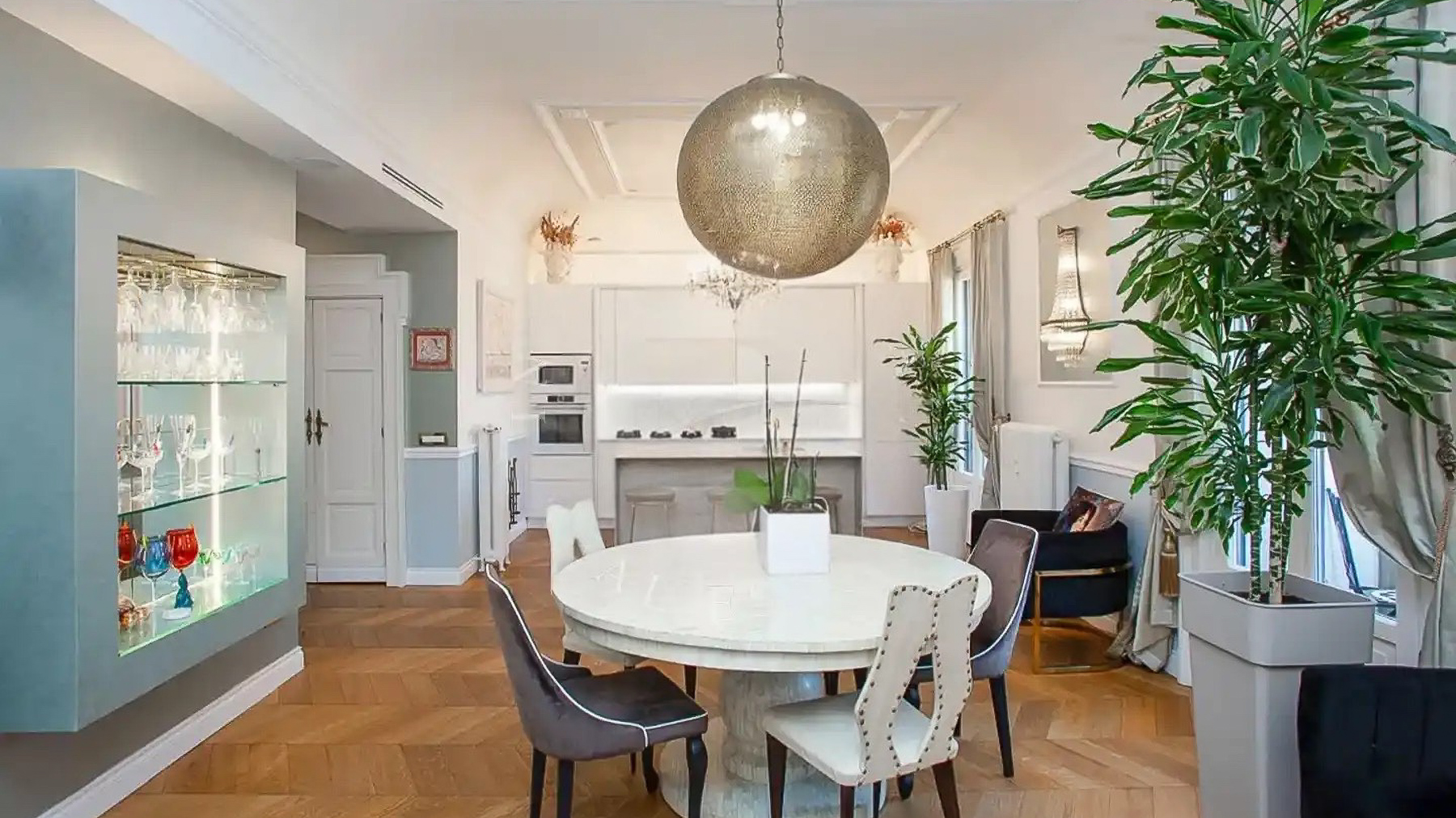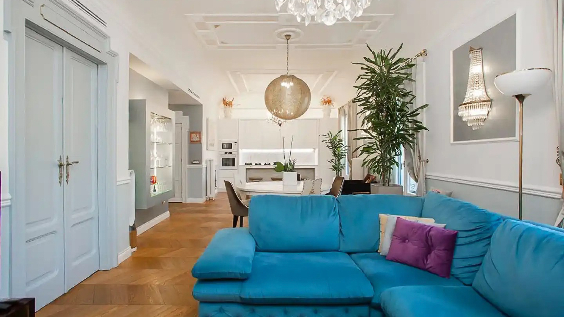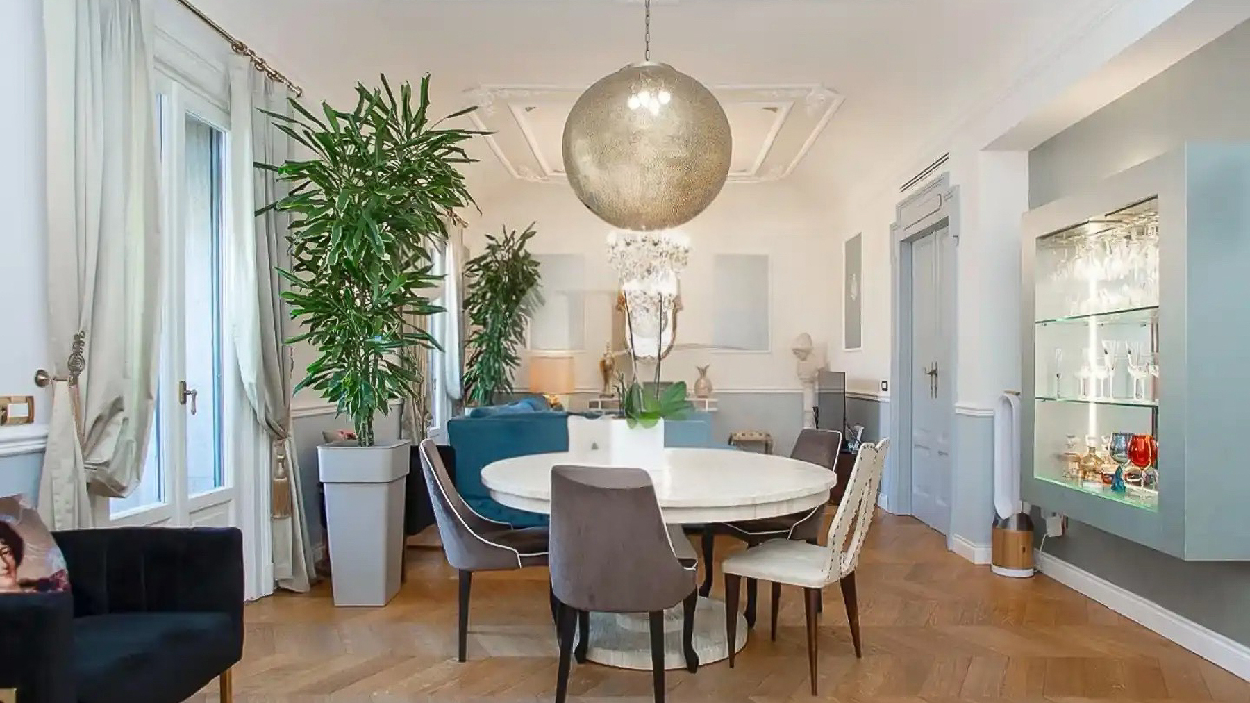 In the heart of vibrant Milano, a stunning sanctuary of sophistication awaits. Imagine stepping into a world where modern elegance harmonizes with comfort, where sunlight dances through large windows, illuminating a space that invites warmth and serenity. The gentle rustle of leaves from indoor plants mingles with the subtle scent of fresh blooms, creating an atmosphere that captivates the senses. Spanning an impressive 220 square meters, this luxurious property boasts eight meticulously designed rooms and five sumptuous bathrooms. The open living area features a stylish blue sectional sofa adorned with colorful cushions, and a circular dining table surrounded by chic chairs beneath an elegant chandelier. The kitchen, seamlessly integrated into the living space, offers both functionality and flair, while the wooden flooring adds a touch of warmth. Located in the heart of Milano, this home is a testament to city living at its finest. Life in this exquisite residence is an experience like no other. Picture yourself hosting intimate gatherings in the open-plan living area, where the ambiance is both inviting and sophisticated. The large windows frame views of Milano's skyline, while the elegant furnishings and decor provide an upscale yet comfortable environment for relaxation and entertainment. This property is a rare treasure, combining timeless elegance with contemporary design—a true masterpiece in the luxury real estate market. Its unique charm and prime location make it an unparalleled opportunity for those seeking the ultimate in city living.