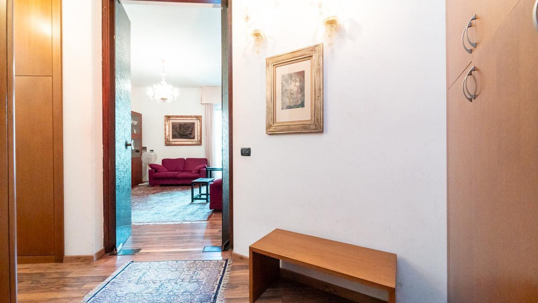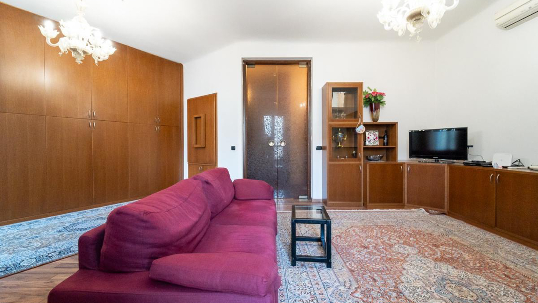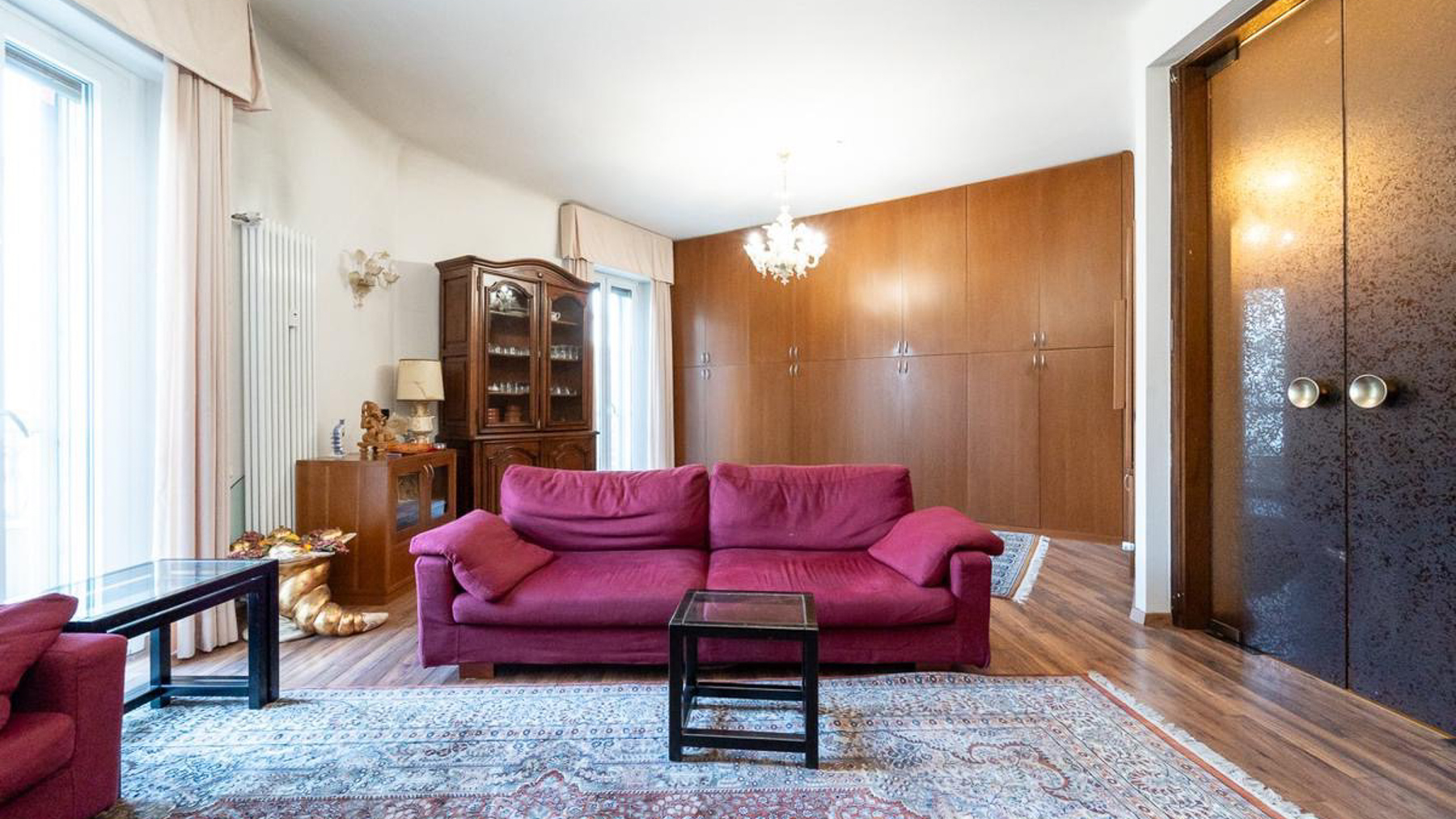 Embrace the allure of sophistication and comfort in this exquisite residence, where modern elegance meets timeless charm. Bathed in warm natural light, this home offers a serene retreat amid the vibrant energy of Milano. The aroma of fresh wood and the inviting glow of chandeliers create an ambiance that soothes the soul and captivates the senses. This spacious 140 square meter apartment boasts four thoughtfully designed rooms and three luxurious bathrooms, perfect for those seeking an elevated lifestyle. The heart of the home is a cozy living room, featuring a plush maroon couch, wooden flooring, and a decorative rug that together foster a sense of warmth and intimacy. A beautifully crafted TV stand and elegant bookshelves add sophistication, while abundant natural light streams through well-draped windows, illuminating the space with a gentle radiance. Located in the pulsating city of Milano, this property promises a lifestyle of convenience and cultural richness. Imagine unwinding in this sanctuary, where each corner invites relaxation and inspiration. Picture evenings curled up with a book on the maroon couch, or hosting intimate gatherings in a space that feels both luxurious and inviting. The serene atmosphere of this home offers an escape from the city's hustle, providing a perfect balance of tranquility and urban convenience. This residence is a testament to refined living, offering a rare blend of comfort and elegance in the heart of Milano. It is an extraordinary opportunity to own a piece of luxury in one of the world's most iconic cities.