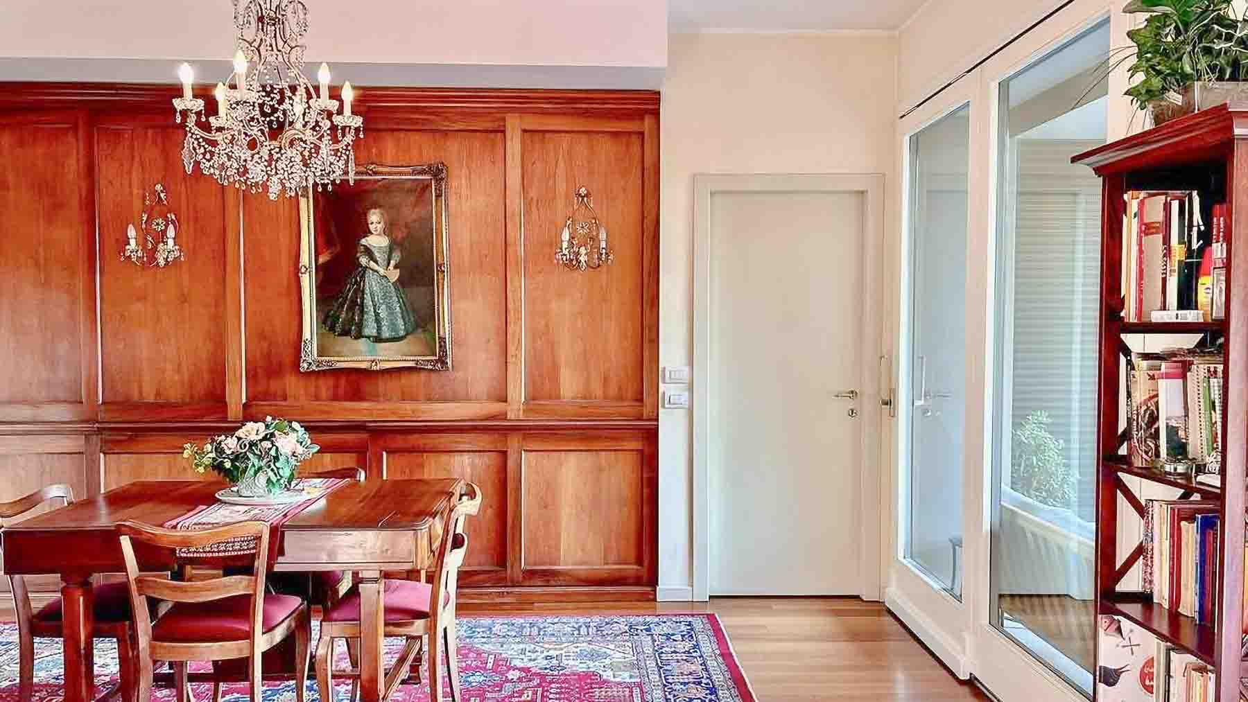 Amid the bustling heart of Milan lies a sophisticated sanctuary that exudes charm and elegance. Stepping inside, you're greeted by a tapestry of rich textures and warm tones, where the gentle glow of decorative wall sconces casts a serene ambiance, inviting you to explore further. The scent of polished wood and the sight of classic art transport you to a world of refined luxury. This exquisite 145 sqm residence offers a harmonious blend of classic and contemporary design across three spacious rooms and two elegantly appointed bathrooms. The property boasts a lush garden and a panoramic terrace, perfect for those seeking an oasis in the city. Located in vibrant Milan, this home embodies the quintessential urban lifestyle, offering both privacy and proximity to the city's finest attractions. Living here means indulging in a life of sophistication and comfort. Envision leisurely afternoons spent in the cozy living room, where natural light floods through large windows, illuminating the rich hues of the patterned rug and the intricate details of the wall mural. Imagine savoring meals at the wooden dining table, surrounded by the warm glow of classic design elements. This property is a testament to the perfect fusion of tradition and modernity, offering a rare opportunity to own a piece of Milanese elegance. Experience the pinnacle of luxury living in a home that truly defines prestige and exclusivity.
