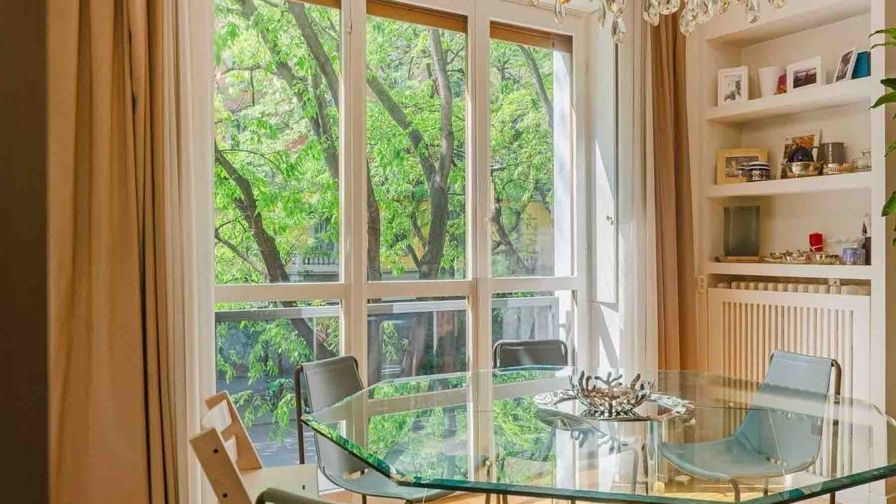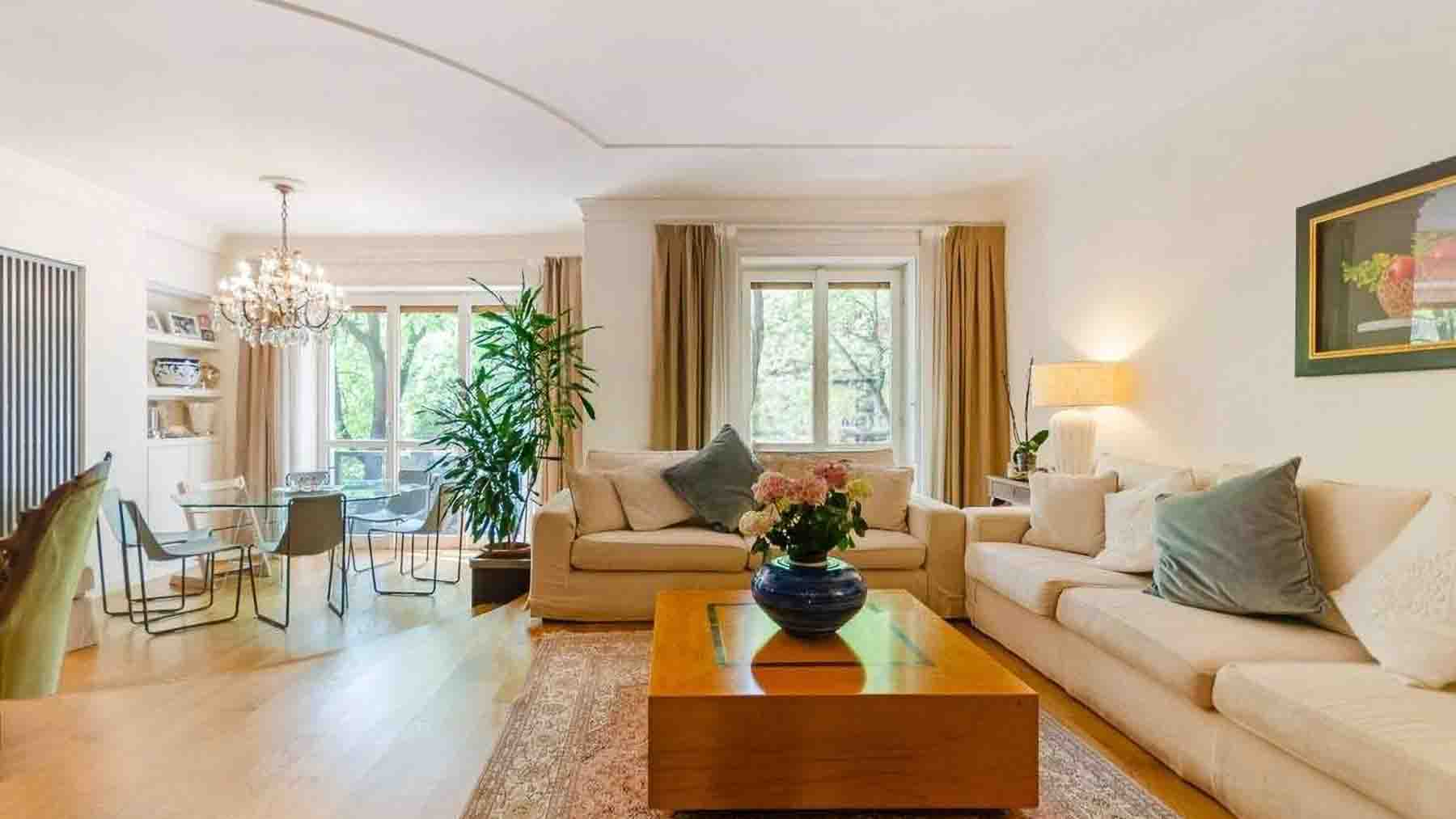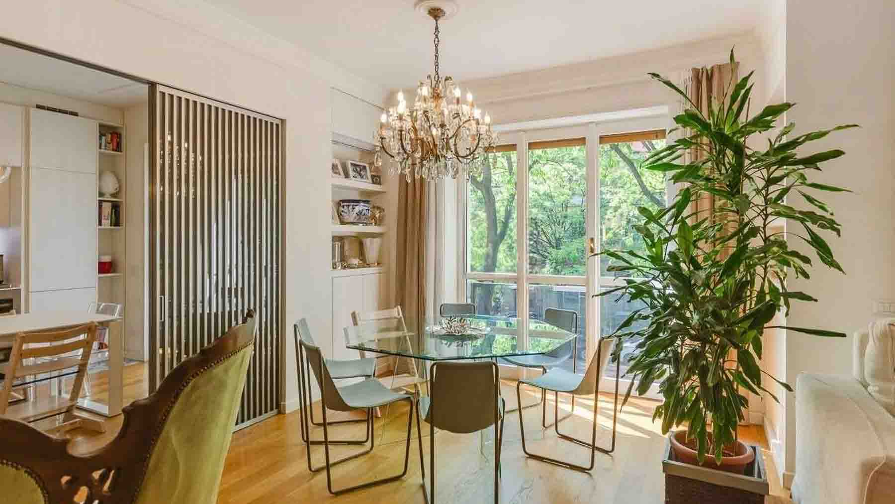 In the heart of vibrant Milano, a sanctuary of elegance and warmth awaits. As you step into this exquisite living space, the gentle glow of natural light embraces you, highlighting the sophisticated blend of modern design and cozy comfort. The soft rustle of curtains and the subtle aroma of fresh flowers add to the allure, creating a serene atmosphere that captivates the senses. Spanning 147 square meters, this luxurious property offers four beautifully appointed rooms and three elegant bathrooms. The living area features light-colored sofas adorned with decorative pillows, inviting you to relax and unwind. A stylish wooden coffee table and a vase of flowers add a touch of charm, while the dining area, with its sleek glass table and transparent chairs, promises memorable gatherings. Floor-to-ceiling windows, complemented by lush plants and chic decorative items, enhance the airy ambiance of this Milano haven. Imagine savoring peaceful mornings bathed in soft sunlight, or hosting intimate gatherings in the elegant dining area, where every detail speaks of sophisticated living. The combination of comfort and style makes each moment spent here a delightful experience, offering a unique blend of city life and tranquil retreat. This property is a testament to refined luxury, a rare gem in Milano's real estate landscape. It offers an unparalleled lifestyle, where elegance meets modern comfort, making it a coveted treasure for discerning buyers.